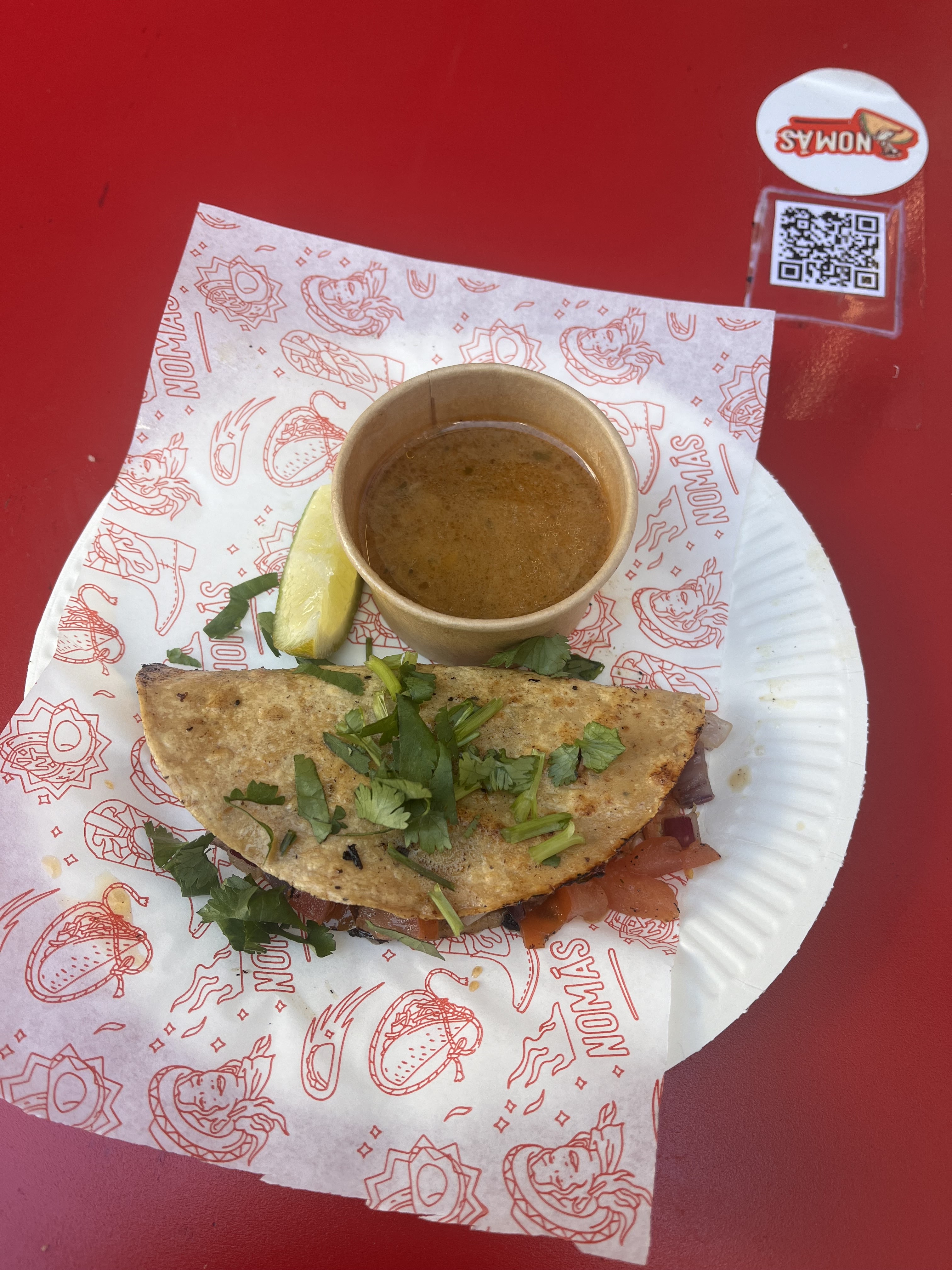 Un peu partagée parce que la première fois que j’ai passé une commande, j’ai dû attendre plus de 30 minutes, contre 8 minutes la deuxième. J’étais mitigée après le premier essai, donc je suis repassée donner une deuxième chance à Nomas Tacos. Je peux vous confirmer que ce fut une erreur : Bien que le personnel soit sympathique, l’hygiène est à revoir sur quelques aspects et notamment l’usage des mains lors de la cuisine. La cuisine est ouverte, donc on voit tout. Le staff passe de la tablette pour saisir la commande au terminal cb puis à vos quesadillas sans se laver les mains/utiliser de gants ou quoi, la cuisson est vérifiée avec les doigts, pas de filet sur les cheveux, masque sous le nez, voire pas du tout… Niveau goût on fait face à plusieurs émotions : - les quesadillas sont sympas, bien qu’indéniablement trop petites pour le prix… elles ne sont d’ailleurs ni aussi dorées, ni aussi garnies que sur la page instagram du resto… - les tacos et burrito barbacoa sont médiocres, la viande est trop sèche et des morceaux durs se trouvent dedans, pas cool de croquer dans de la pierre quand on sait que le boeuf barbacoa doit être tendre et effiloché… de plus, les ingrédients n’arrivent pas à se marier dans la bouche, les saveurs vont dans tous les sens sans pour autant être complémentaires. Sometimes, less is more. - les tacos birria sont moyens, on n’a pas été super impressionnés par l’aspect gras et juteux recherché dans cet élément de base de street food mexicaine - je ne mange pas de porc mais ma copine a commandé deux items et n’en a pas dit beaucoup de bien. J’entends que Nomas Tacos est dans ses débuts, mais il y a encore trop d’erreurs, dont des erreurs impardonnables comme l’hygiène. Une déception…