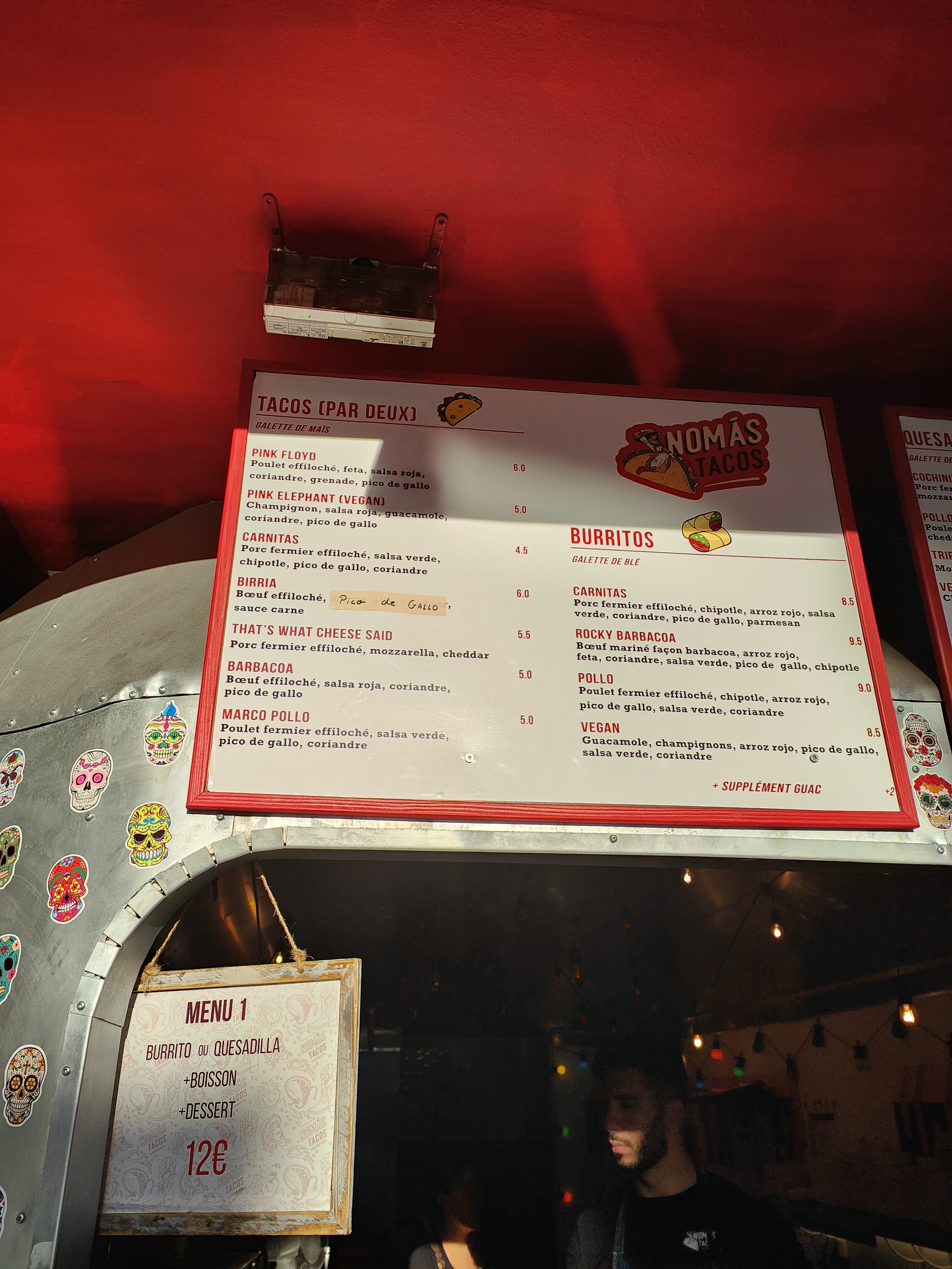 Je cherchais une découverte culinaire en beau dimanche ensoleillé de Septembre au niveau de la porte St-martin et je suis tombé sur NOMAS TACOS. Devanture qui ne paie pas de mine mais c’est juste ce qu’il faut. 2 tables et 4 chaises devant et c’est parti. Ici il y a les grands classiques de le street-food mexicaine avec en point d’orgue : LE TACOS. C’est bon, c’est simple, c’est rapide, c’est efficace. Le « sur-place » est pas très adapté au vu du nombre de places mais « à emporter » c’est parfait.