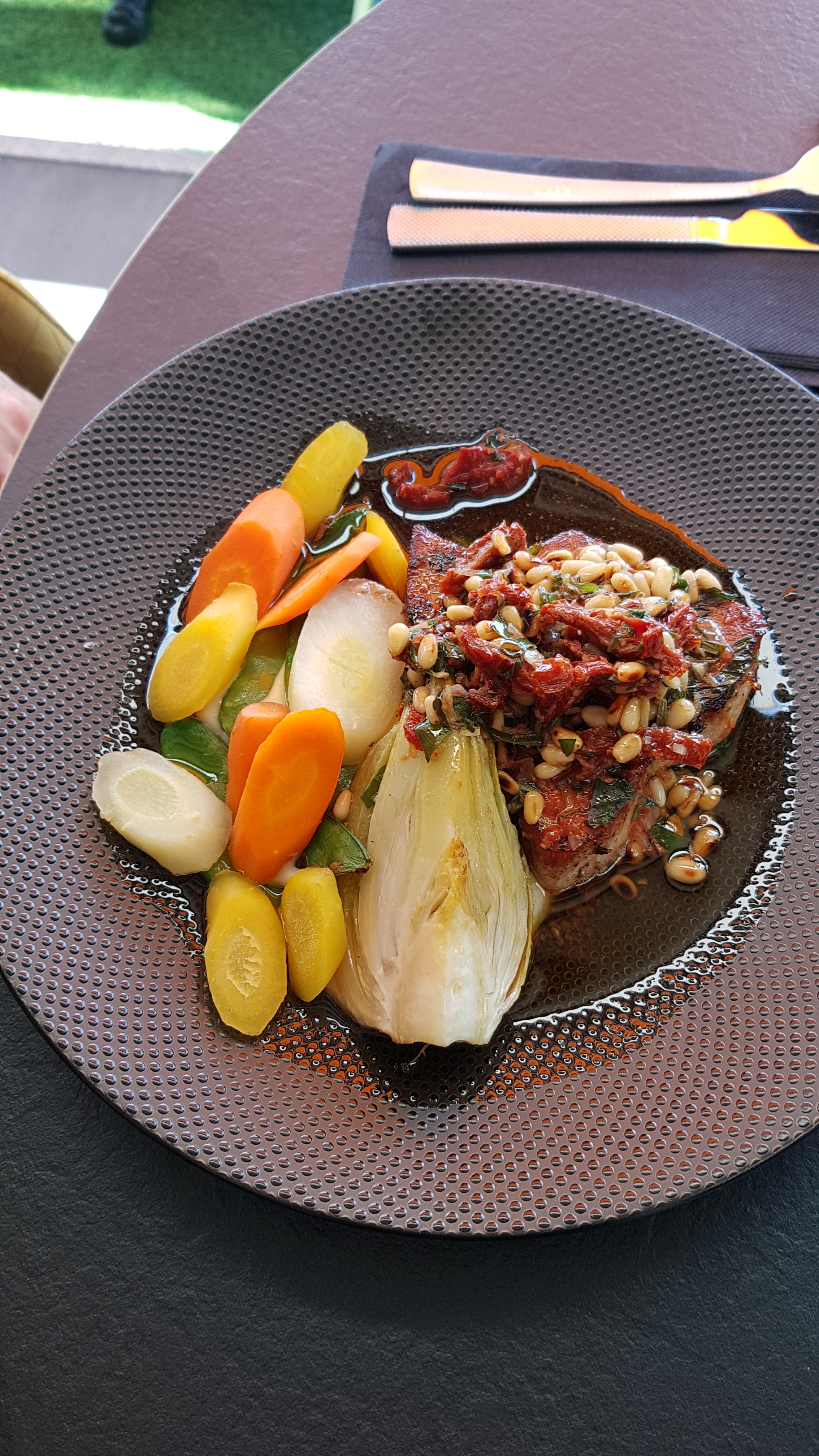 Excellent moment passé en terrasse. Plat et vin succulent. Personnel serviable et hyper sympathique.