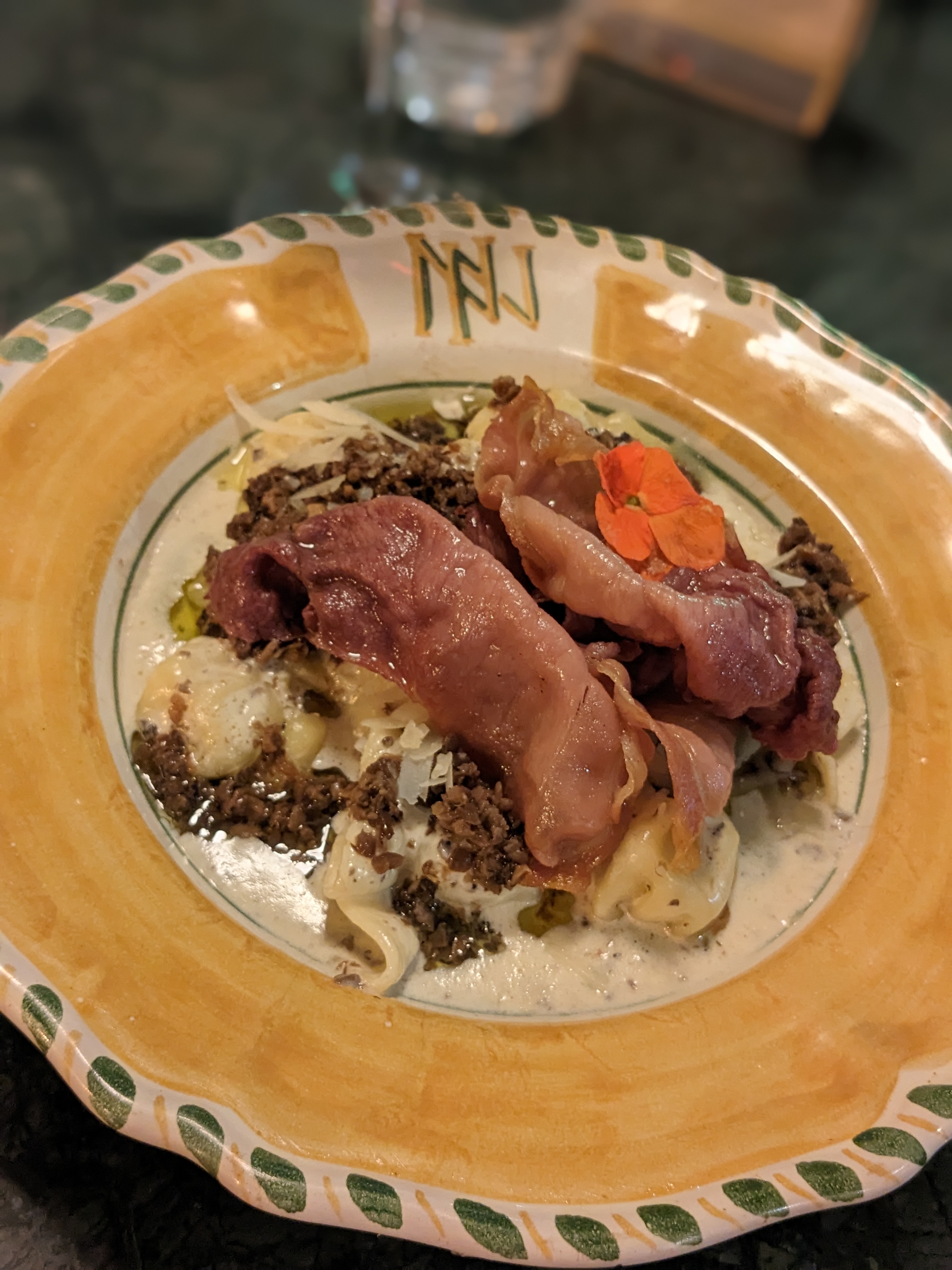 C’est toujours très bon, et très italien. Un bémol sur le chou farci, cette feuille de chou mériterait d’être blanchie correctement cela lui enlèverait l’amertume désagréable du chou pas assez cuit. Sinon continuez comme ça, on reviendra.