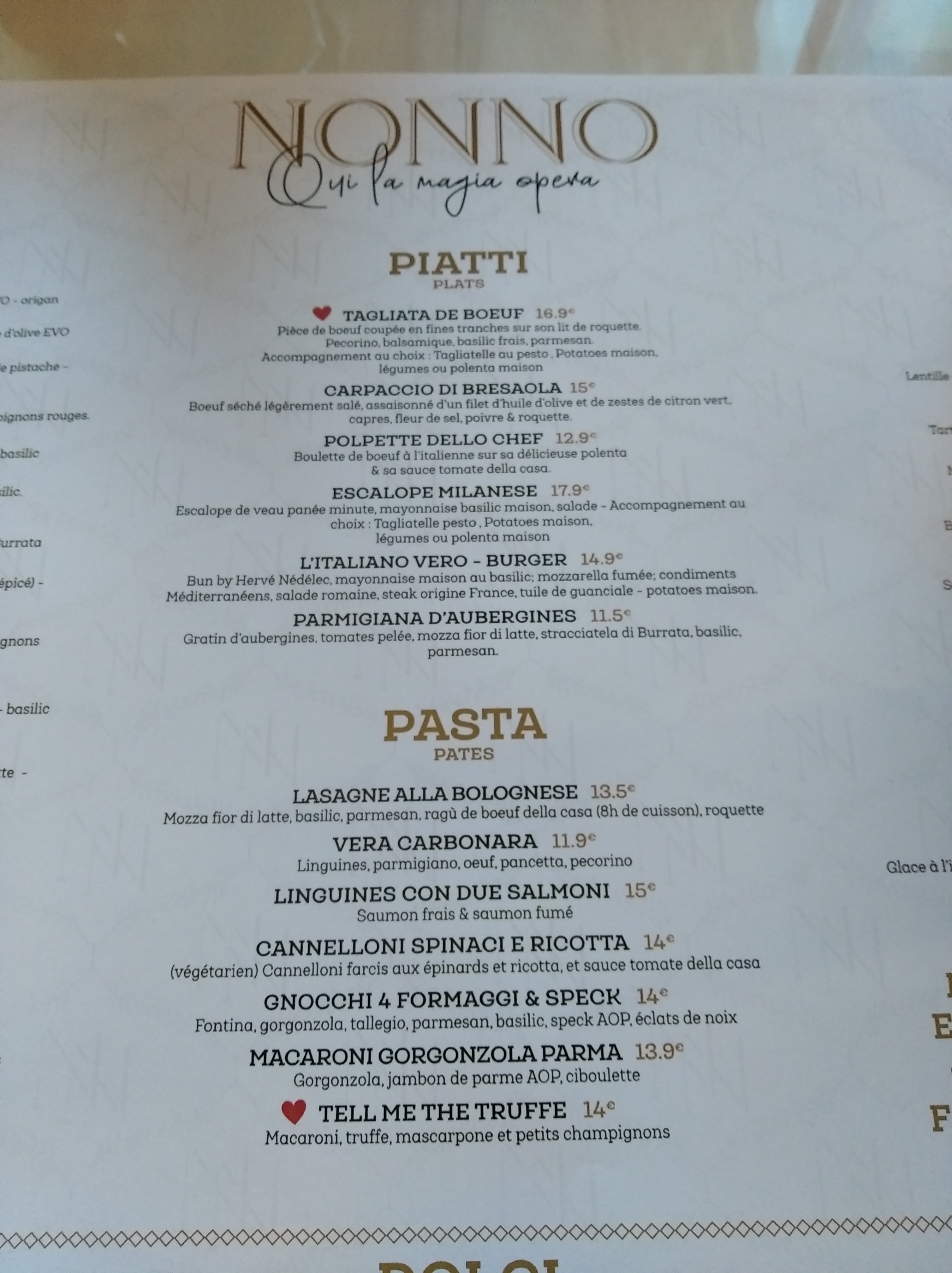 première expérience gustative chez nonno - très bonne cuisine italienne à partir de produits frais - on s'est régalé - adresse (à consommer sans modération) -merci à toute l'équipe