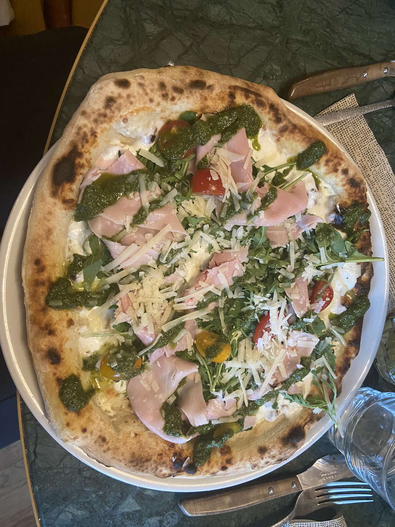 Génial cadre magique et magnifique plat très très bon et présentation top. Serveur hyper sympa Décoration typique pizza des années folles et design. Bar le Spritz et merveilleux. Glace maison à tombé Nous avons mangé en famille et nous avons adoré.