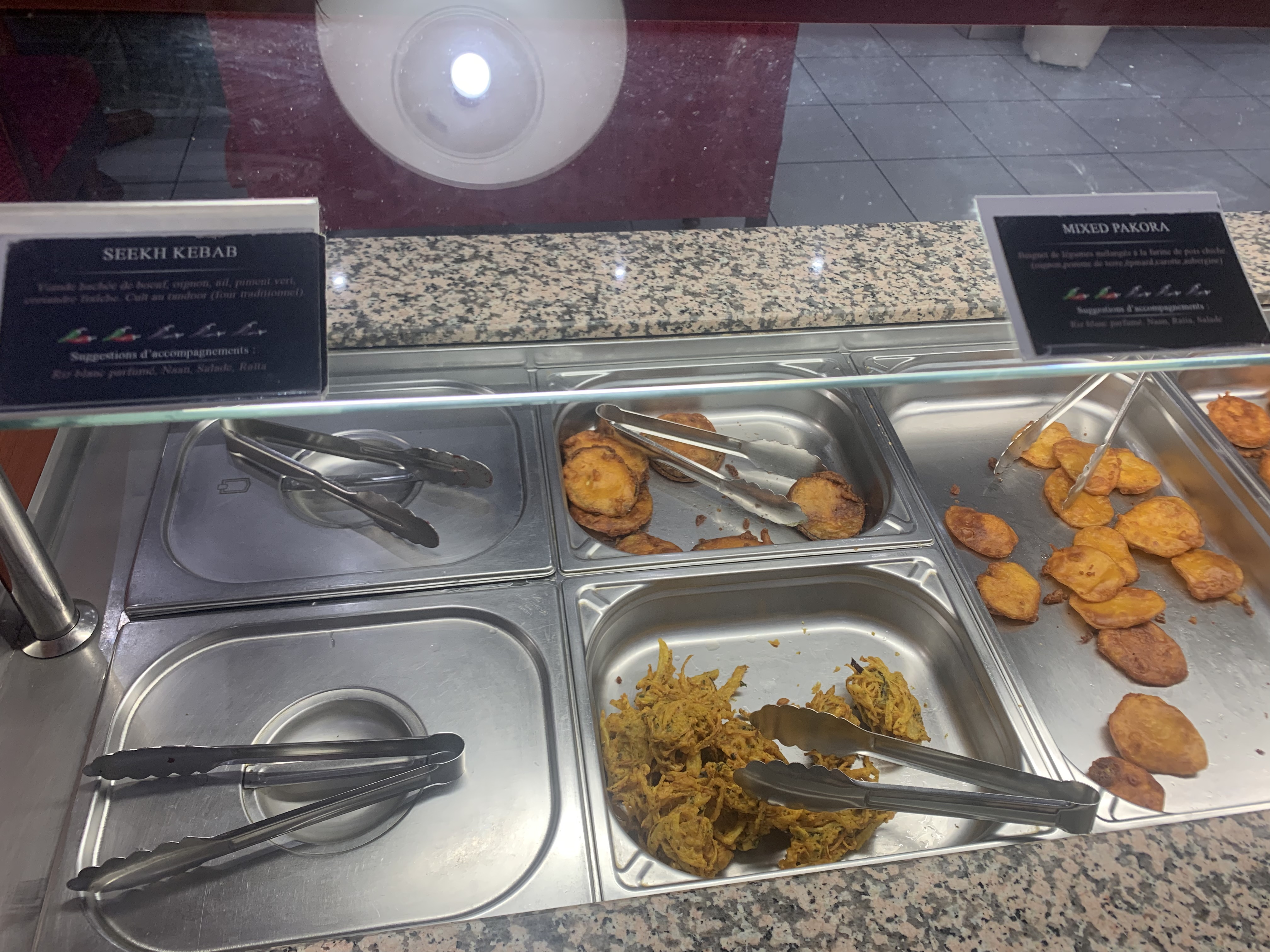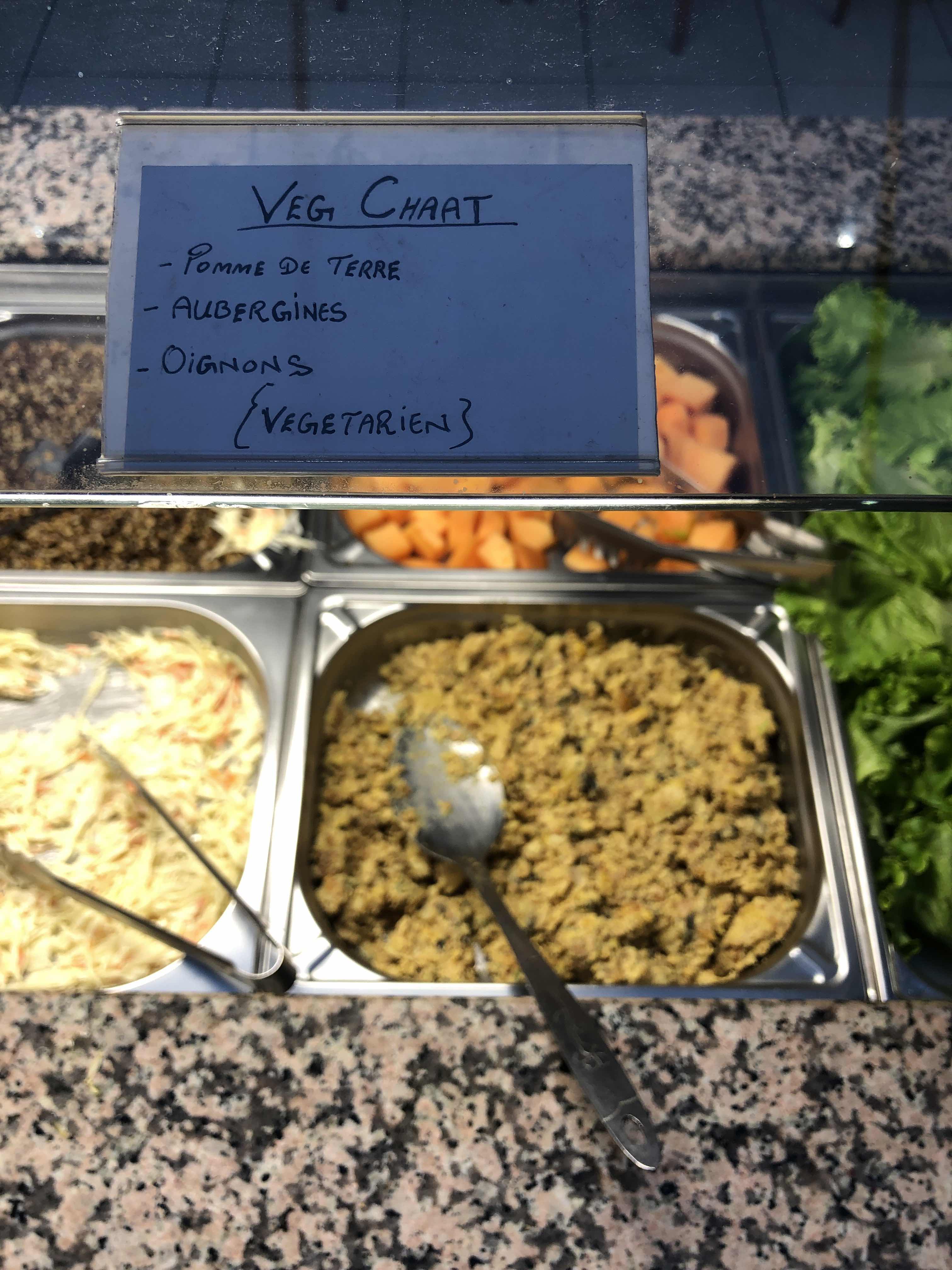 La salle à l'arrière est bien climatisée et les repas sont bien chauds. Pas une quantité affolante de plats comme on peut voir dans d'autres buffets sud-asiatiques, mais pour le coup ils étaient tous très bien maîtrisés. Mes coups de cœur : le Veg Chaat, salade végétarienne de pomme de terre, aubergines et oignons, et le Palak Paneer, à base d'épinards et kiri