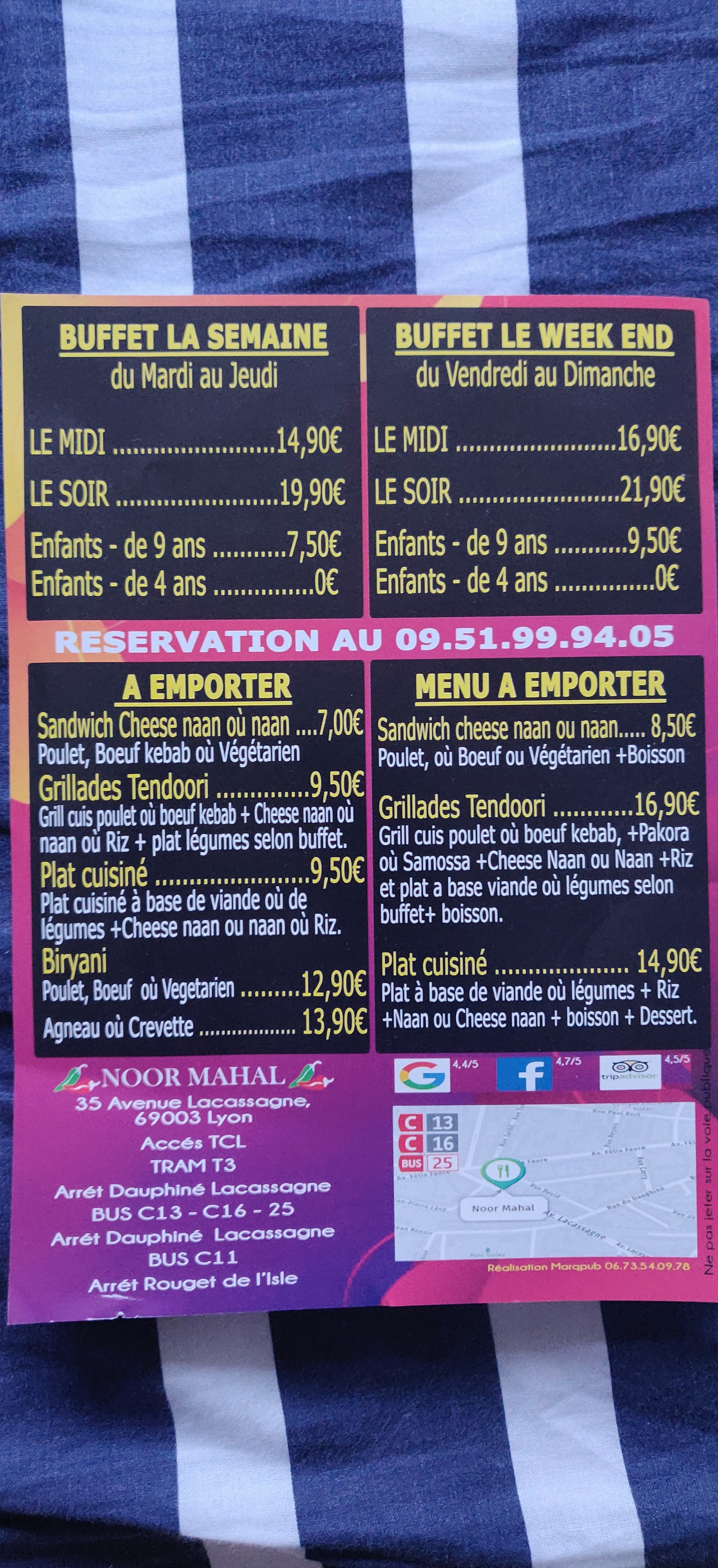 Tout simplement Super comme a chaque fois Une cuisine très épicée sans être trop piquant Buffet a volonté très varié il y en a pour tous les goûts viande poisson légume.... Surtout les cheese naan sont trop trop bons faits maison et a volonté Le personnel et très accueillant et aux petits soins Si vous êtes sur Lyon ou pas trop loin c'est une adresse que je recommande vivement