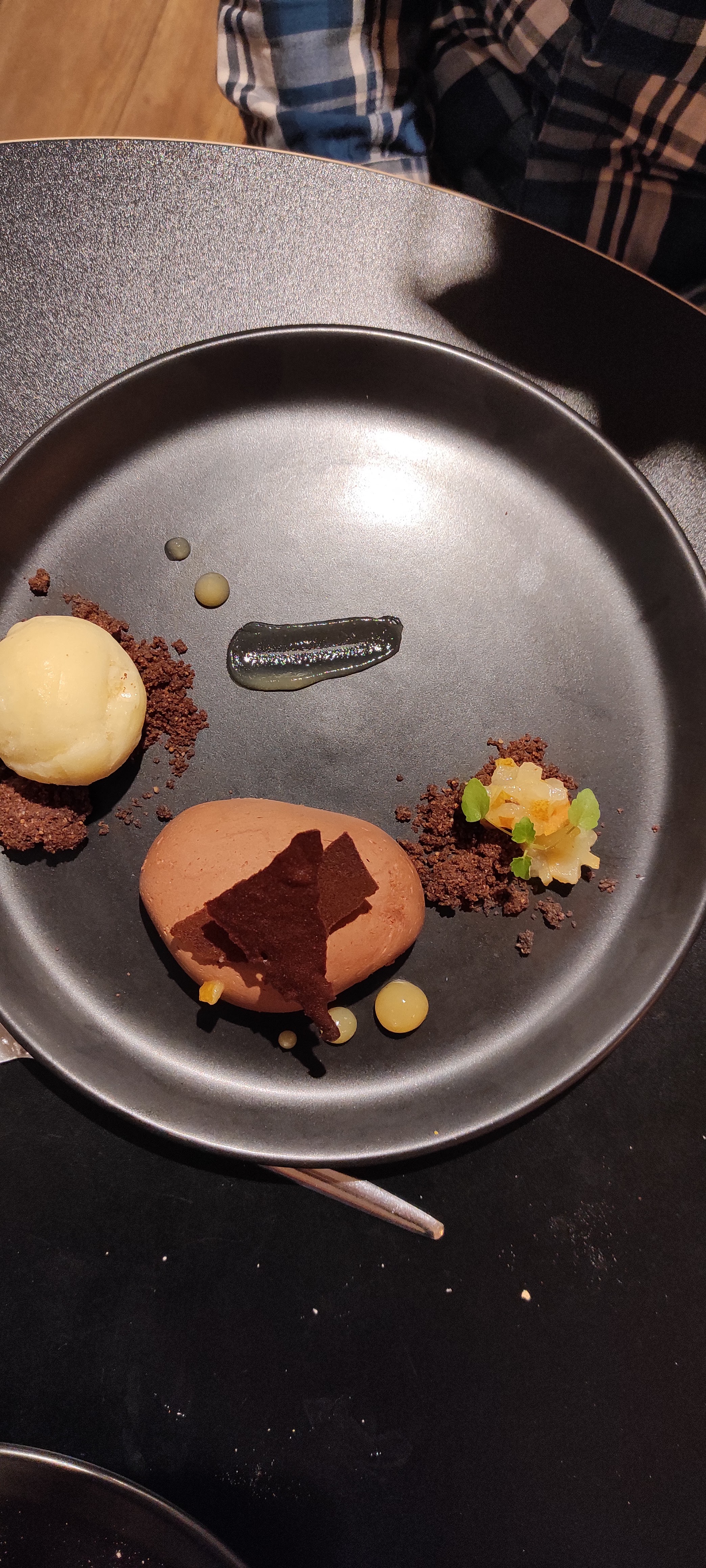 Restaurant très bien joli cadre. Excellente cuisine avec un chef créatif Les plats sont délicieux . Mais parfois difficile de savoir à l avance les saveurs des produits. Ce qui m'a amené à ne pas aimer du tout le dessert chocolat youzu Dont le goût était amère et non acidulé à mon idée. Mais heureusement on m a proposé à la place un autre dessert à la pomme Voir photo