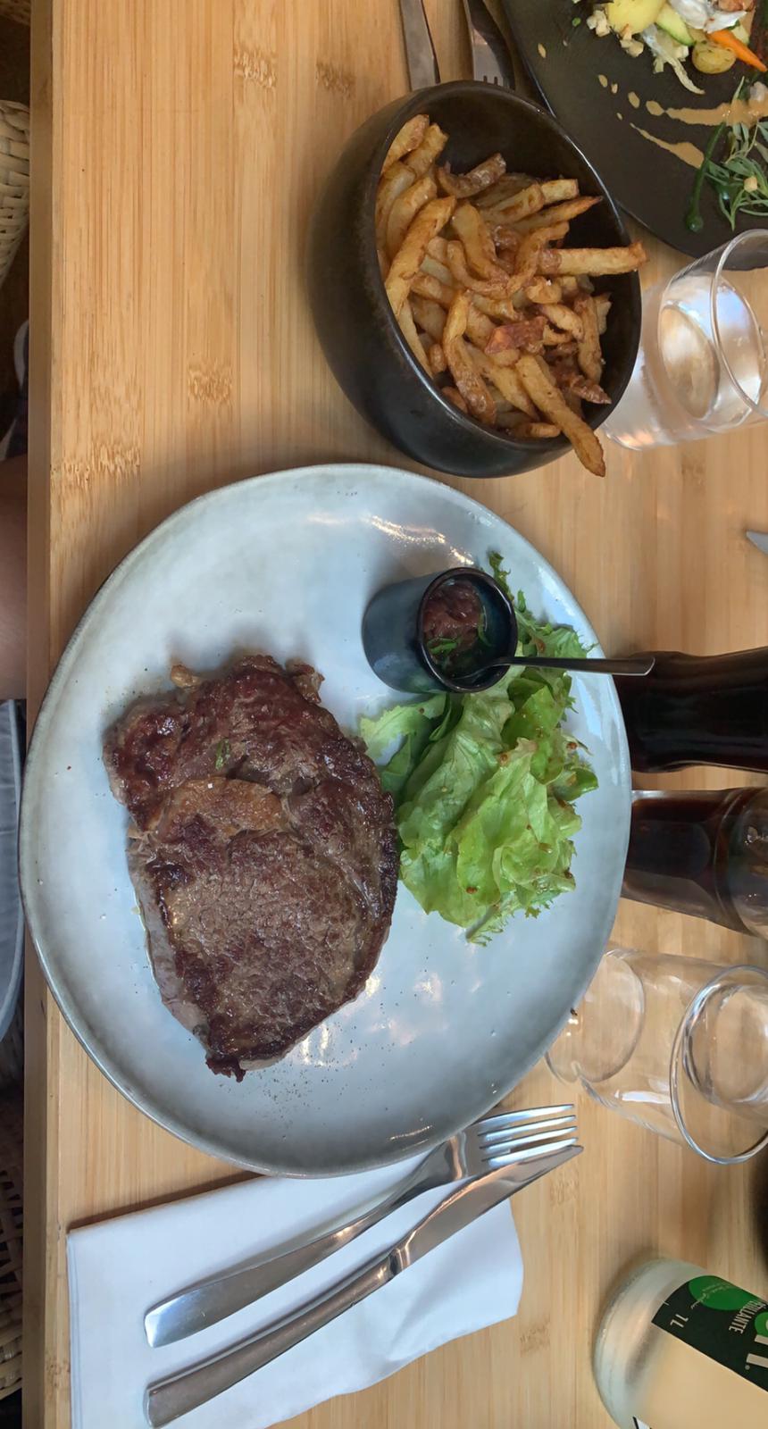 Excellent! Les plats sont très bons, maîtrisés et avec des cuissons parfaites! Le service aux petits soins (malgré la fin de saison) et le cadre très sympa. Merci pour ce dîner, c’était notre dernier avant de rentrer à Paris. Et merci d’avoir sauver mon entrecôte de la noyade dans le vin rouge ;)