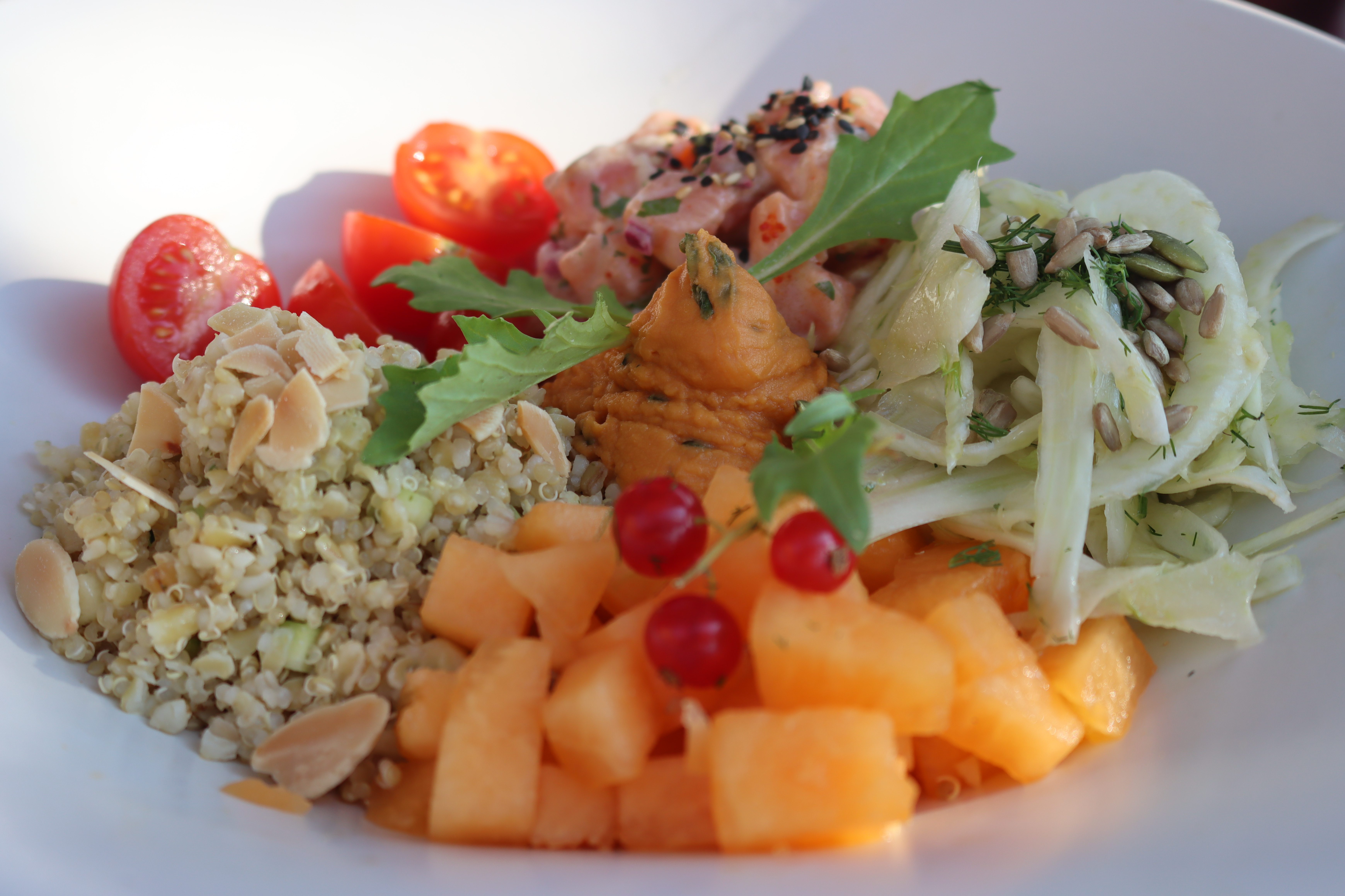 Déjeuner sous le soleil de septembre. Joli établissement qui propose des produits frais et maîtrisés, service professionnel et agréable. Je recommande vivement.