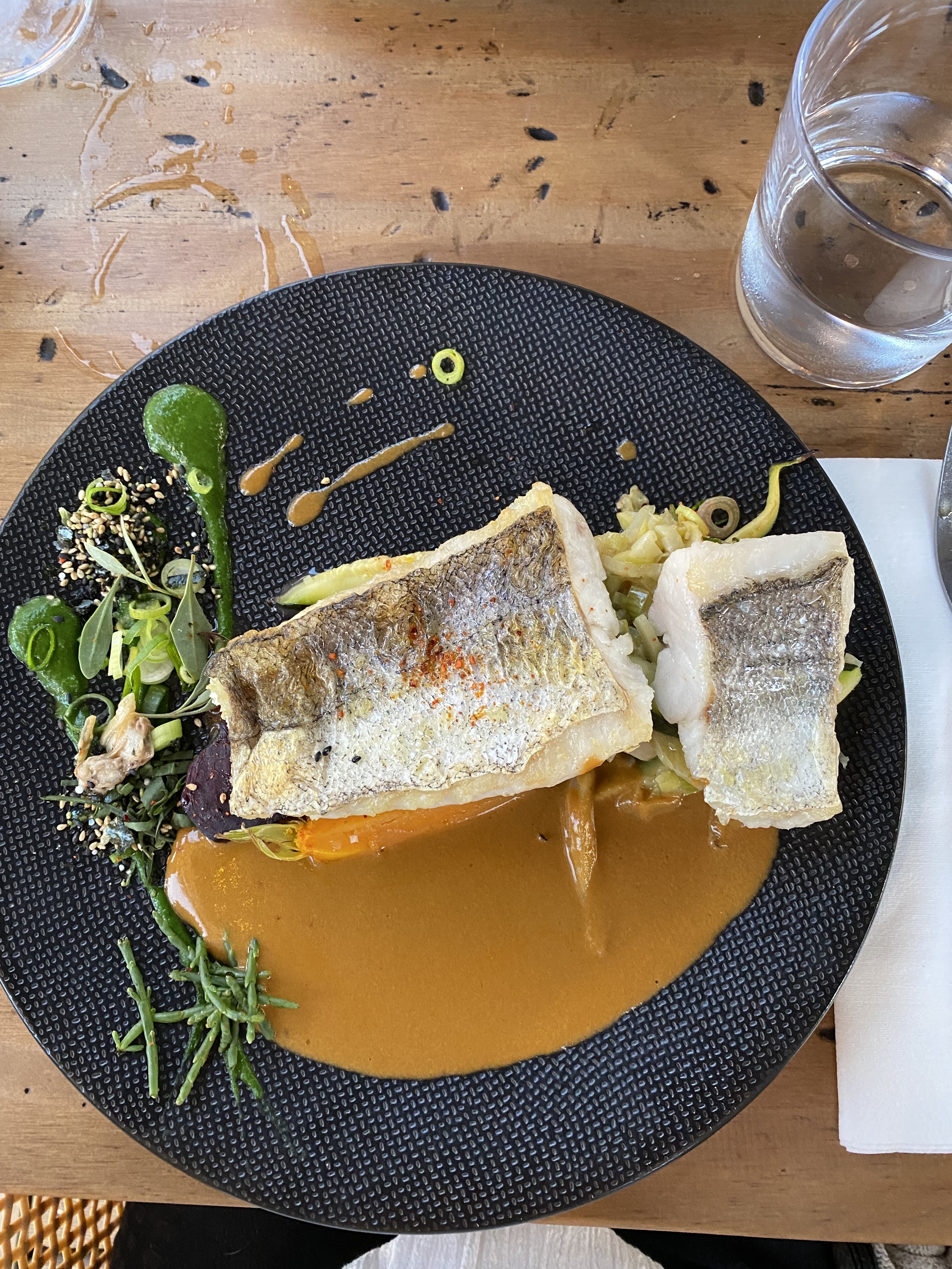On s'est régalé. Poisson très bien cuit. Accompagnement original et top. N'hésitez surtout pas