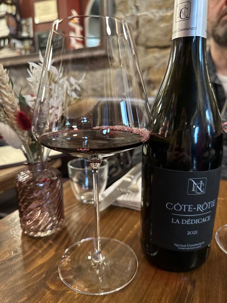 Repas ce soir avec 5 convives. Une cuisine de produit, précise et savoureuse. Sélection incroyable de vins que l'on regarde vers le nord avec le Beaujolais et la Bourgogne ou vers le sud avec le Rhône septentrional et méridional. Une adresse de haute volée. Remerciemnents chaleureux au sommelier pour la sélection et ses conseils et à Noémie pour sa patience et sa gestion impeccable d'une table assez agitée.