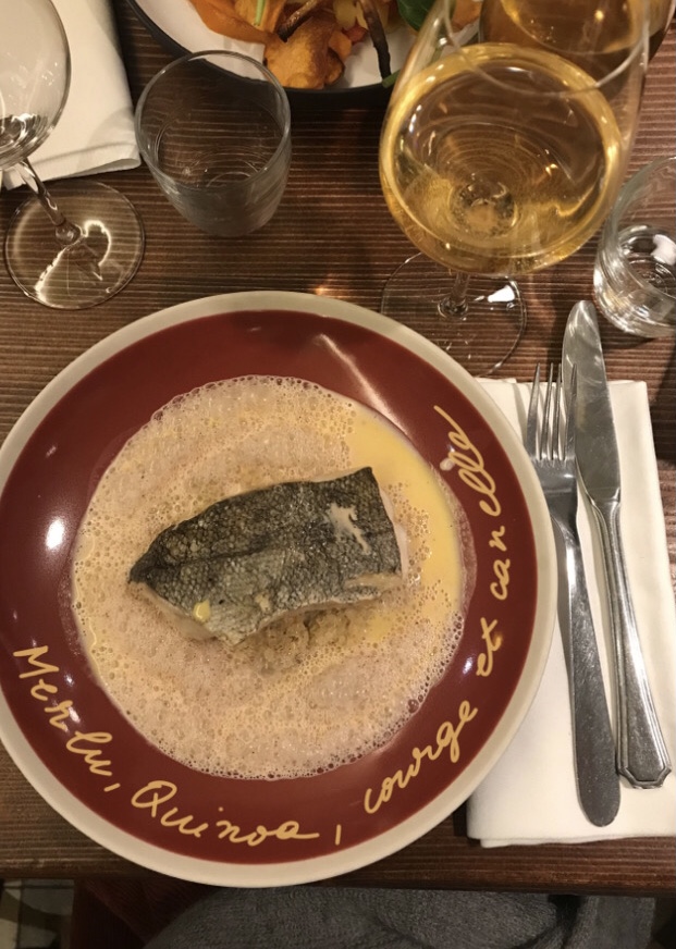 Un peu déçue de la cuisson de mon poisson (dos de cabillaud) et le dessert figues roties était un peu simple... A retenter...