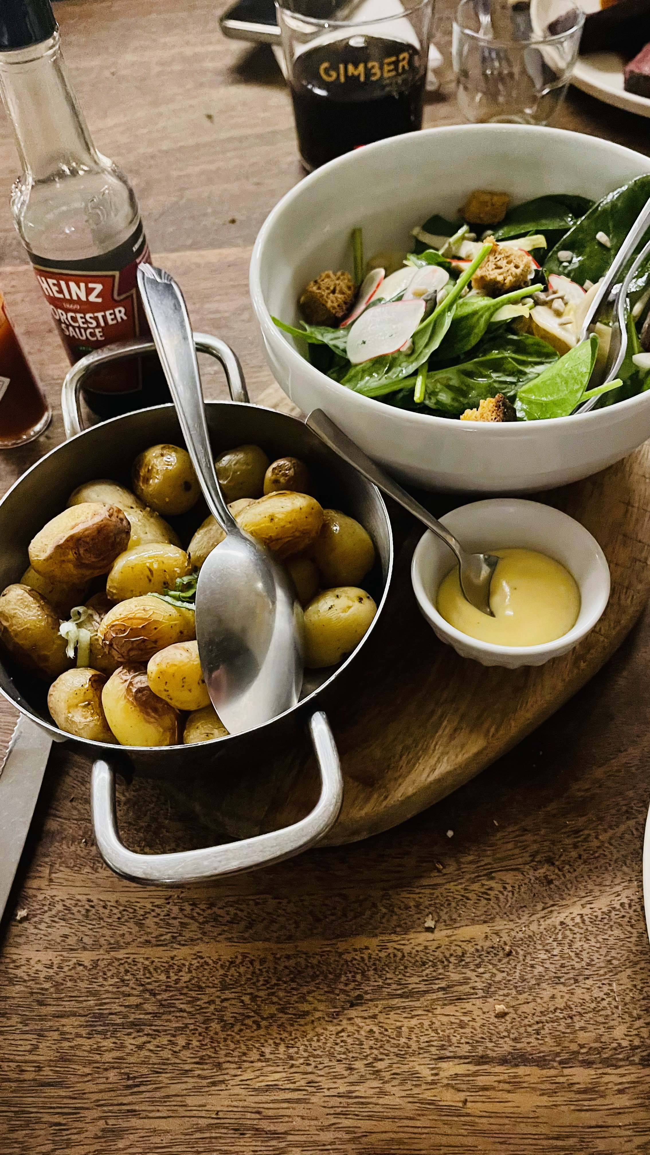 Très bon faux filet saignant. La sauce de la salade est excellente aussi 😋
