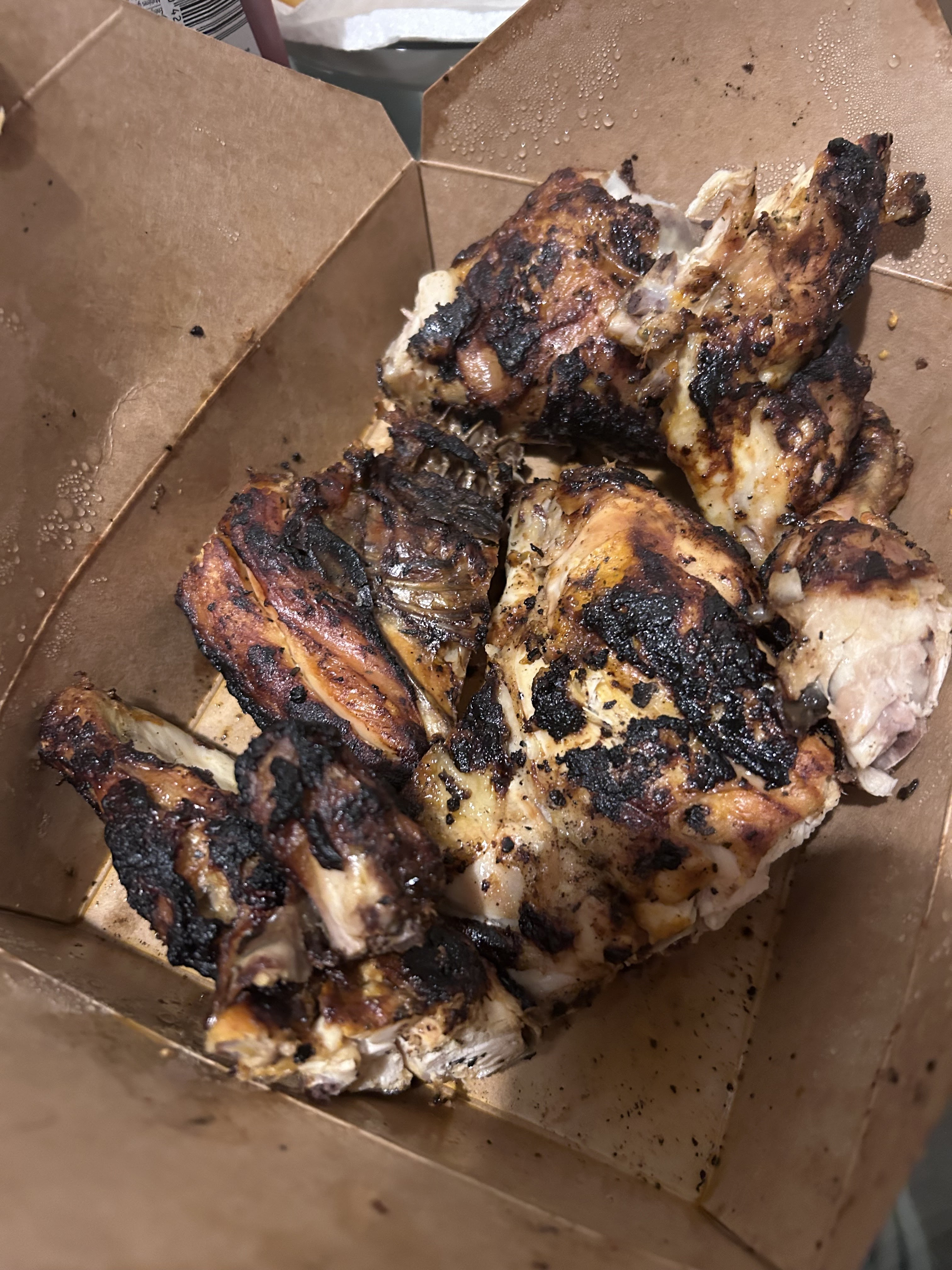 Malheureusement le poulet de ce soir était trop cramé ce qui le rendait amer à chaque bouché. D’habitude, la cuisson est bonne… je suis tombé le mauvais soir. (J’ai pris emporté)