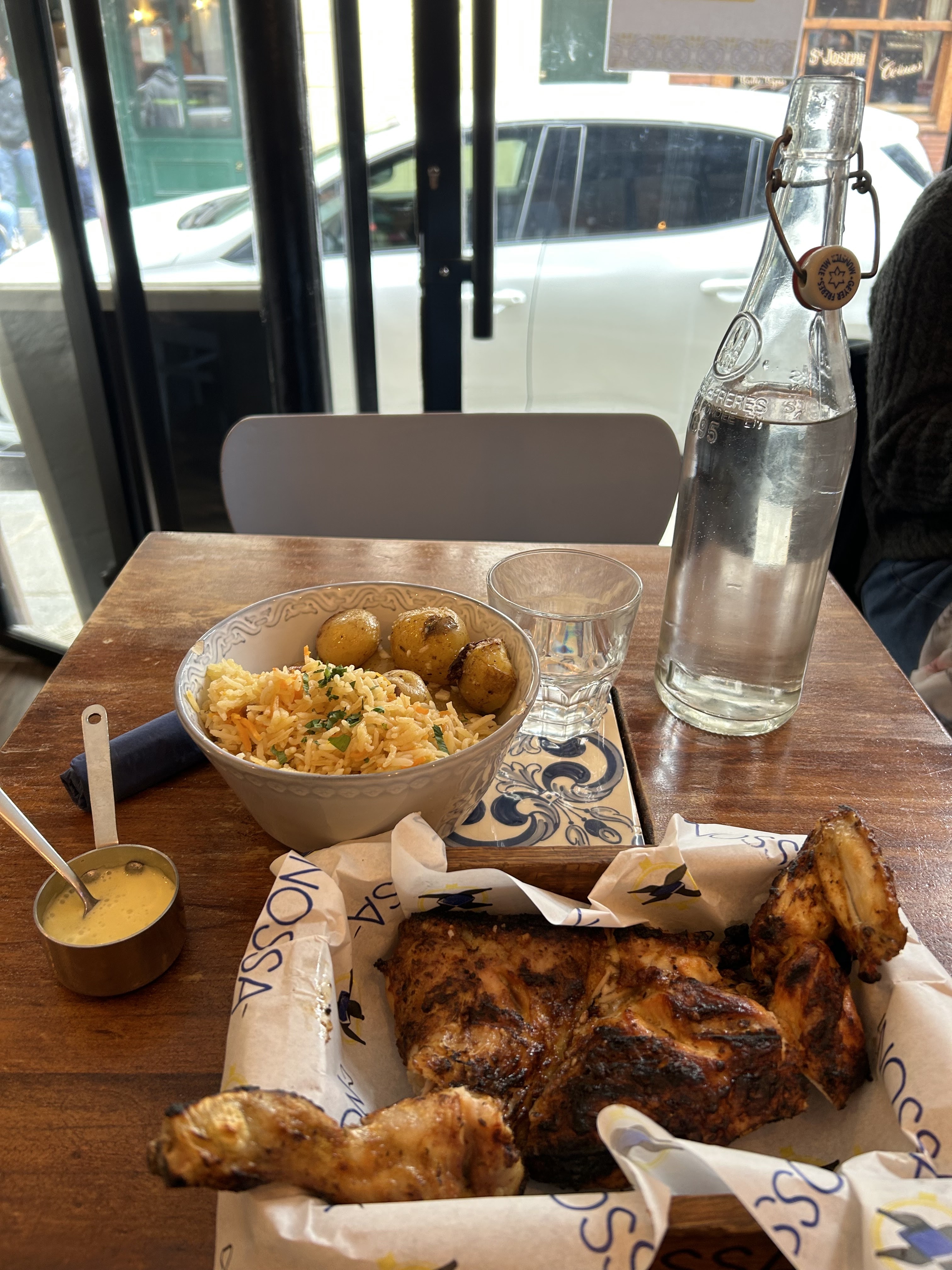Première fois que je mangeais portugais, très bonne adresse pour découvrir ! Poulet bien goûtu encore meilleur avec les sauces, pommes de terres cuites à la perfection !
