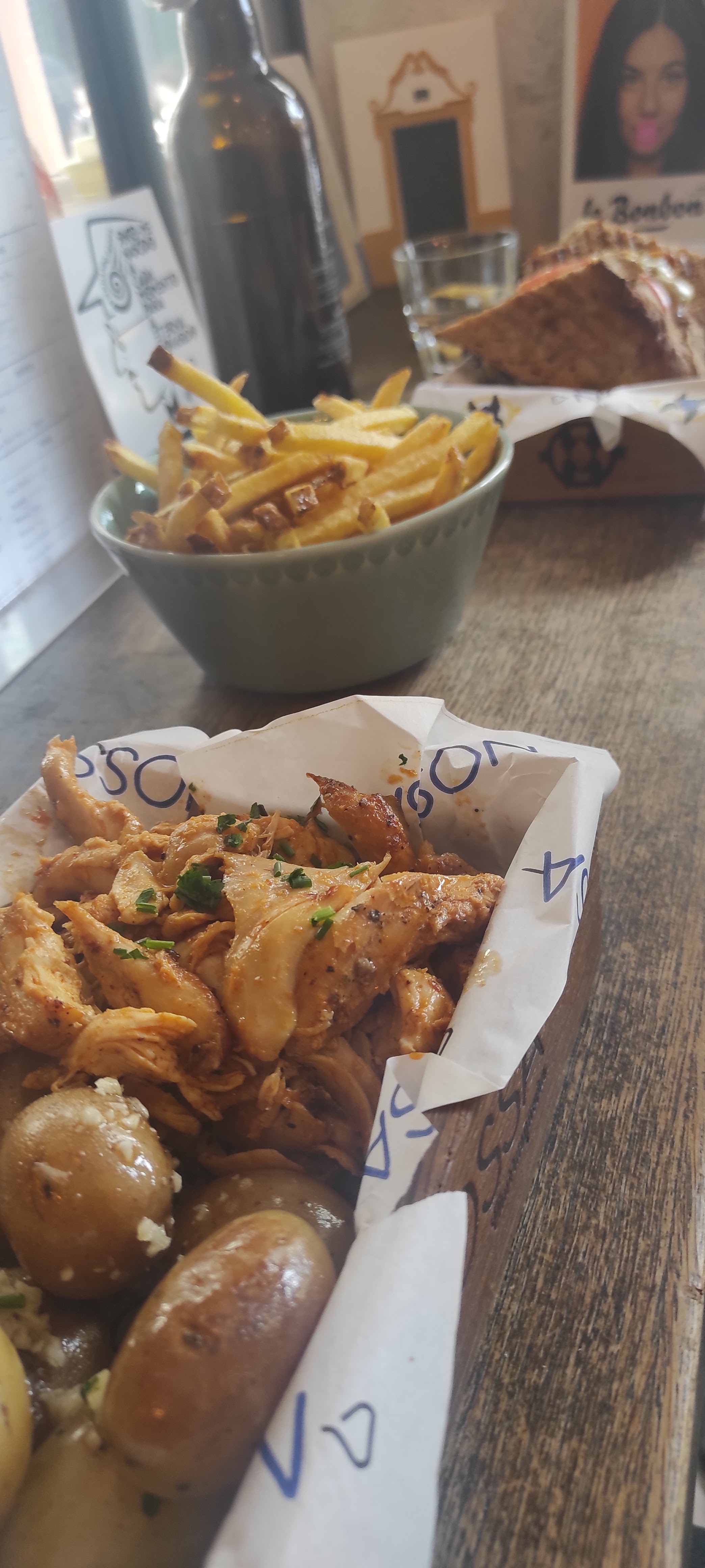 Les pommes de terre grenailles sont à tomber ! Bonne adresse pour déguster un bon poulet griller à petit prix. Les croques monsieur portugais sont top aussi, généreux et fait avec du bon pain de campagne. Le lieu est petit mais très cosy. Le personnel est jeune et agréable.