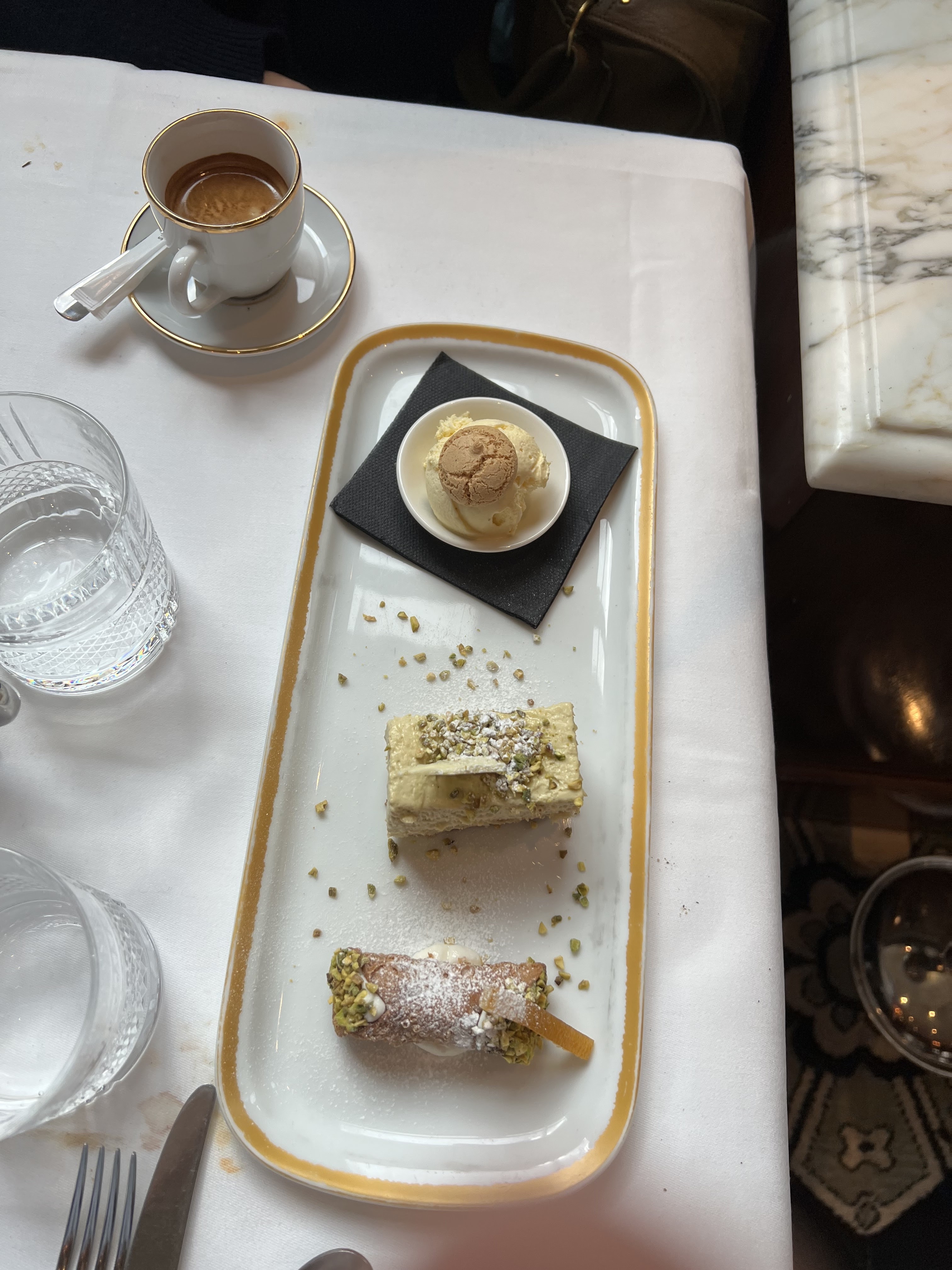Cadre somptueux, élégant et raffiné. Prix élevés mais très bonne nourriture italienne, on sent que chaque ingrédient et choisi avec soin. Deux services avec une ambiance calme au premier et très festive au deuxième. Service impeccable par Romain et toute l’équipe.