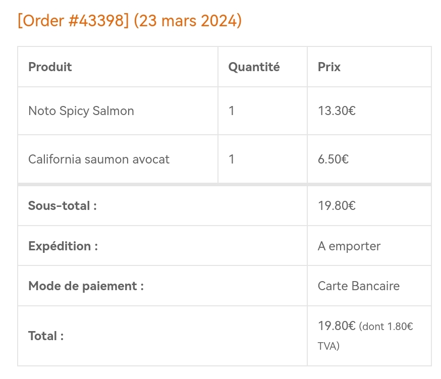 UPDATE: Nous sommes le 3 avril et toujours pas de remboursement malgré maintes échanges avec la « responsable » avec diverses excuses. Un signalement a été effectué et un dépôt de plainte est à venir. Appel effectué le lundi 12 février 2024 afin de faire une pré commande d’une box family pour le mercredi 14 février au soir, au téléphone on me dit que je n’ai pas besoin de faire de pré commande juste de passer commande le jour même à 18h, je demande si il n’y aura pas de soucis on m’assure que non (spolier alert : mauvaise réponse) Je commande cette fameuse box ce mercredi à 18h15 via leur site pour une livraison prévue entre 19h30 et 20h, 20h10 pas de livraison en vue, j’appelle on me dit qu’ils accumulent du retard et que ma commande devrait être ok dans les 20-30min (je suis conciliante nous sommes le 14 février bon …), 21h25 tjrs pas de sushi en vu, je rappelle et on me dit que ma commande n’est tjrs pas prête et qu’il s’offre à moi (une chance dis donc !) 2 possibilité, soit de patienter encore 40 min pour cette commande et avoir 30% de réduction sur ma prochaine commande (ce qui n’arrivera jamais du fait de la première expérience ou alors d’annuler ma commande et d’avoir un remboursement total sous 24h, mon choix se pose sur l’option 2 ! Merci Noto Sushi pour cette St Valentin, vous vous doutez bien qu’à cette heure ci nous mangerons des pâtes car plus de commandes possible ailleurs. Je ne doute pas de la qualité culinaire mais 1ere et dernière expérience chez eux.