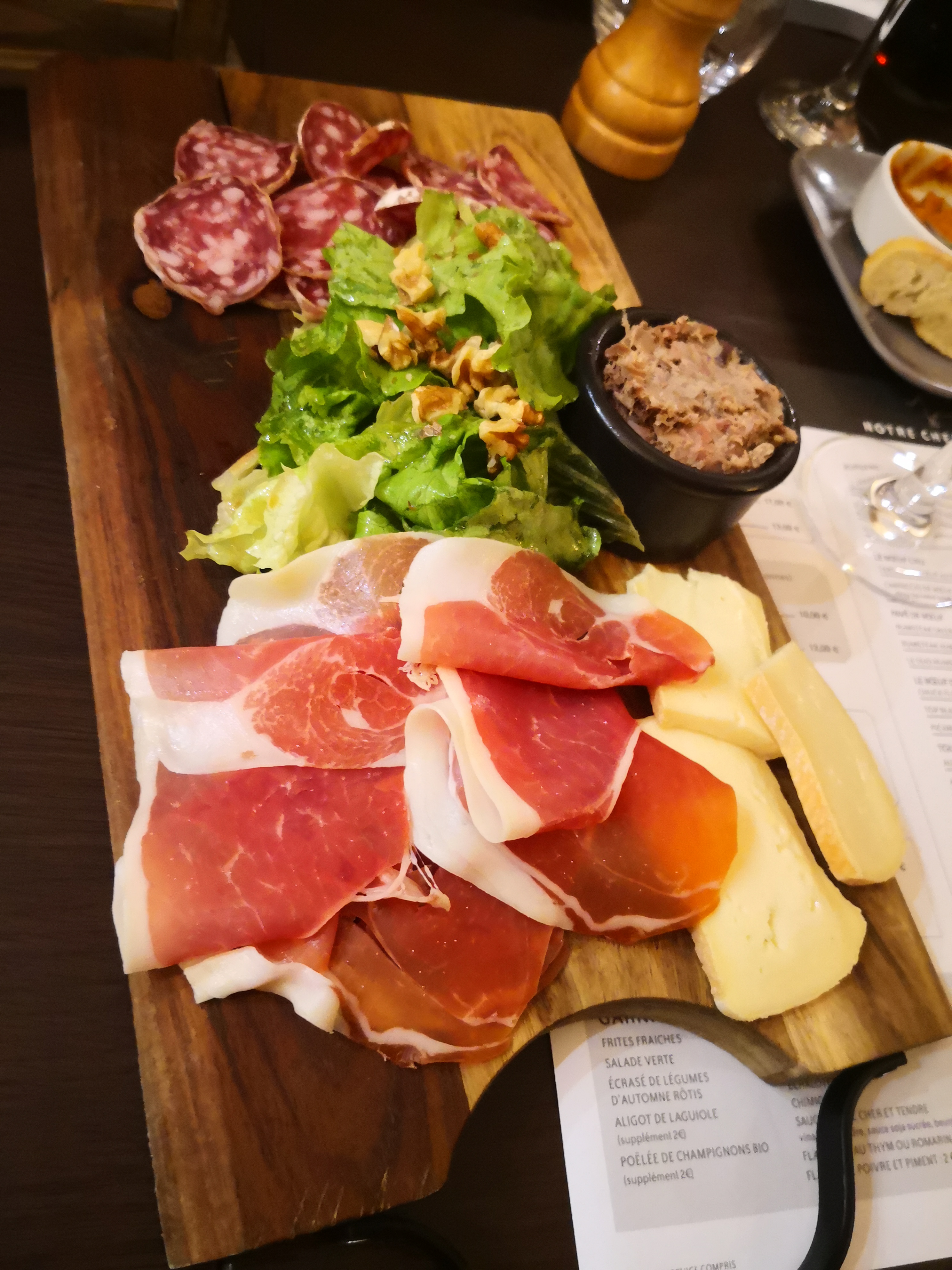 Repas de dîner Rapport qualité prix extra Service parfait aimable et souriant Servi en terrasse le parasol pa été ouvert aux vues des nuages en approche, ce qui est fort appréciable vue la pluie qui est survenu que peu après.... Encore merci de cette attention agréable Viande de qualité Assiette de fromage très bonne Je recommande vivement Merci