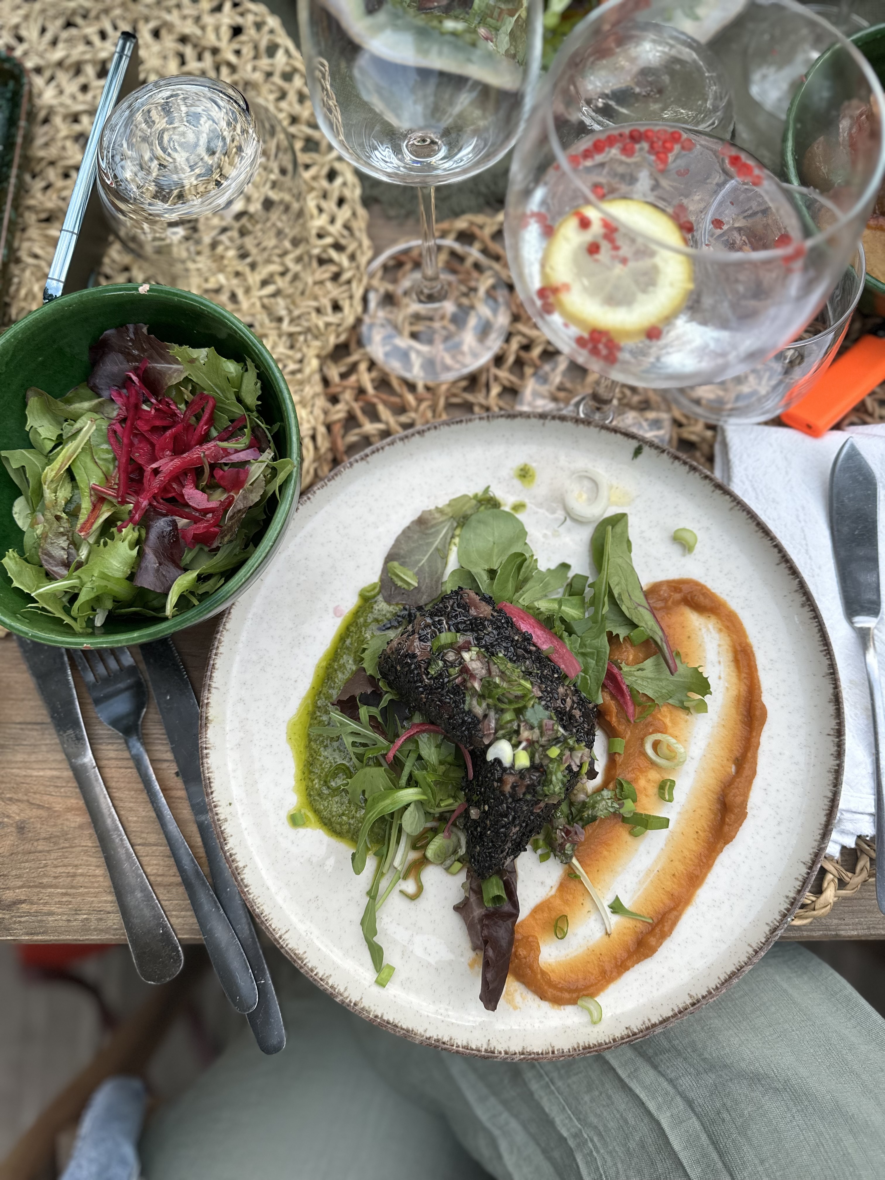 Un cadre magnifique : le décorum est soigné dans les moindres détails, l’équipe de serveurs est parfaite avec une hôtesse des lieux aussi jolie qu’accueillante. La playlist musicale est dans la même veine : à tomber. Passons aux plats : c’est un délice de A à Z, on s’en met pleins les mirettes et les papilles avec des saveurs qui pétillent à chaque bouchée. C’était tout d’abord un coup de foudre visuel, c’est au final un coup de foudre sur toute la ligne. A l’année prochaine ( et si vous vendez vos tables et vos chaises, pensez à nous 😉) Stéphanie et Laurent les Vichyssois ♥️