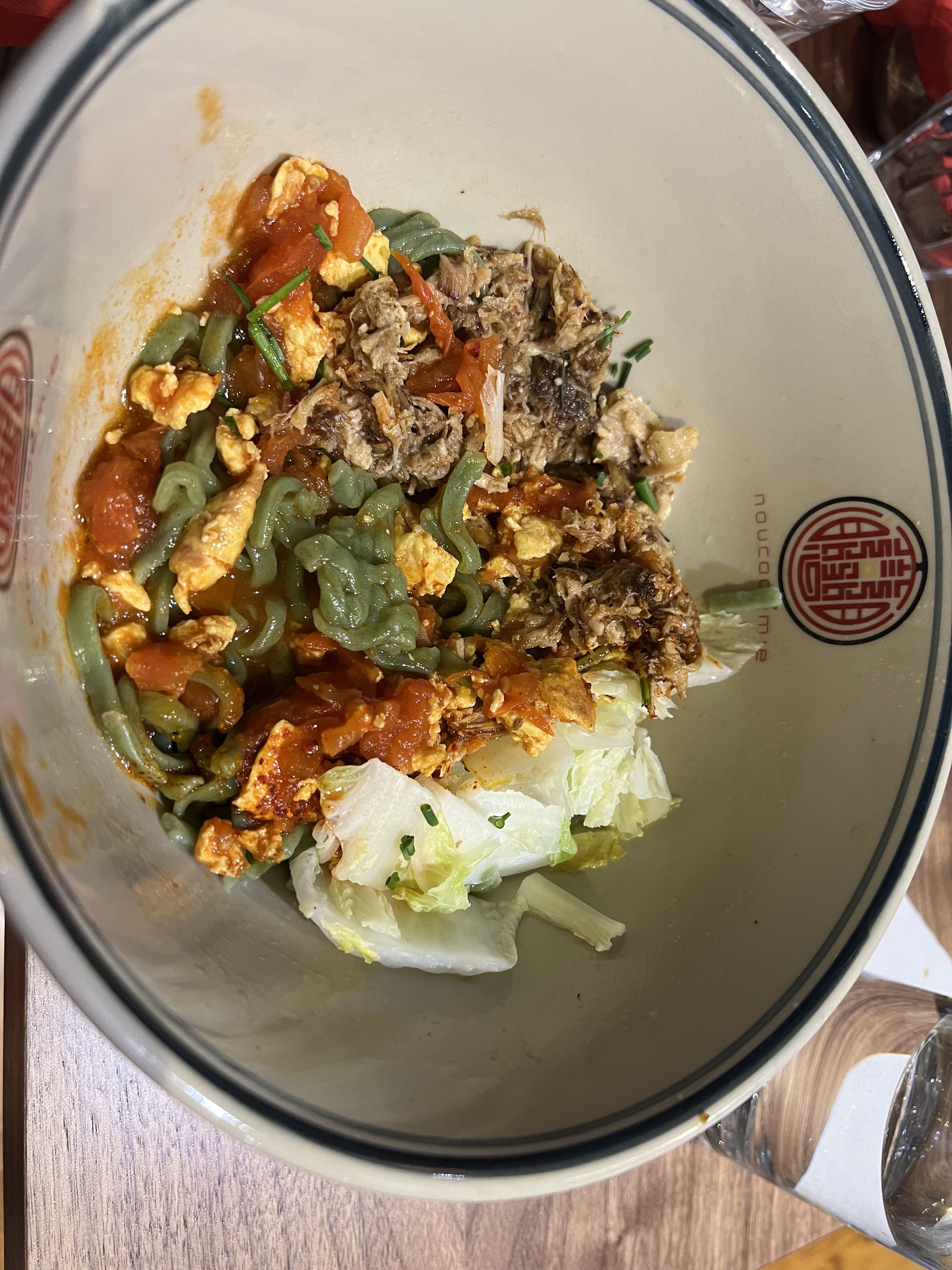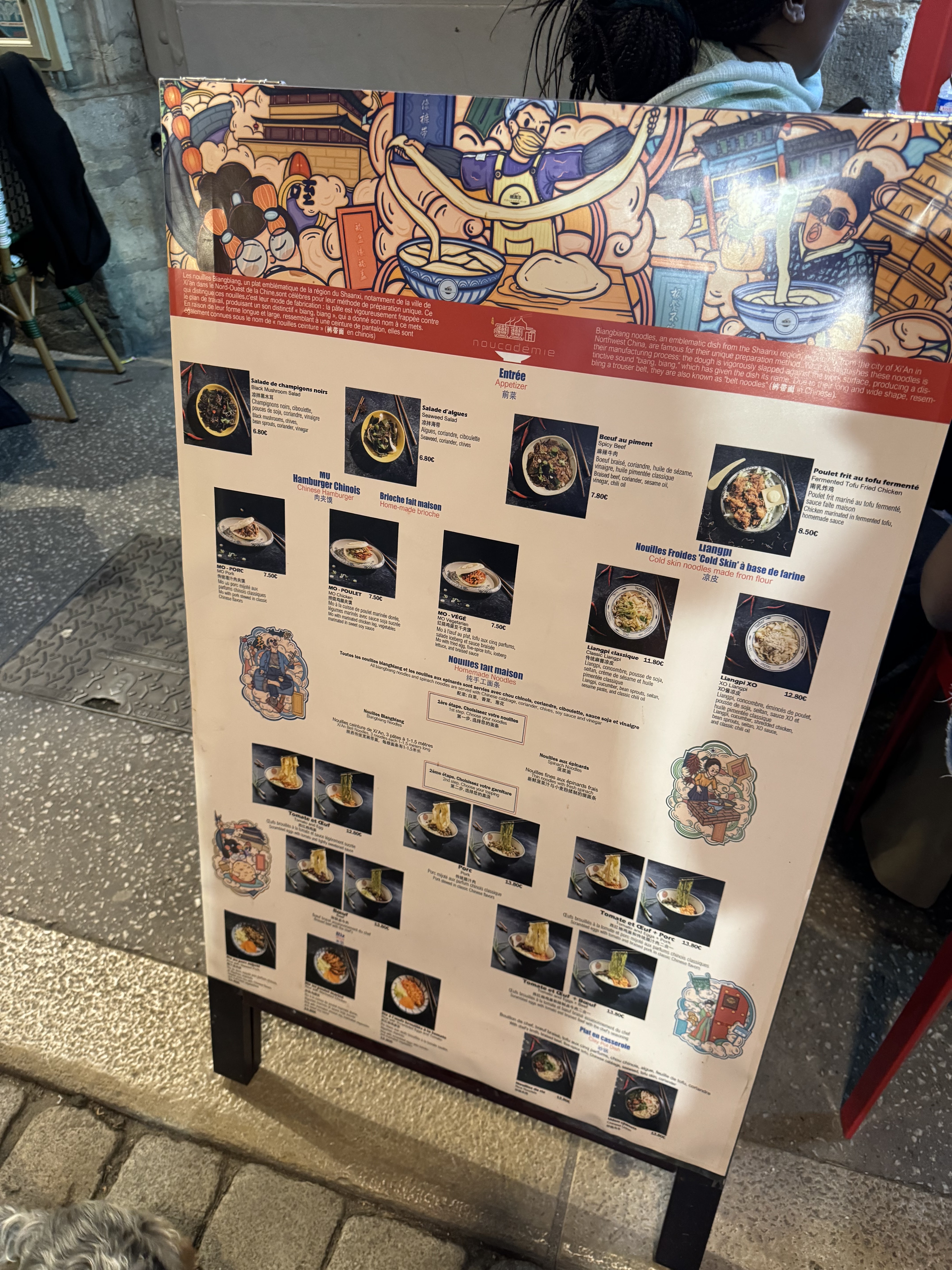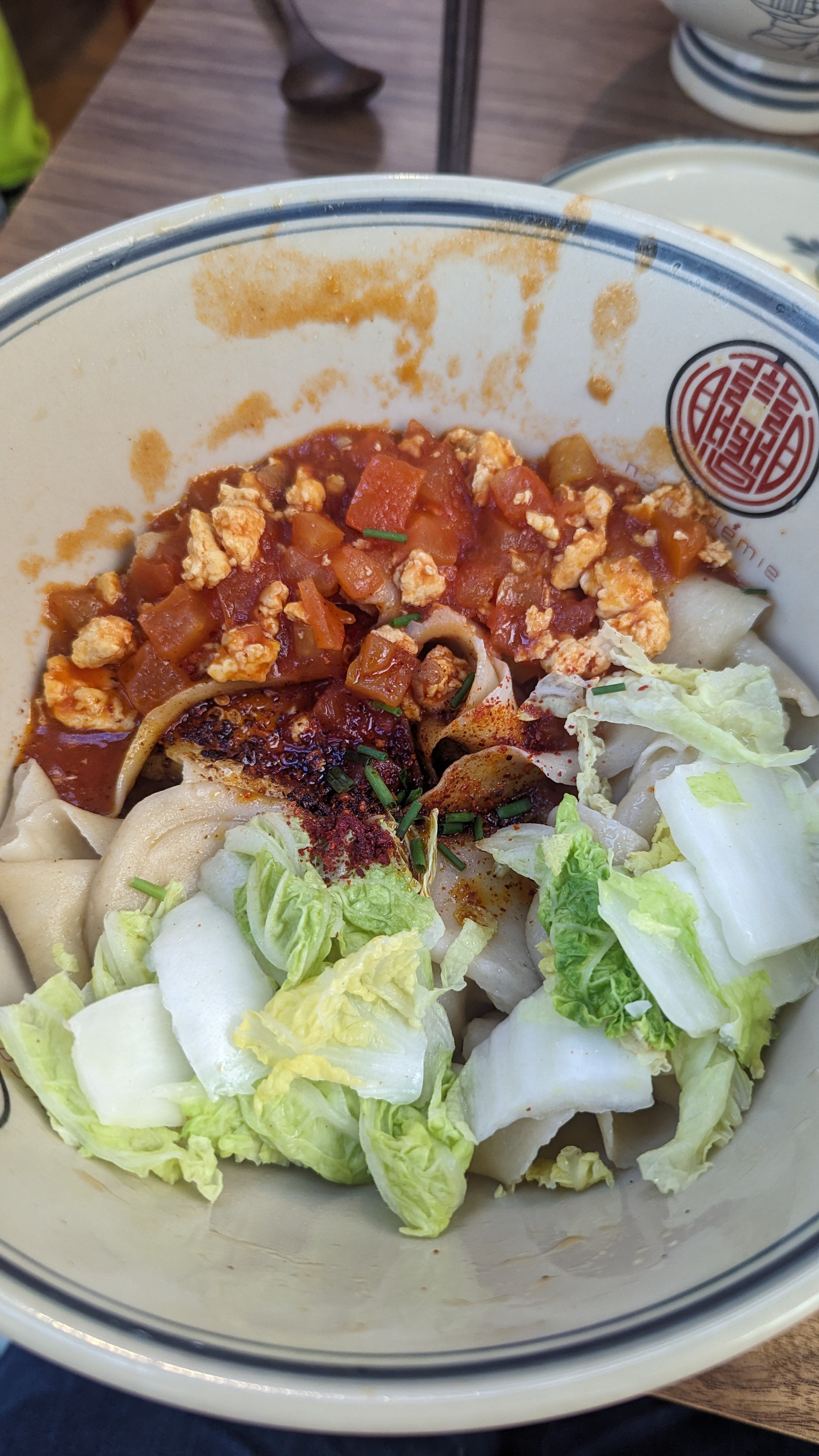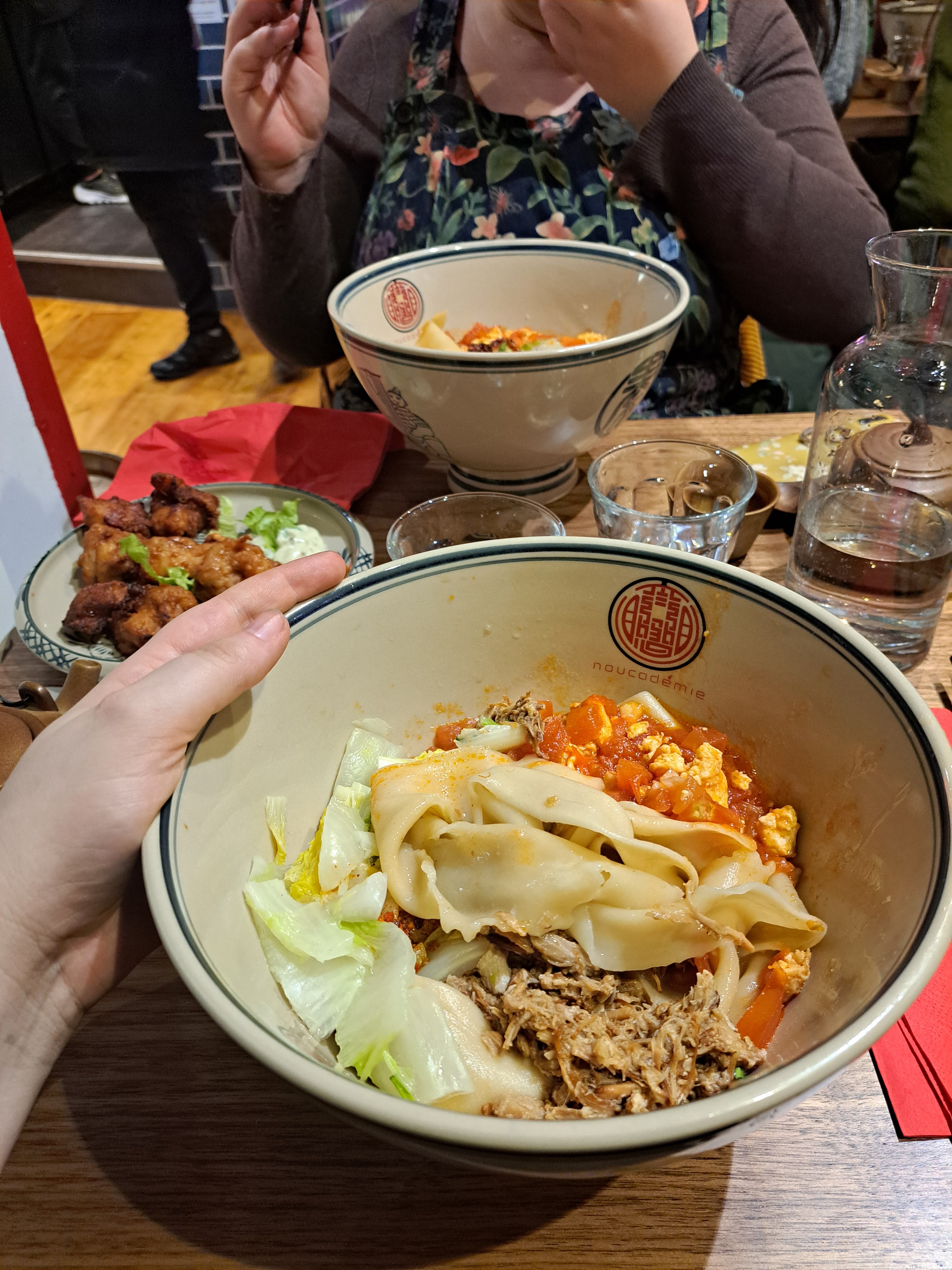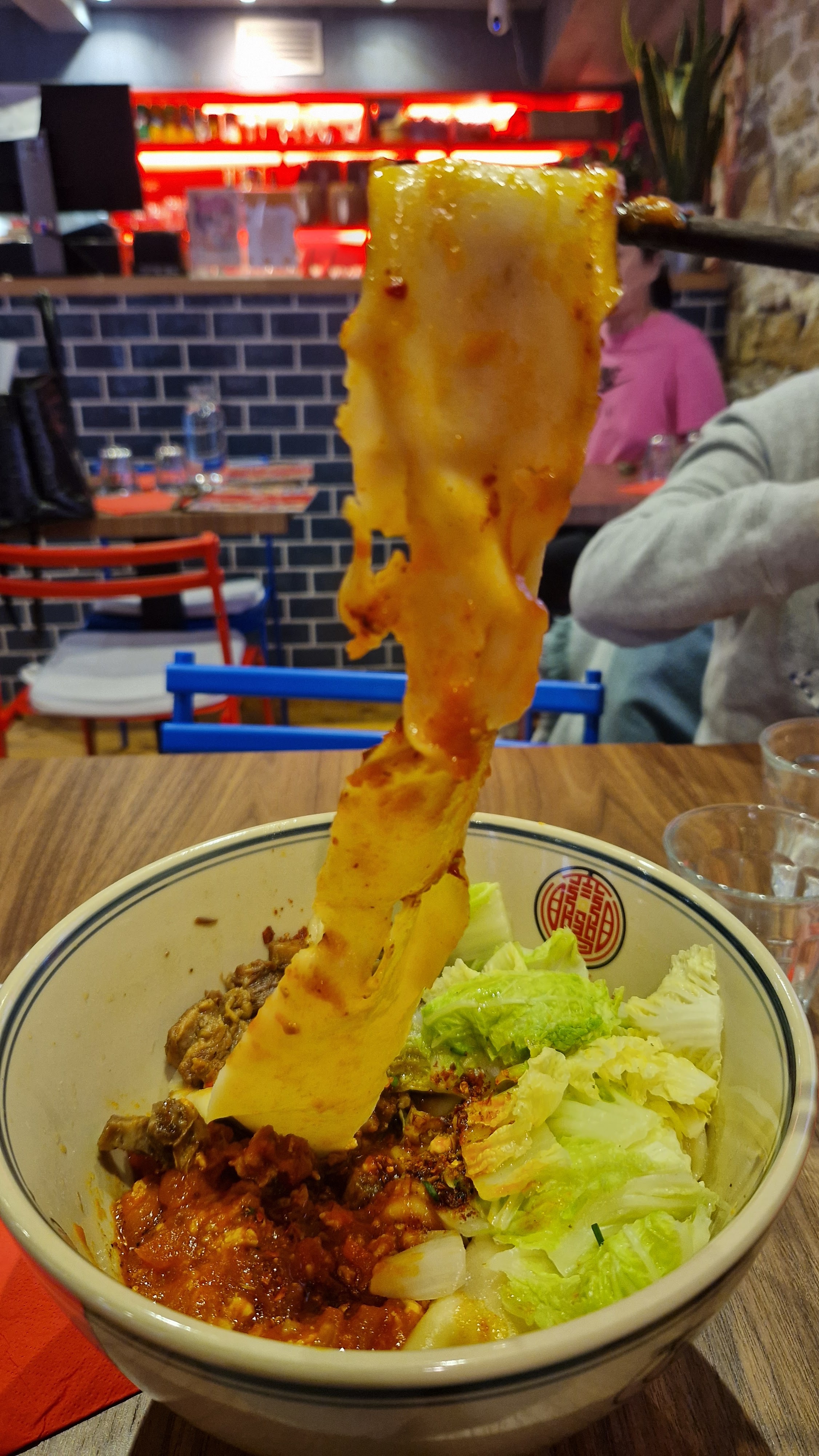 J'ai bien aimé. J'ai pris les nouilles Biangbiang oeuf et tomate. C'était bon mais sans +. La texture des pâtes est sympa mais leur format les rend compliqué à manger, ne pas venir en blanc ! ;) Je préfère 100x plus les nouilles DanDan du Noucademie Sichuan (le 1er resto) qui ont beaucoup beaucoup plus de saveurs.