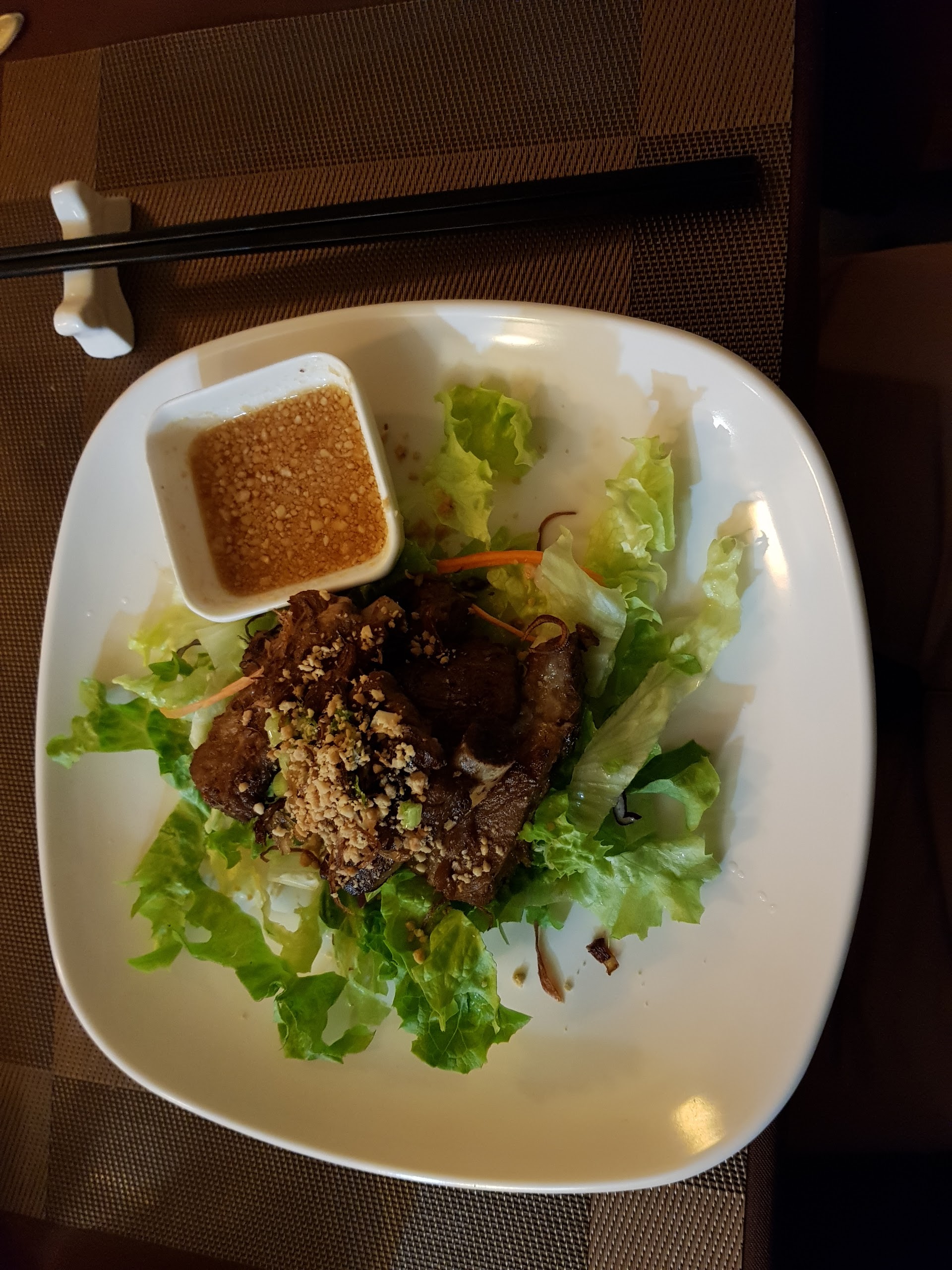 J ai bien aimé mon expérience dans ce restaurant. La décoration est très jolie (orchidées, tableaux et statues de bouddha, poissons...) ce qui donne un vrai aspect Thailande-VietNam à ce restaurant. La nourriture est très bonne, la saucisse à la Thai est à la citronnelle, très bonne avec la sauce à côté. Les rouleaux de printemps sont très bons également, avaient beaucoup de goût et préparés avec des ingrédients de qualité ! Le riz gluant était bien gluant mais rajouter une sauce à coté serait pas mal. J ai pas osé demander mais je pense que le personnel, très gentil, peut vous apporter une sauce soja si vous lui demandez ;) Bref un bon moment dans ce restaurant, très relaxant et moi qui aime manger avec mes écouteurs, je me suis pour une fois concentré sur le goût ! A recommander.