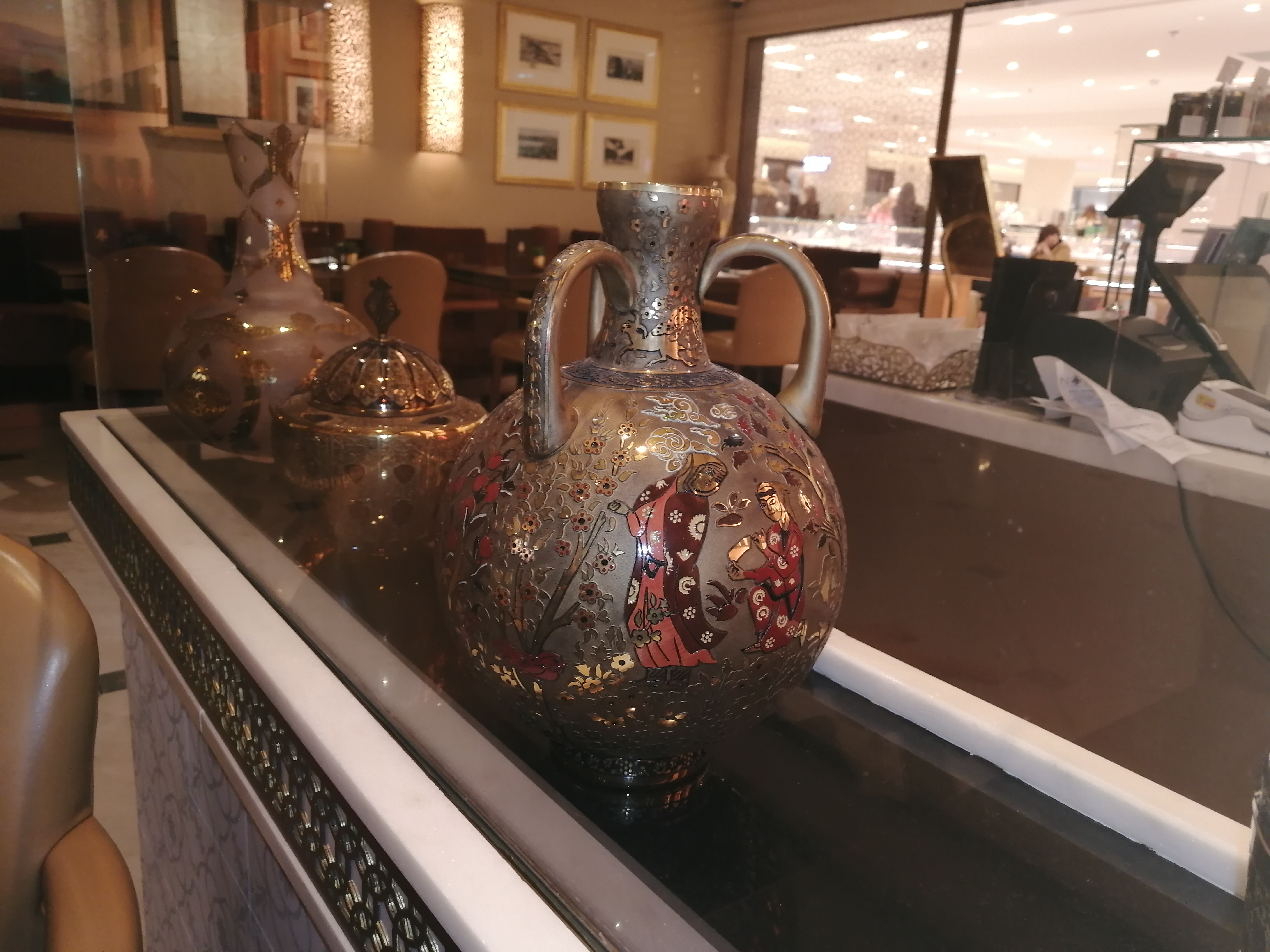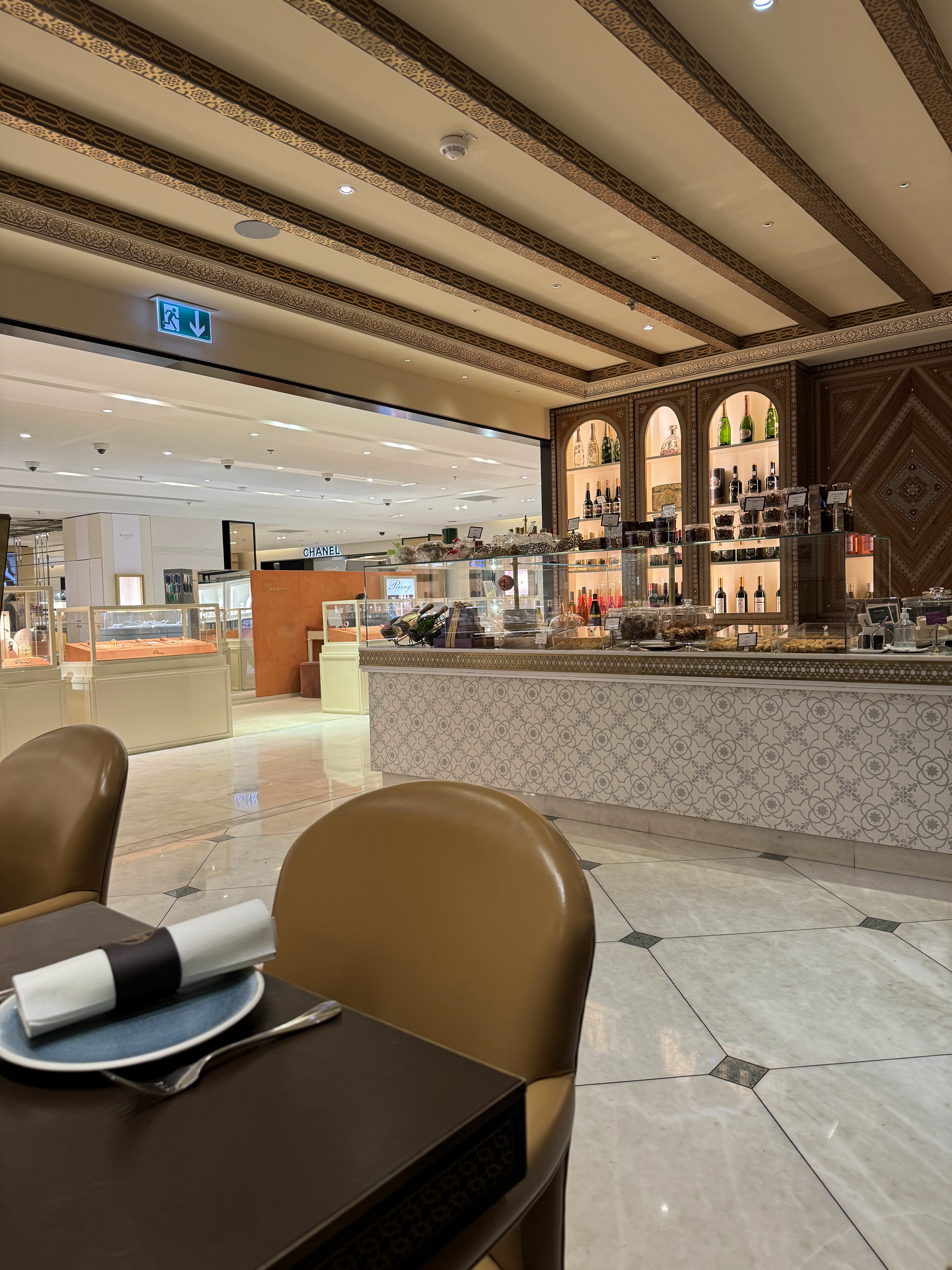 Au premier étage du Printemps, au calme, idéal pour un repas libanais dans l'intimité. Un mezzé 8 pièces et quelques pâtisseries, un vrai régal