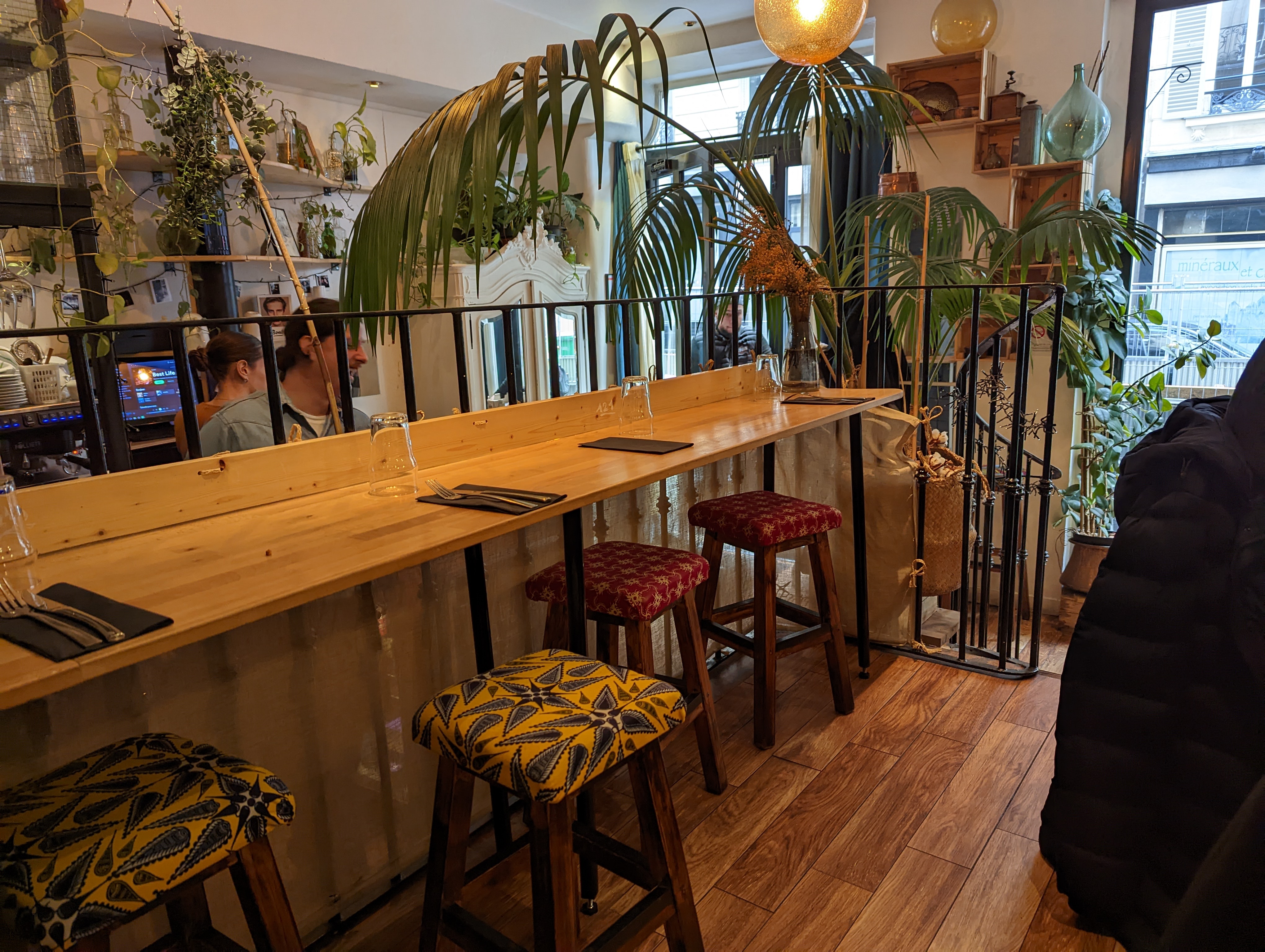 Accueil très chaleureux dans cette petite jungle urbaine au coeur de Paris. La cartes des boissons est variée et originale, on change des vins classiques qu'on peut trouver dans n'importe quel restaurant. Les cocktails sont travaillés et fait avec des alcool haut de gamme Les plats sont copieux, et pour certains, digne d'une brasserie de luxe ! Je recommande vivement PS: +1 pour le très beau patron ❤️