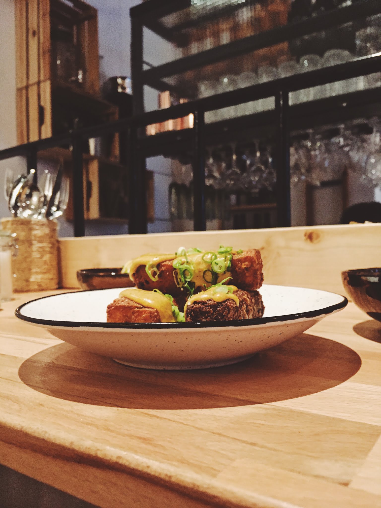 Je suis venue un vendredi soir avec deux amis. Nous avons pris des tapas, quelques boissons (dont un délicieux cocktail !) et un plat chacun. Nous avons été unanimement séduits par la gentillesse de l'équipe, le cadre cosy, mais encore plus par la cuisine. Beaucoup de soin et de créativité dans la présentation des assiettes ainsi que dans les accords de saveurs, qui mettent en valeur des produits frais et de très bonne qualité. Vraiment, un sans faute, continuez comme ça !