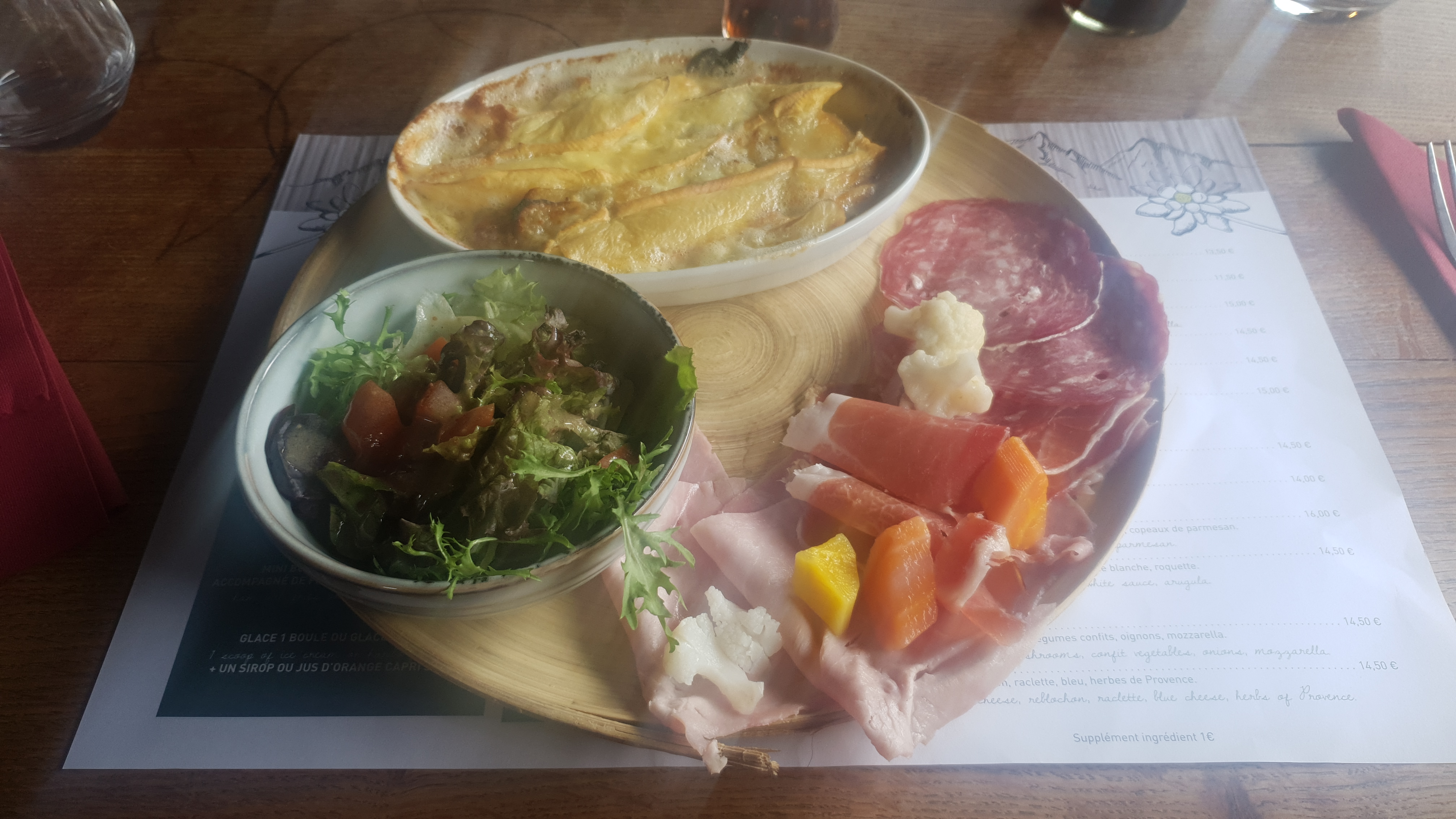 Accueil chaleureux, c'est bon mais les plats ne valent pas les prix affichés pour les spécialités. Pour la charcuterie vous avez du jambon blanc, de la rosette et pour le local jambon fumé. On s'attend à plus de variété locale à ces prix là. Dommage pour le seul restaurant dans une station familiale.