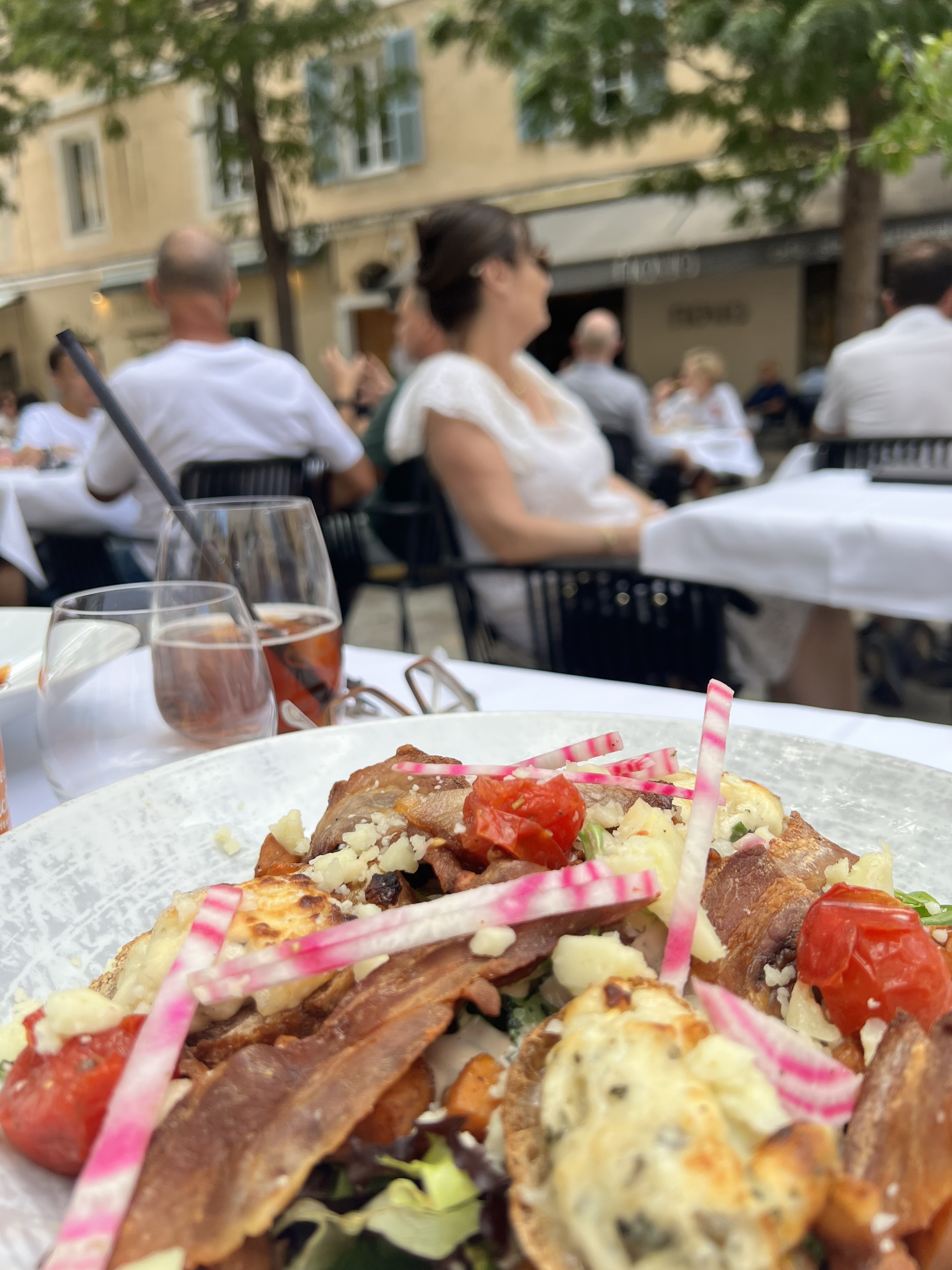 Bravo au cuisinier qui a de bonnes idées de recettes. Malheureusement le service est déplorable ! Et tricherie sur la quantité des verres. J'ai demandé un verre de rosé sans glaçons, erreur livré avec glaçons. Un fois que j'ai enlevé les glaçons, il n'y avait qu'un fond de vin...... Je vous conseille d'aller sur la terrasse d'en face au Babbu caffé où la cuisine et le service est exceptionnel !