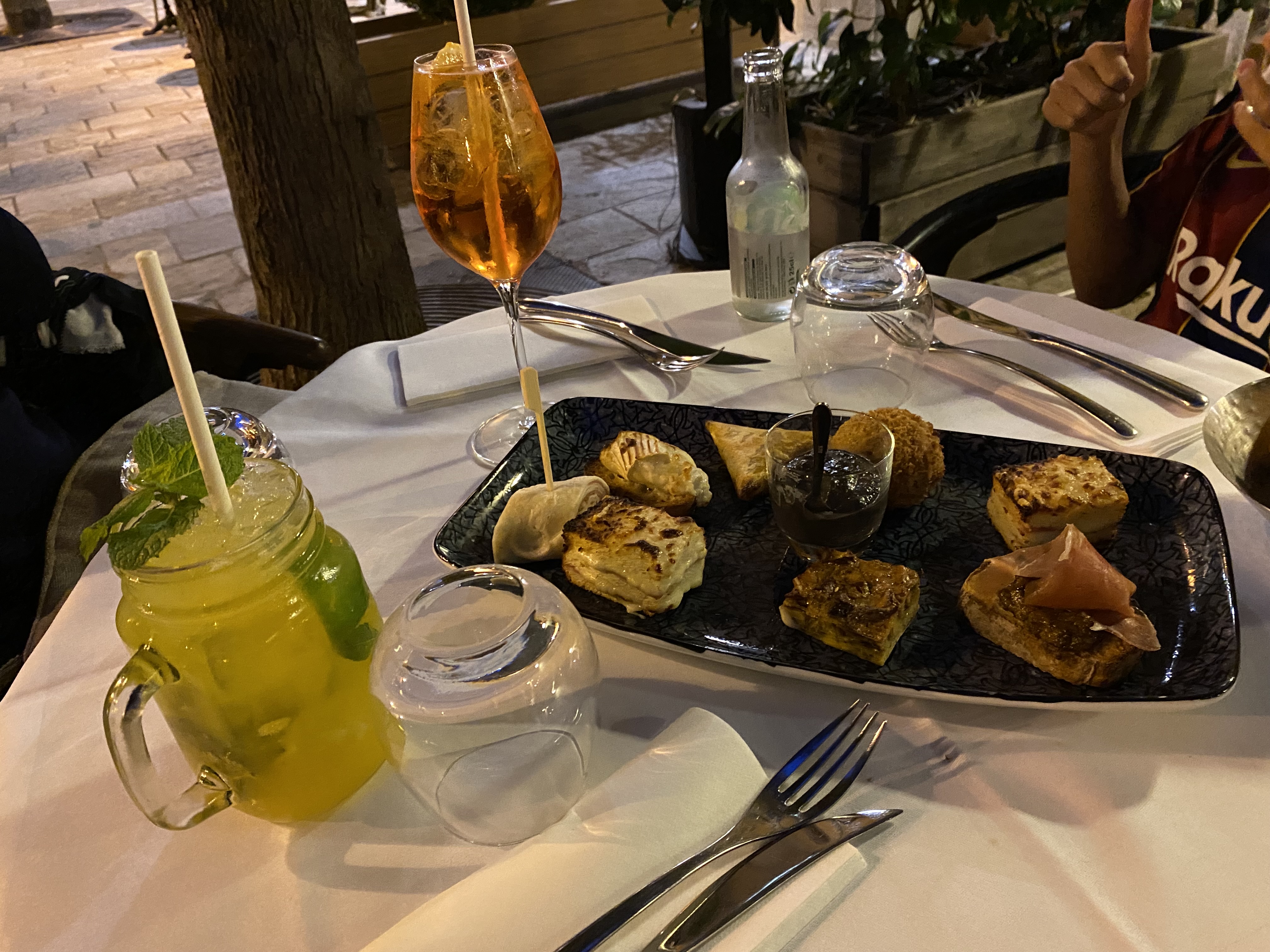 Éblouissant ! Petite place ombragée sympathique, le personnel très avenant. L'assortiment de tapas est super et accompagne très bien l'apéritif, le risotto de gambas exceptionnel ainsi que le mi-cuit de thon rouge à la pistache ! Assiettes très bien présentées et les saveurs sont travaillés ! Nous voulions nous faire un bon restaurant, nous recommandons sans hésitation !
