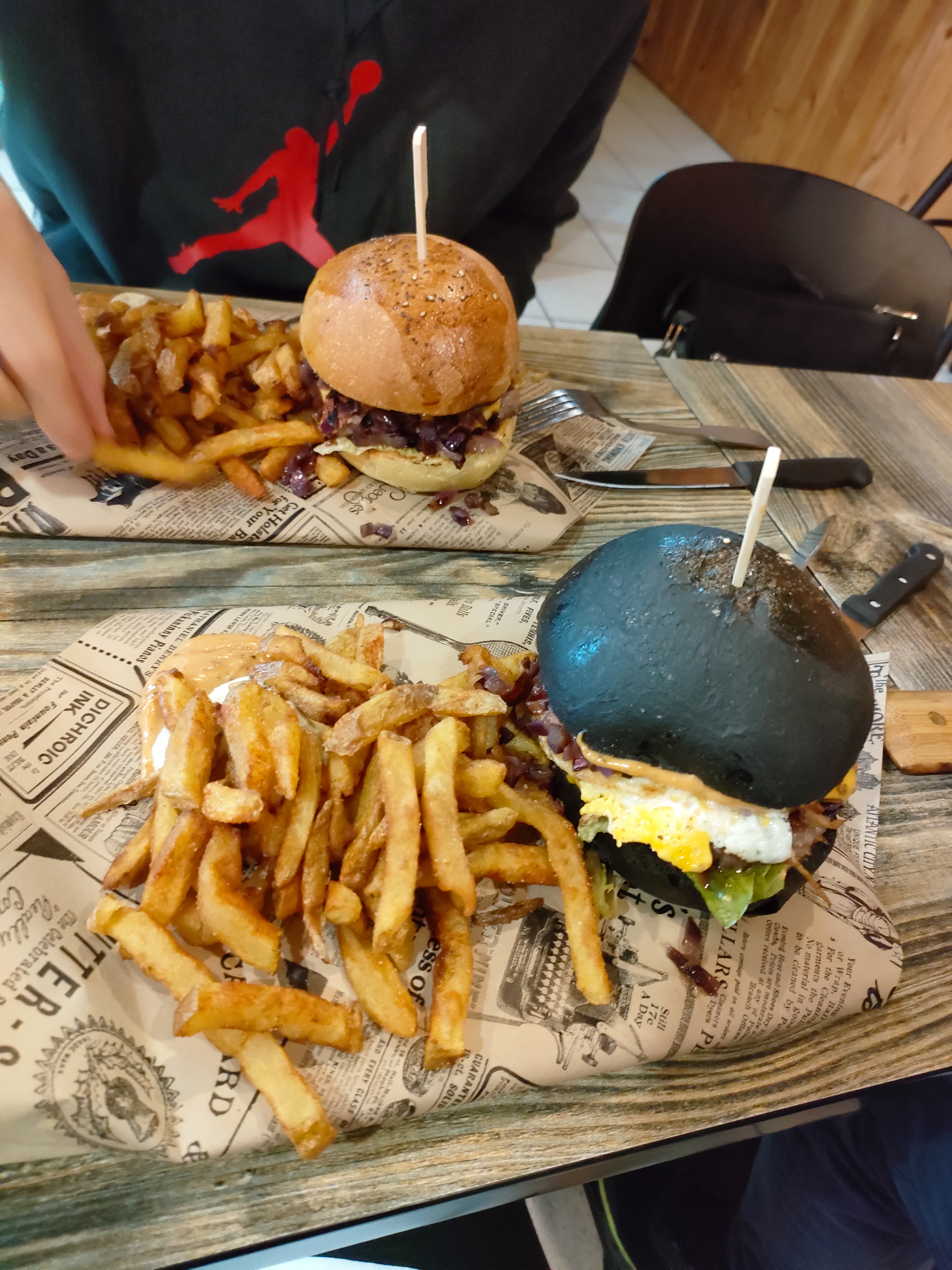 Burgers très savoureux ! Nous avons trouvé un peu salé et sucré Nous n’aurions pas dit non à un peu plus de frites ^^ Je recommande pour le goût