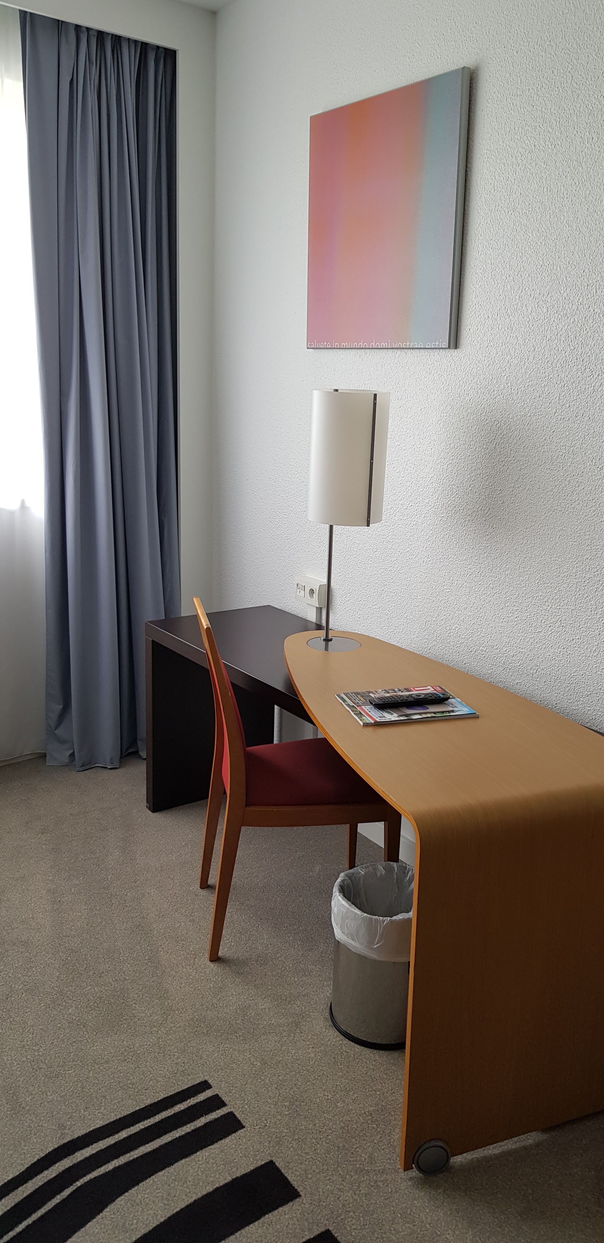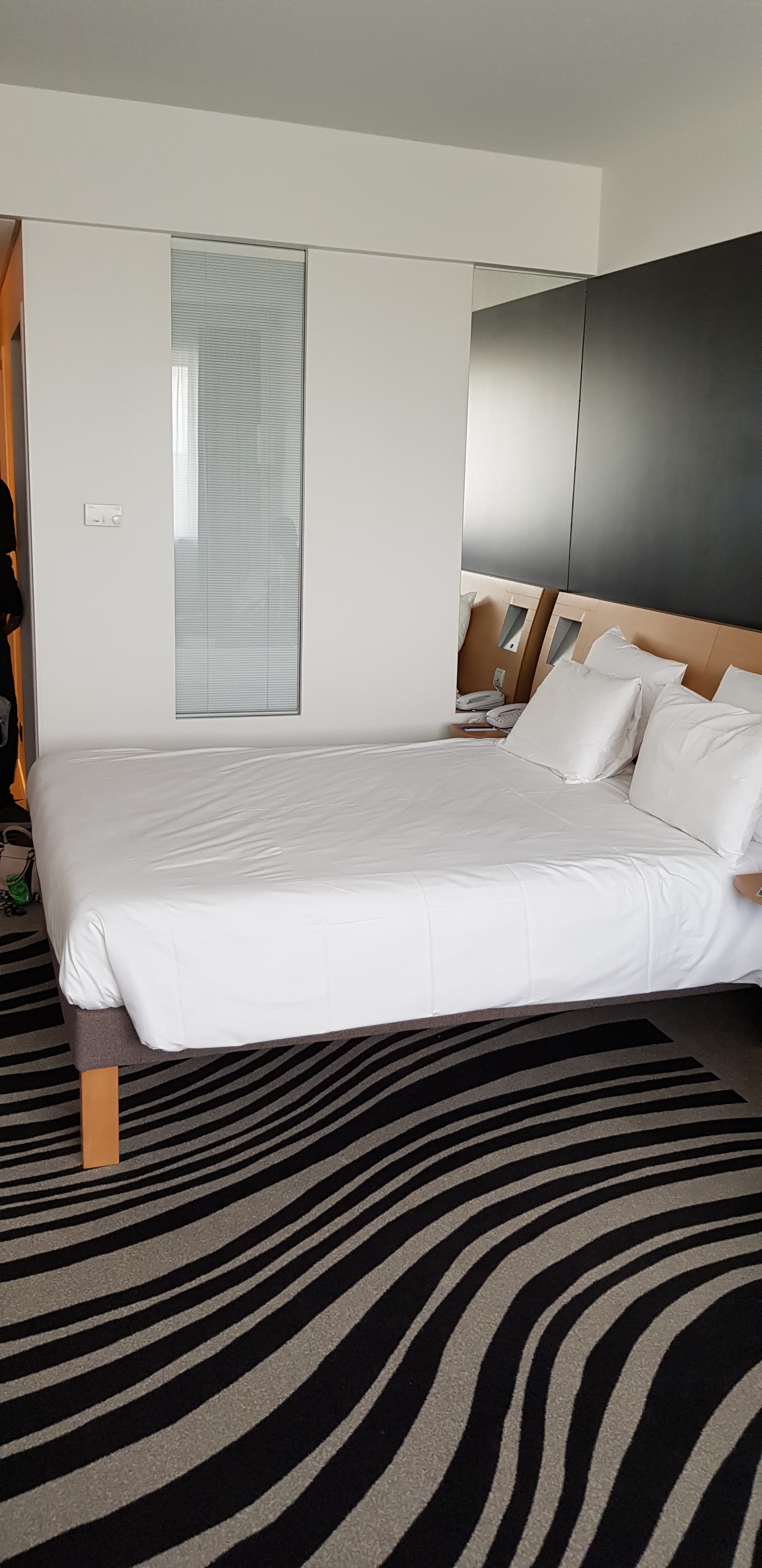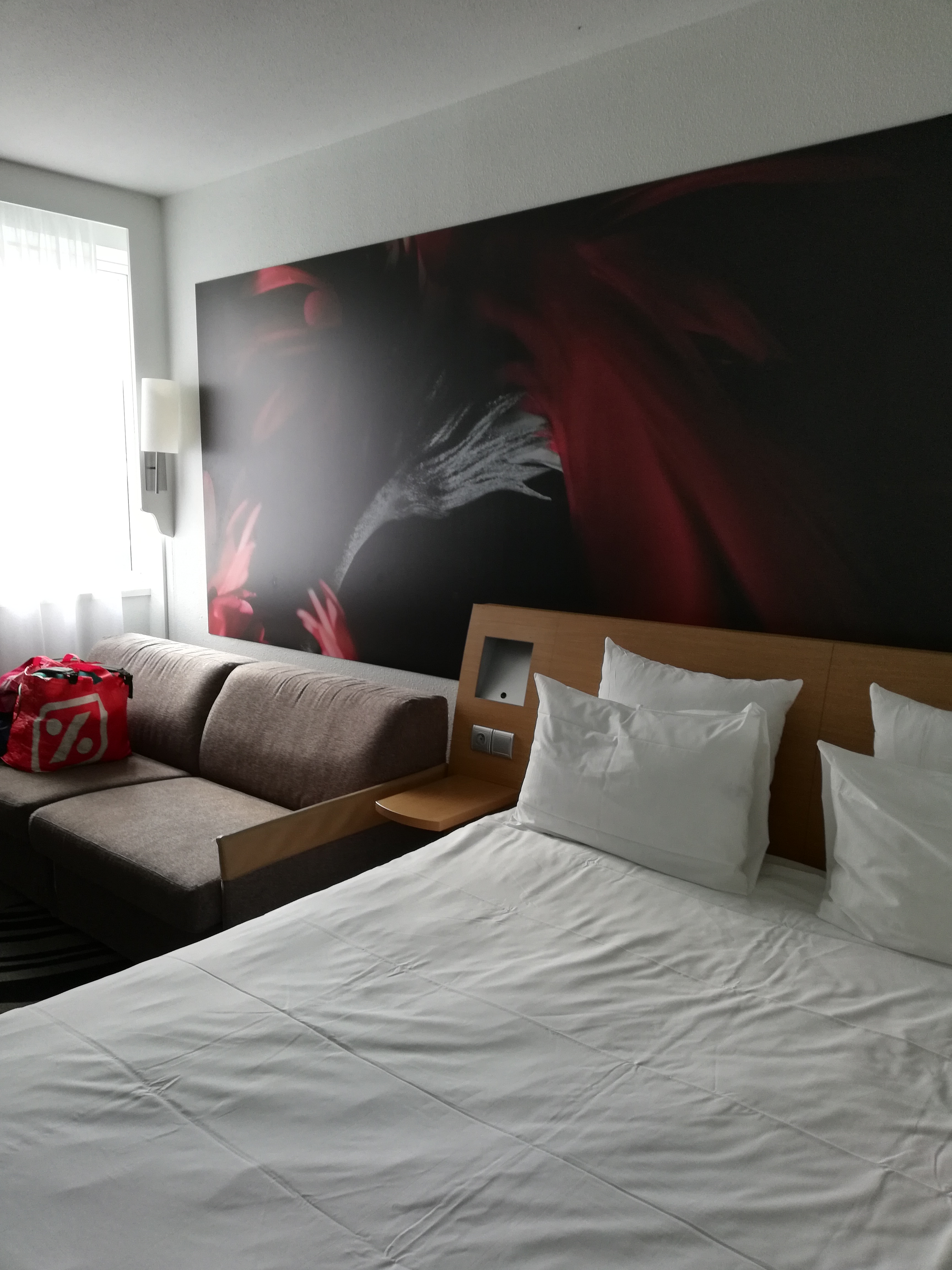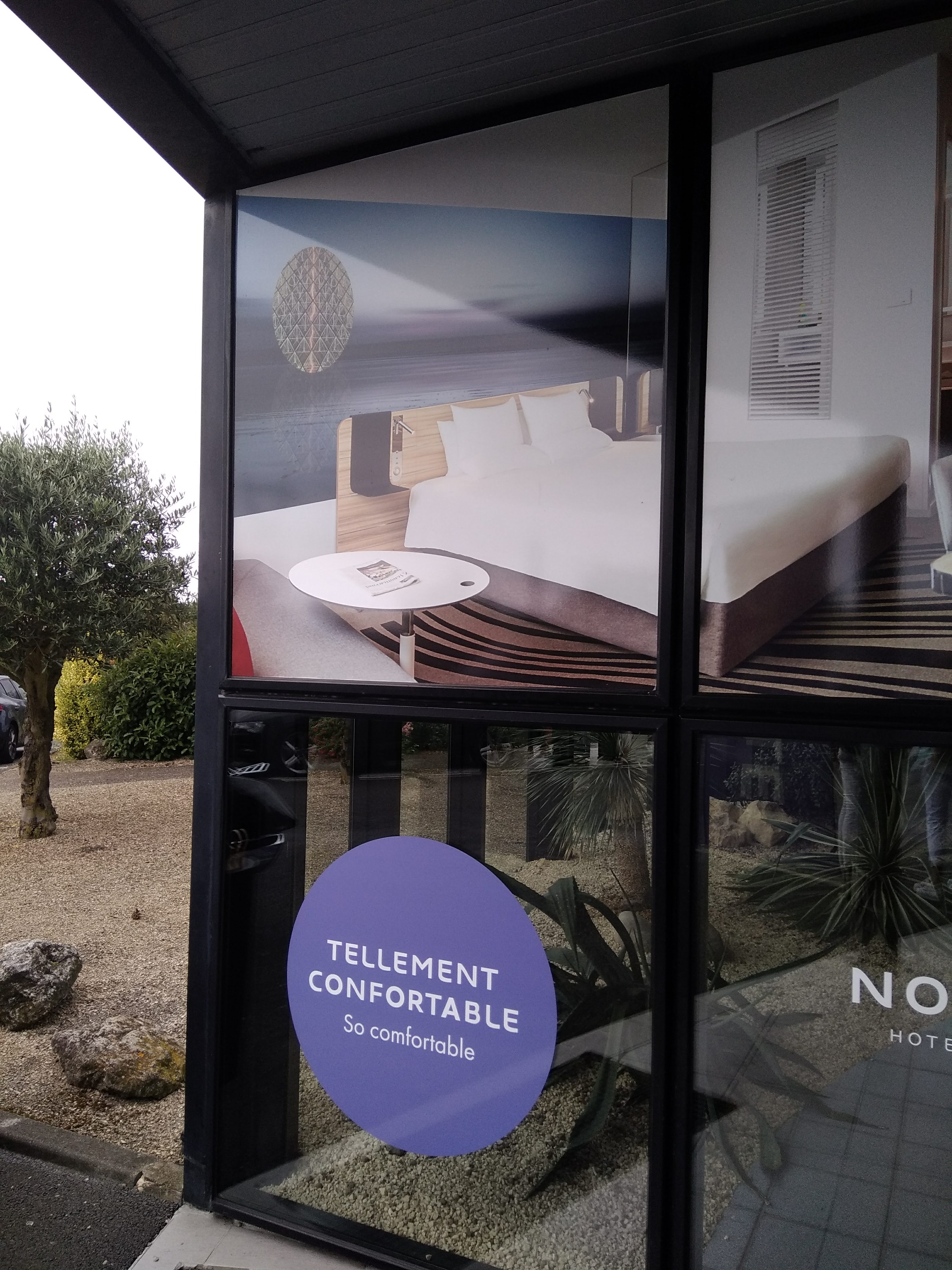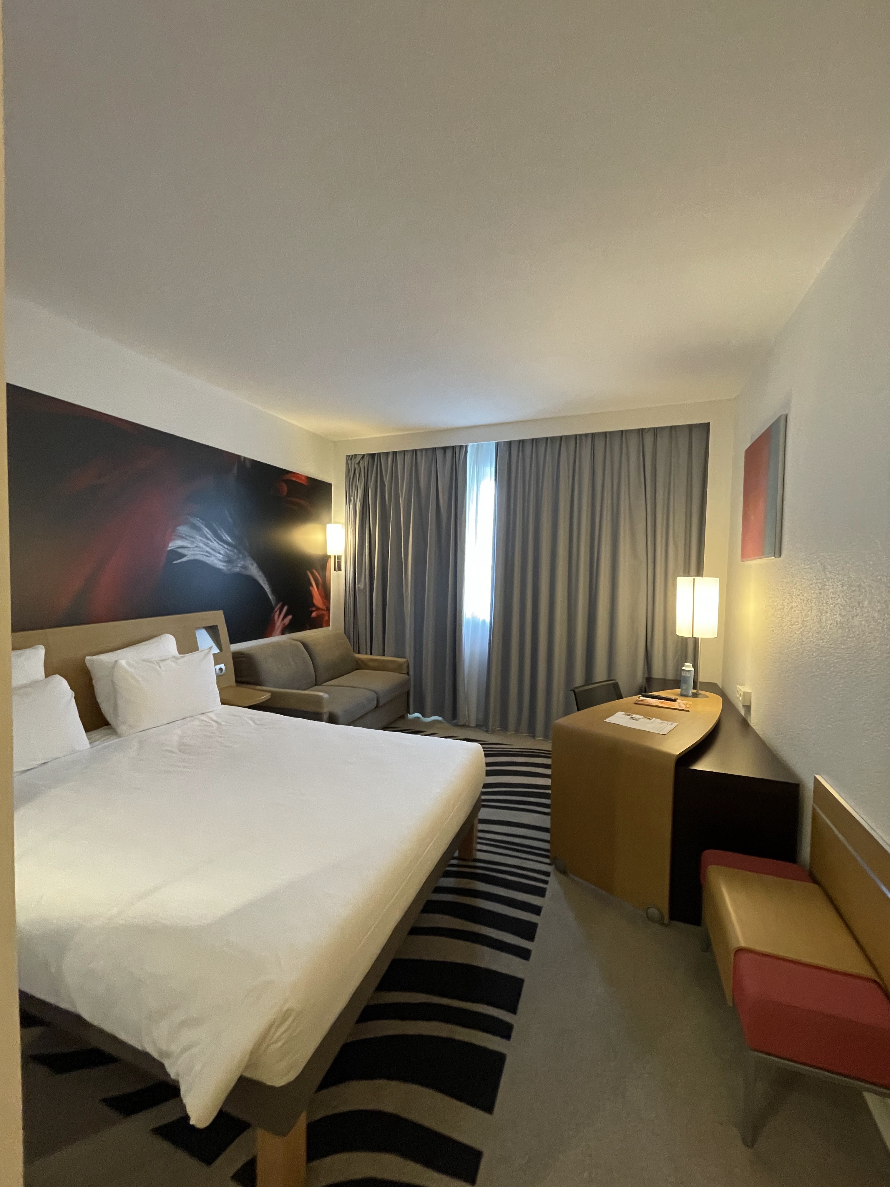 Alors quoi dire... Du bon ça c'est sur et aussi du un peu moins bon. Tout d'abord la chambre d'un beau volume hélas avec un lit collé vers le mur de la salle de bain ou il n'y a que peu de place pour y accéder. les fenêtres ? Alors deux doubles rideaux et deux rideaux à droite une fenêtre qui pour l'ouvrir il faut monter sur le canapé qui est placé devant, quand à l'autre et bien elle est inexistante c'est un mur ce qui je vous l'avoue fut une surprise, un jeu de rideaux inutiles ou il aurait mieux fallut mettre une grande toile ou tableau ce qui je pense aurait été plus agréable. L'équipement en générale est bon mais pour un quatre étoiles minimaliste dans la salle de bain qui n'a ni sèche cheveux ni porte serviette. Le restaurant est bon dans l'ensemble sauf et c'est une chose qui m'a plutôt choqué pour ce genre d'établissement un café gourmand avec comme gourmandises des gâteaux ou beignets industriels pas un seul fait maison, même un gâteau individuel emballé était dans mon assiette. Bref le novotel est dans l'ensemble un bon établissement qui je pense devrait revoir certaines petites choses car les apparences comme la décoration moderne très agréables ne suffit pas pour faire oublier que dans un établissement 4 étoiles il faut revoir certaines choses que j'ai vu dans certains établissements 3 étoiles. Sinon merci pour ce séjour.