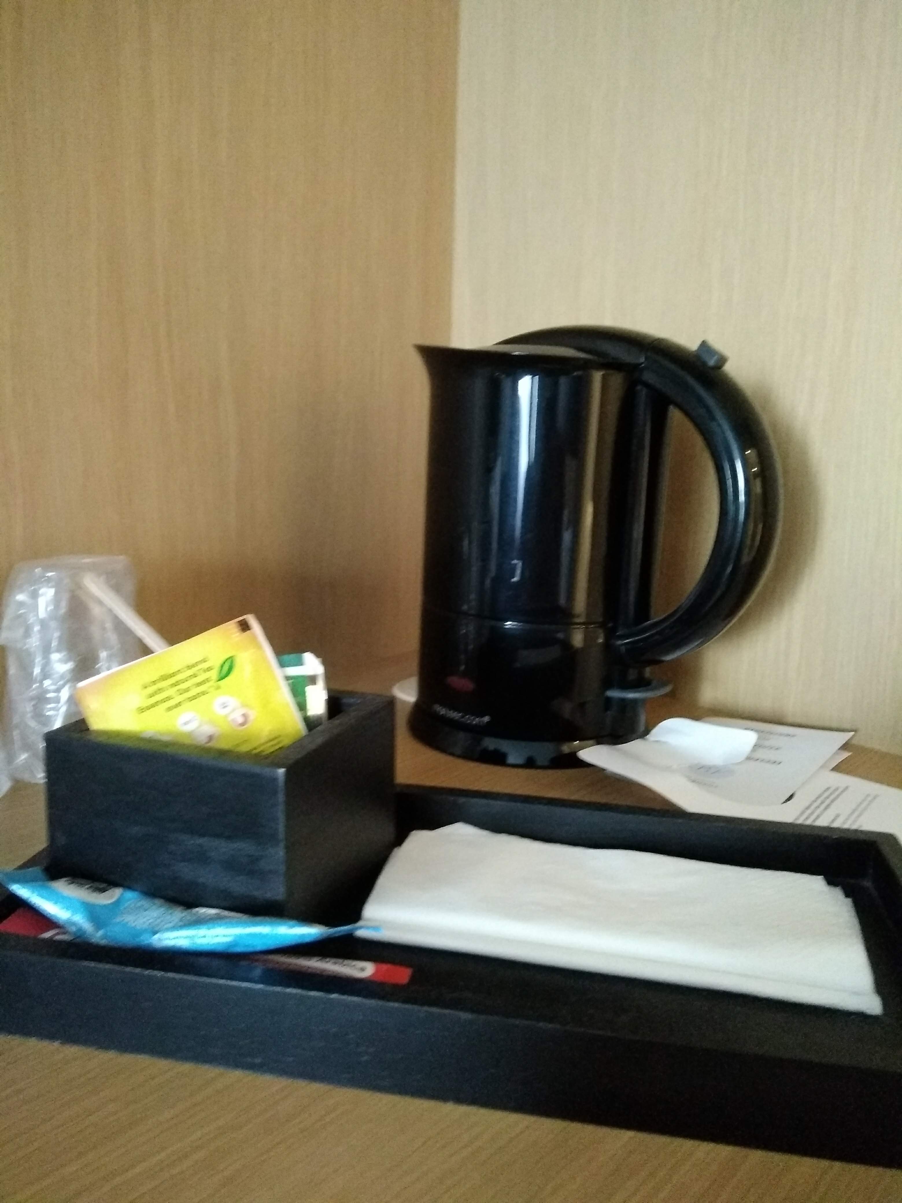 Chambre spacieuse mais le rideau amovible de la fenêtre de la salle de bain c'est pas top on voit à travers! Quelle idée! Petit déjeuner correct mais sans plus! Il n'y a pas de jus d’orange fraichement pressé ( pourtant dispo dans un Ibis ) Pan-cakes industriels, pas de gaufres/crêpes et surtout pas de Cacao en poudre, que des boissons chaudes au distributeur: le chocolat instantané était hyper sucré, beurk! Bref, comparable à un Ibis donc c'est pas au niveau d'un 4 étoiles! Cordialement
