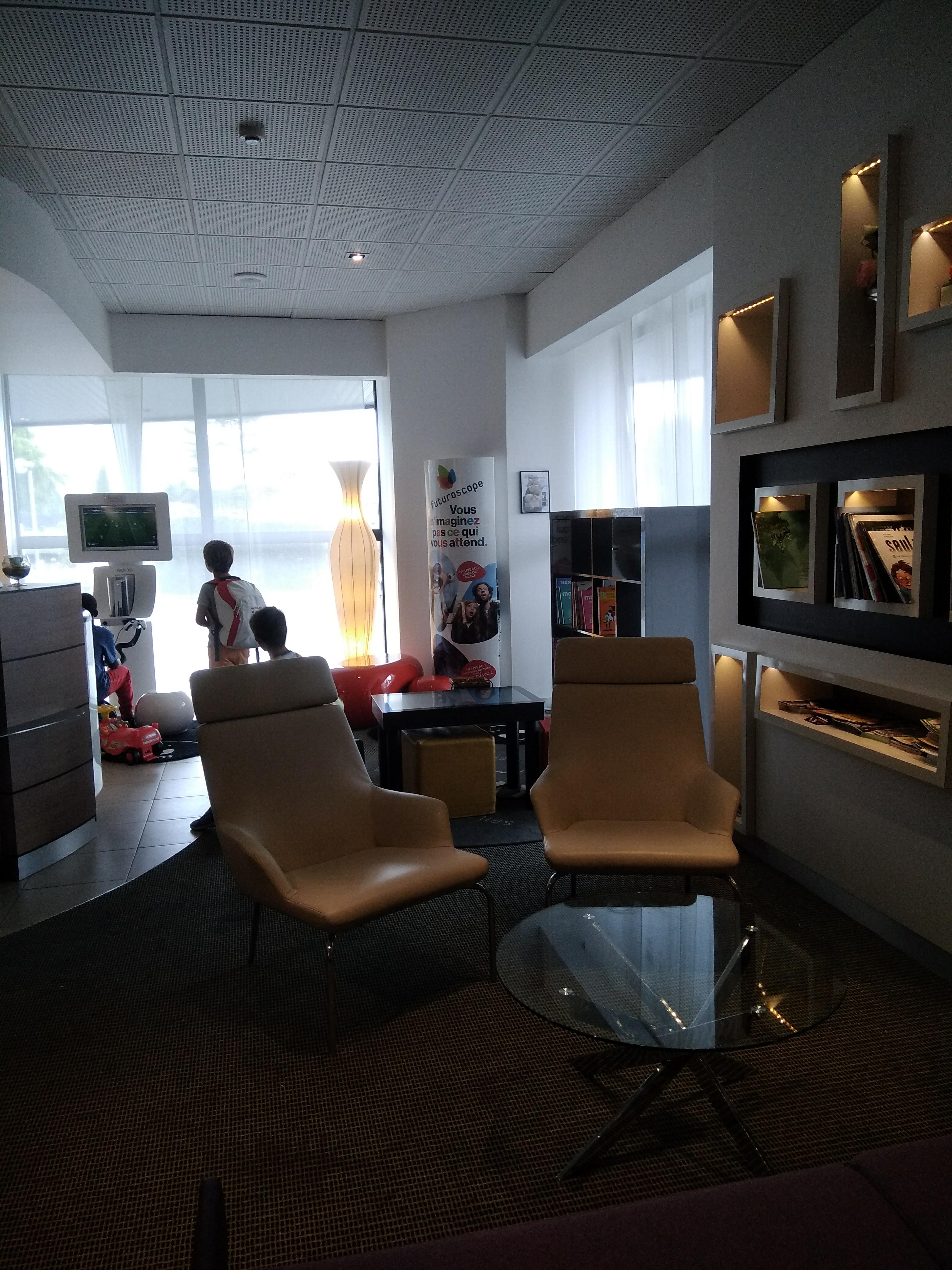 Petit séjour de 2 nuits dans cet hôtel afin de visiter le parc du futuroscope qui est à environ 500 mètres à pieds. Le personnel est accueillant, à l'écoute de nos éventuels besoins tout en restant discret. La chambre était d'un volume raisonnable pour 4 personnes dont 2 enfants. Le décor est très joliment moderne. Dommage qu'il n y ait pas de sèche-cheveux dans la salle d'eau.. Le petit frigo est très appréciable. Une bouilloire est à disposition avec quelques sachets de thé 😀. La literie: simplement une merveille! Aussi bien dormi qu'à la maison! En ce qui concerne le petit-déjeuner, j'ai apprécié que des tables soient toujours disponibles que l'on arrive à l'heure du rush ou 30 minutes avant la fin du buffet. Le choix est assez varié, ceci dit attention à la qualité des produits qui n'est pas toujours au rendez-vous (charcuterie). Les oeufs brouillés auraient également meilleur goût s'ils n'étaient pas préparés dans une machine. Il y a trop de glaçons dans le distributeur de jus d'orange, on finit par boire du jus diluée avec de l'eau..😖 Un espace enfants et une aire de jeux proposent différents divertissements:jeux électroniques, livres, une table basse tactile proposant des jeux ludiques (j'ai beaucoup aimé la table!😅) Parking surveillé et très beau décor.. voici les photos! En général on est tous ravis de notre séjour et surtout de la gentillesse du personnel! Un grand merci 😊