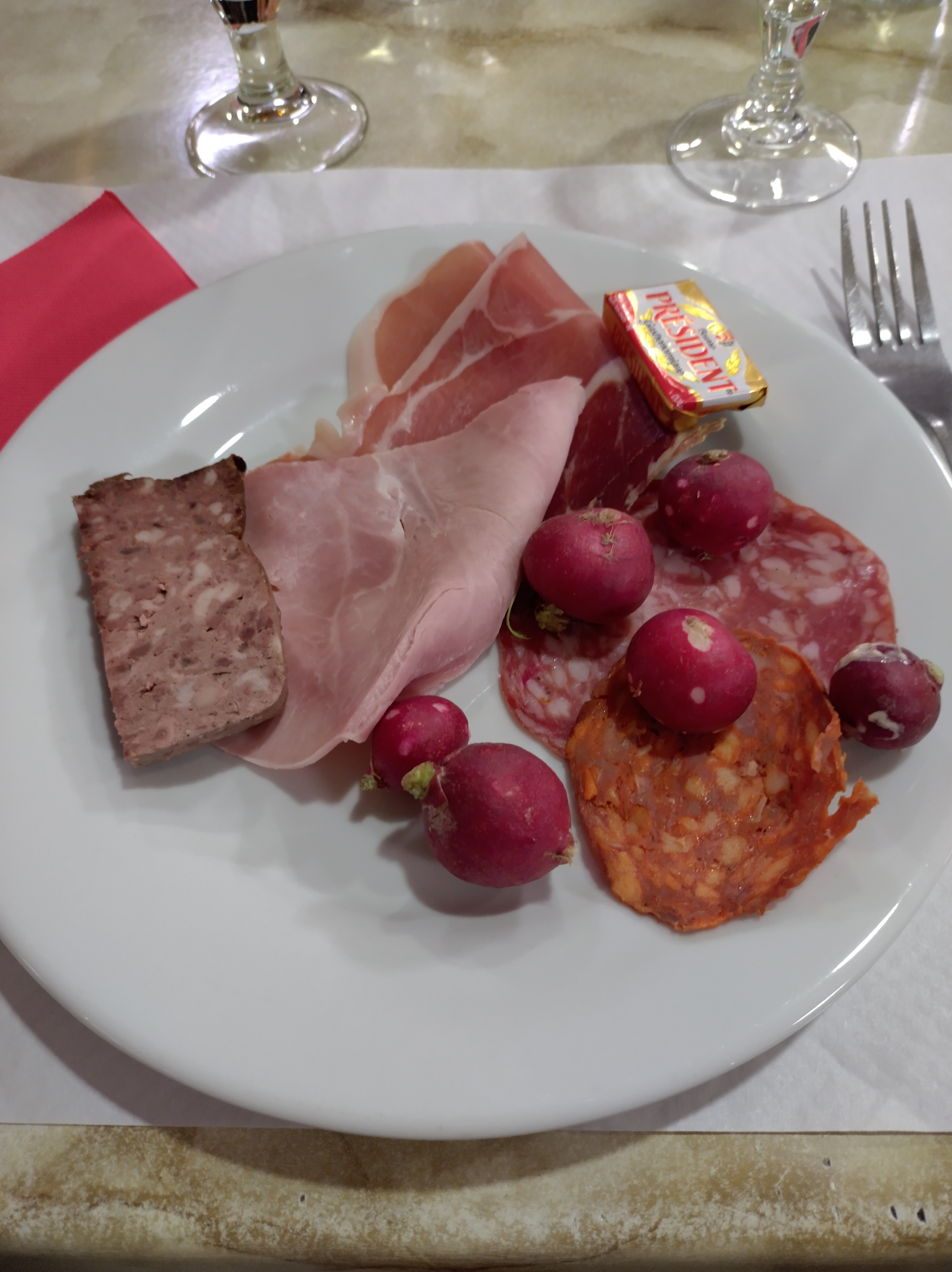 A 19h15 plus de charcuterie pas beaucoup d entrée mais tous de même 14€20 sans le café et 15€50 avec le café c pas donné