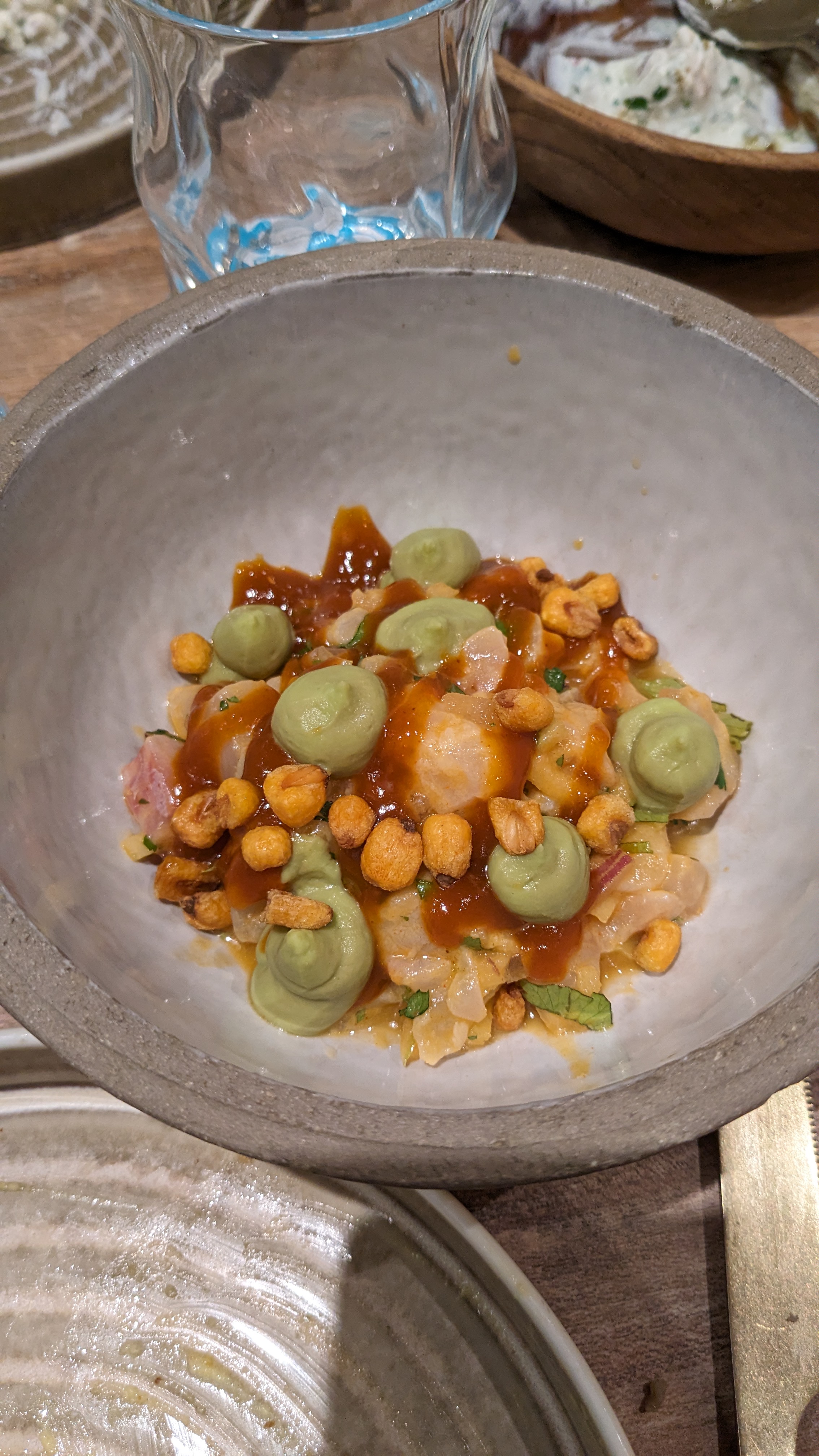 Très bonne découverte ! À deux le soir en terrasse, nous avons opté pour une burrata, les empanadas et le ceviche du moment ; le tout à partager bien sûr (avec une boisson, nous en avons eu pour 44€). Tout semble très frais, épicé et assaisonné avec des herbes aromatiques pile comme il faut, très chouette. Et l'équipe vraiment sympa :)