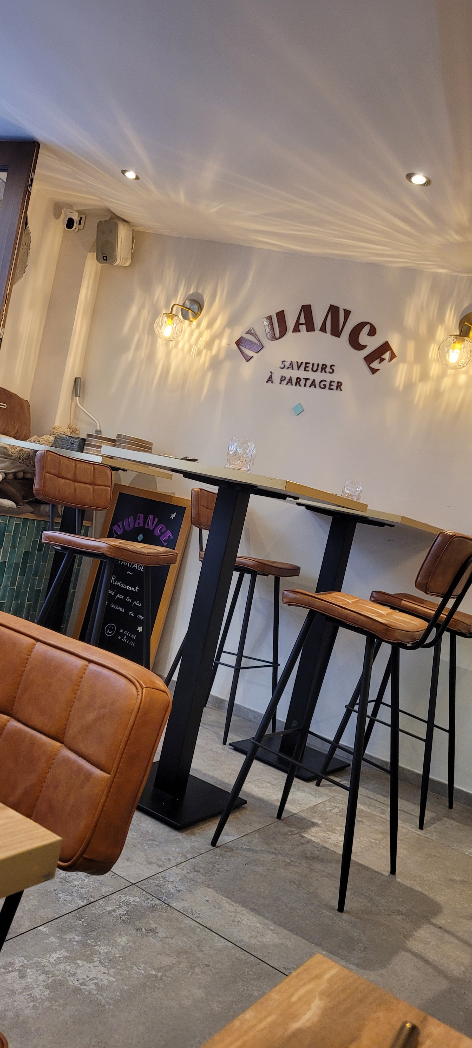 AUX AMOUREUX DE LA BONNE CUISINE … Nuance c’est un restaurant où les plats ont été réfléchis en terme de saveurs, de couleurs mais également en terme de textures. Le menu découverte à partager, d’apparence raisonnable est enfaite très généreux. Il est presque difficile de finir. On retiendra: - la qualité des produits, de l’entrée au dessert. En passant par le jambon, le poisson et les fruits. - Le croquant présent à chaque plat sous forme de graines ou de fines herbes. Un croquant qui vient se marier parfaitement avec la douceur des purées. - L’originalité des plats, avec des saveurs inattendues comme le lait de chèvre ou la sauce à l’ail noir. - Des couleurs explosives dans l’assiette, à déguster dans un cadre moderne et chaleureux. - La plaisirs de partager et d’échanger sur toutes ses saveurs ! - et le plus important pour la fin, un service irréprochable, chaleureux et pétillant. Merci à toutes l’équipe que ce soit en salle où en cuisine. Nous avons hâte de revenir faire découvrir cette pépite à nos amis !