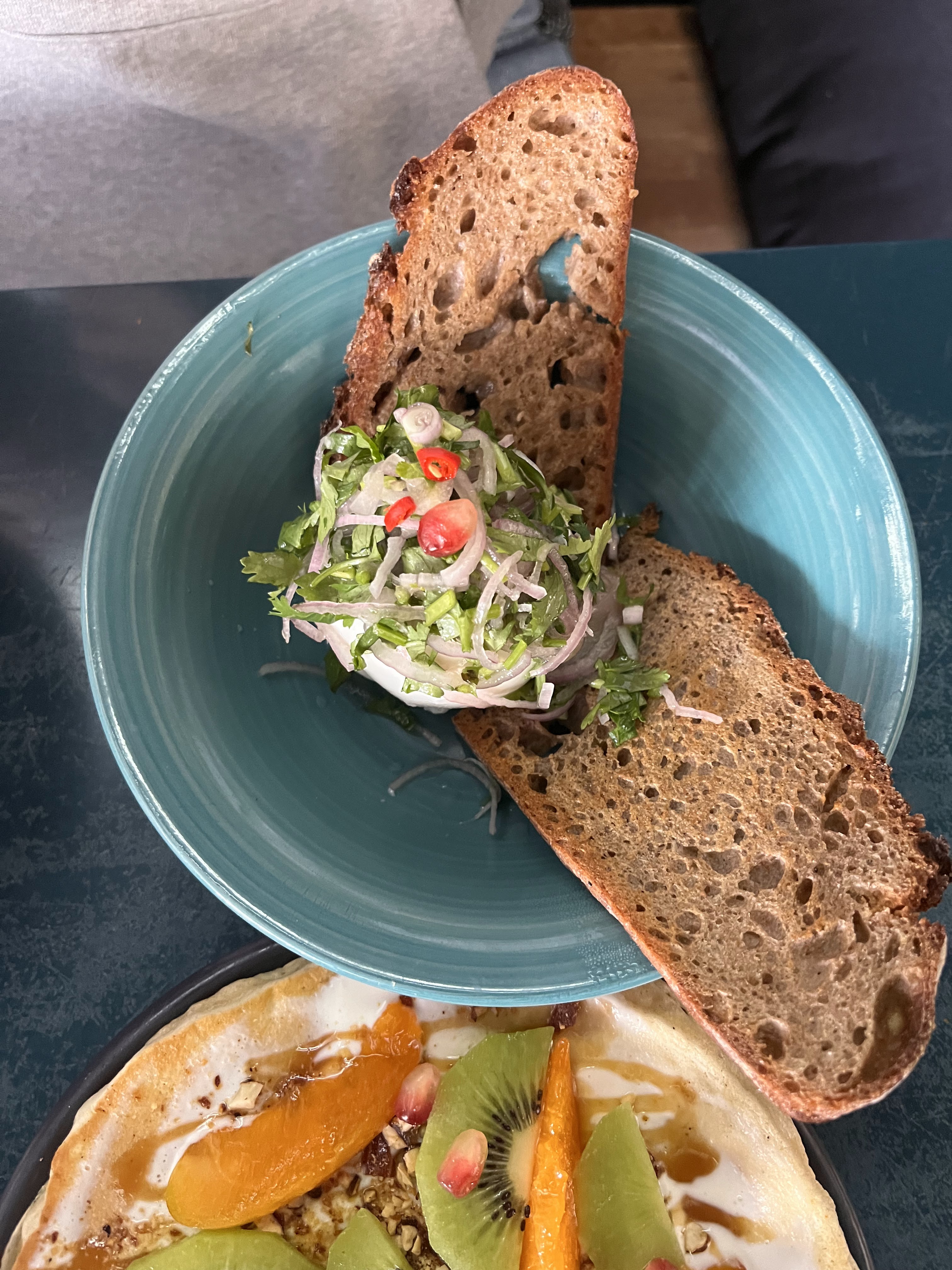 Brunch incroyable et incroyable. Je recommande particulièrement de prendre le granola ! Note au personnel : soyez plus attentif aux clients qui entrent dans le café. Lors de notre visite samedi dernier (2 avril), après environ 30 minutes, j'ai remarqué qu'il y avait une personne juste à côté de nous qui avait l'air très malade, avec un foulard en laine autour du cou, le nez rouge et toussant. Comme nous avions déjà reçu notre commande sur la table, il était trop tard pour partir, même si la situation était désagréable, alors j'ai demandé à la serveuse si nous pouvions nous asseoir un peu plus loin. Mais cela n’a évidemment pas été possible car l’endroit était bondé. Néanmoins, même si je l'avais signalé, la serveuse n'a rien fait et la personne malade a été autorisée à rester assise là, à discuter et à tousser, pendant encore 30 minutes. Par coïncidence, mon conjoint et moi avons contracté le Covid moins d'une semaine plus tard.