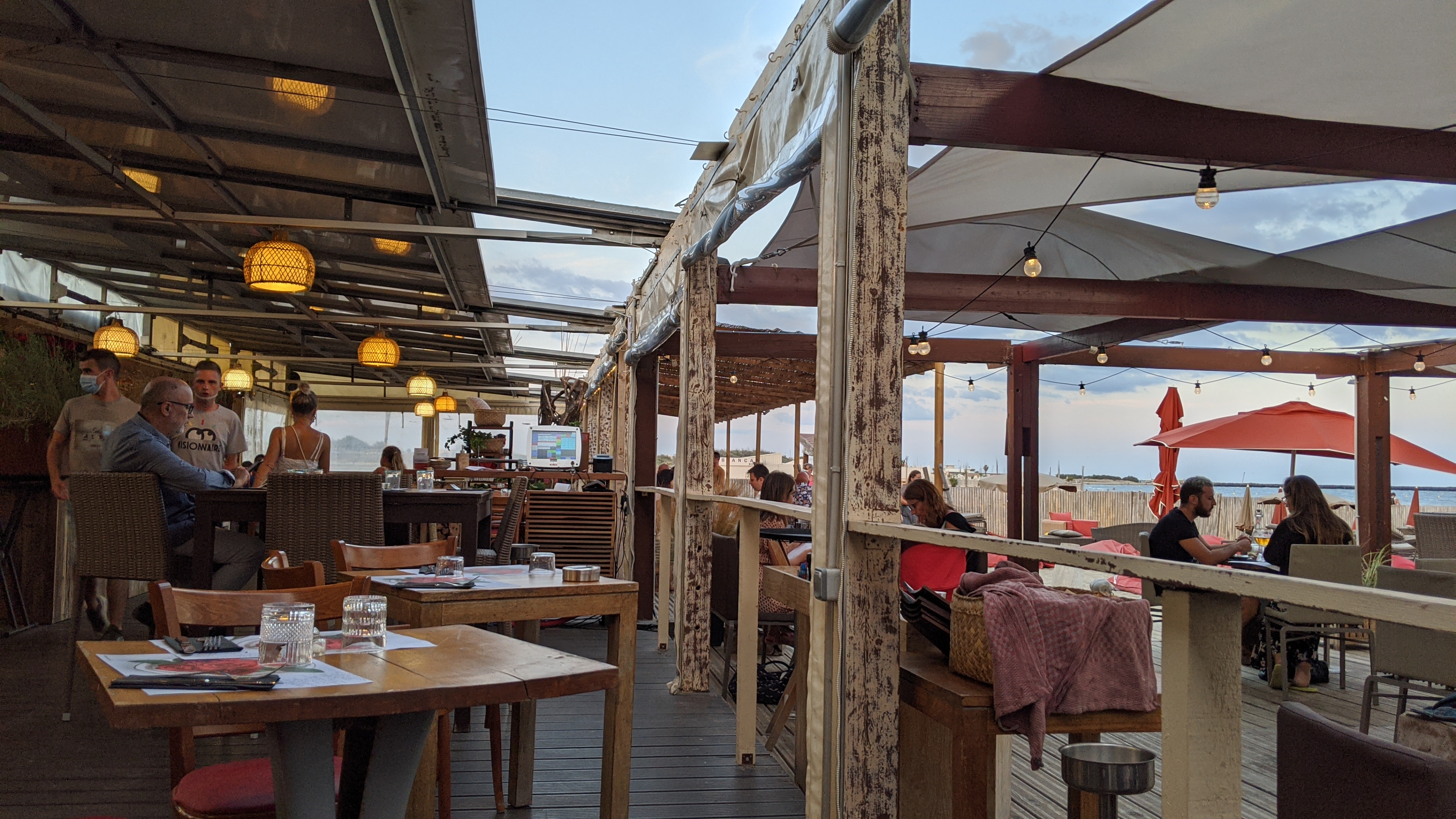 Cadre sympa, même si on trouve bien mieux au Cap. En revanche, accueil froid. Un serveur est venu fermer notre parasol alors qu'on était encore installés, le service se fait au bar lorsqu'on veut juste boire un verre sur la plage. Pas de tapas avant 20 heures. Cocktails insipides.