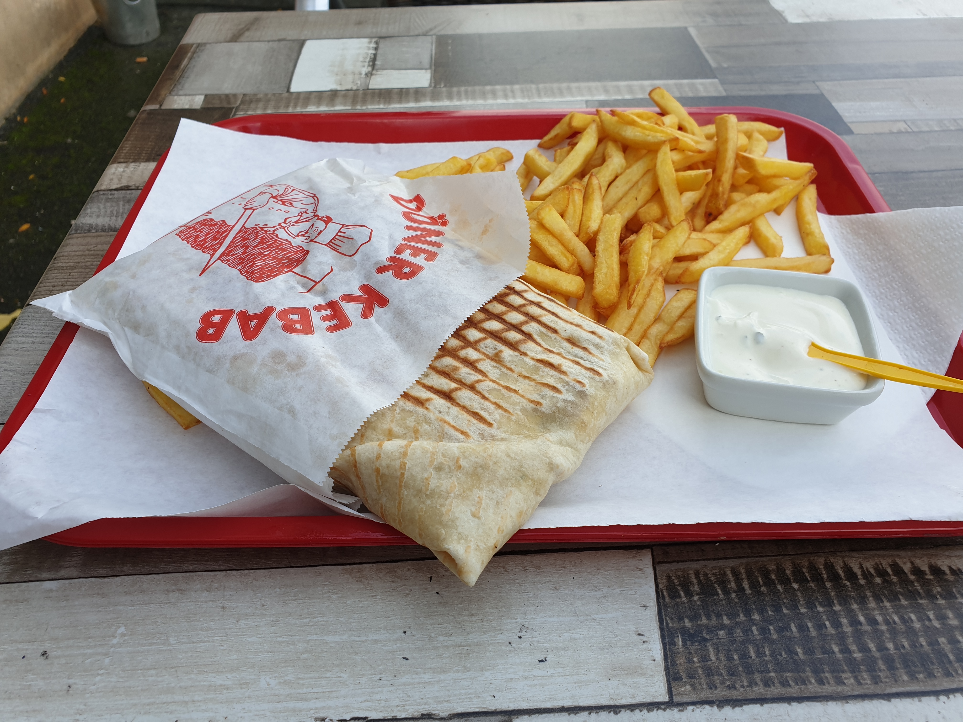 De passage par la ville, on est et très bien mangé. Trois tacos et un kebab. Pas cher du tout. De la viande goûteuse et bien préparée. Frites cuites comme il faut. Bonne qualité. Lisez: Eva, journées feuilles, chemins cachés sur: angelogeorgedecripte.blog