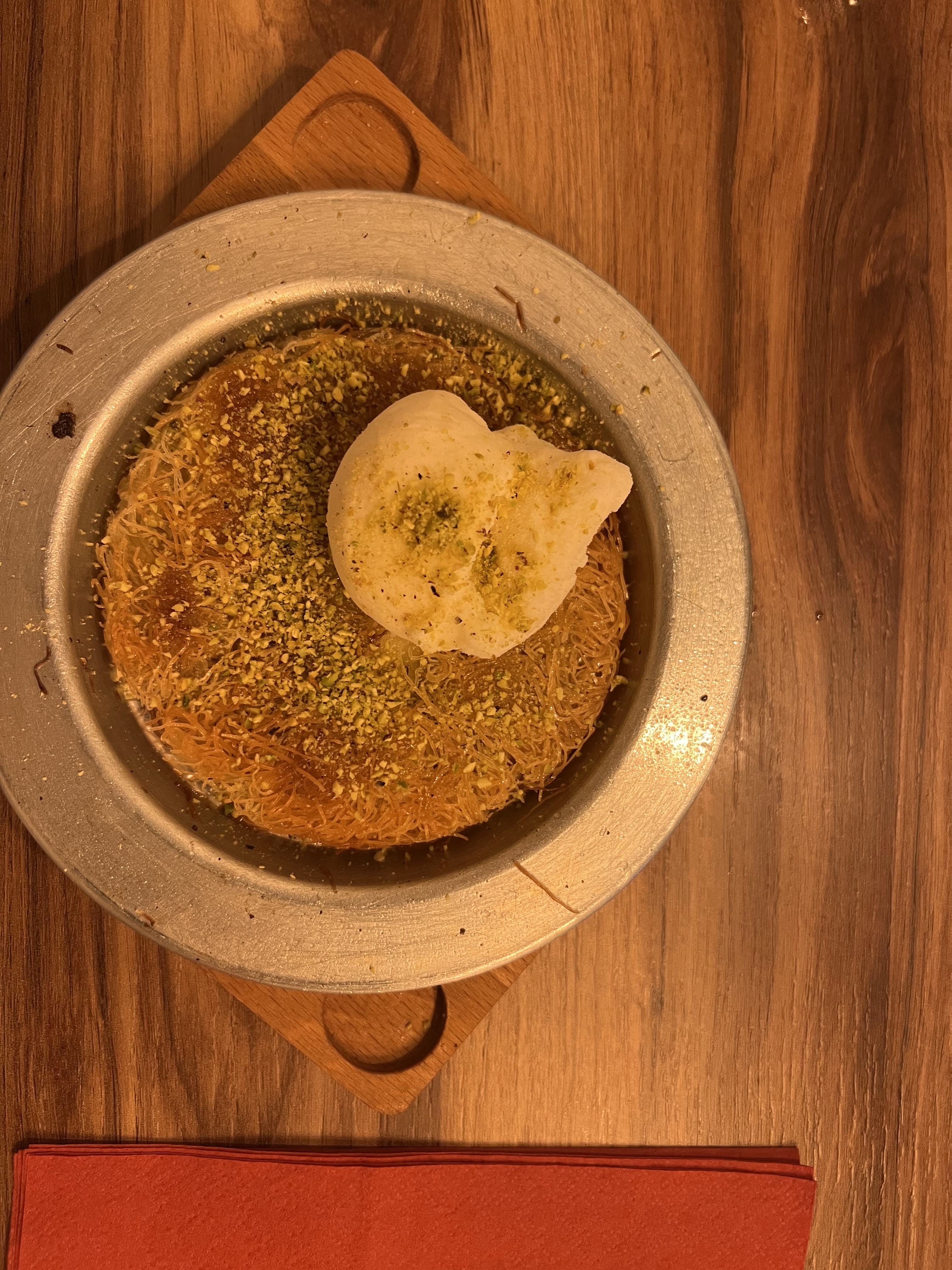 Je viens d aller dîner dans ce restaurant. C'est le top du top. De l entrée au dessert c'est un délice. Le cadre, la propreté, l accueil, toujours au petit soin pour les clients, le sourire est toujours présent du début à la fin. Je vous recommande cet endroit ainsi que le kunefe en dessert qui est fait à la demande. Merci encore pour votre accueil. À bientôt