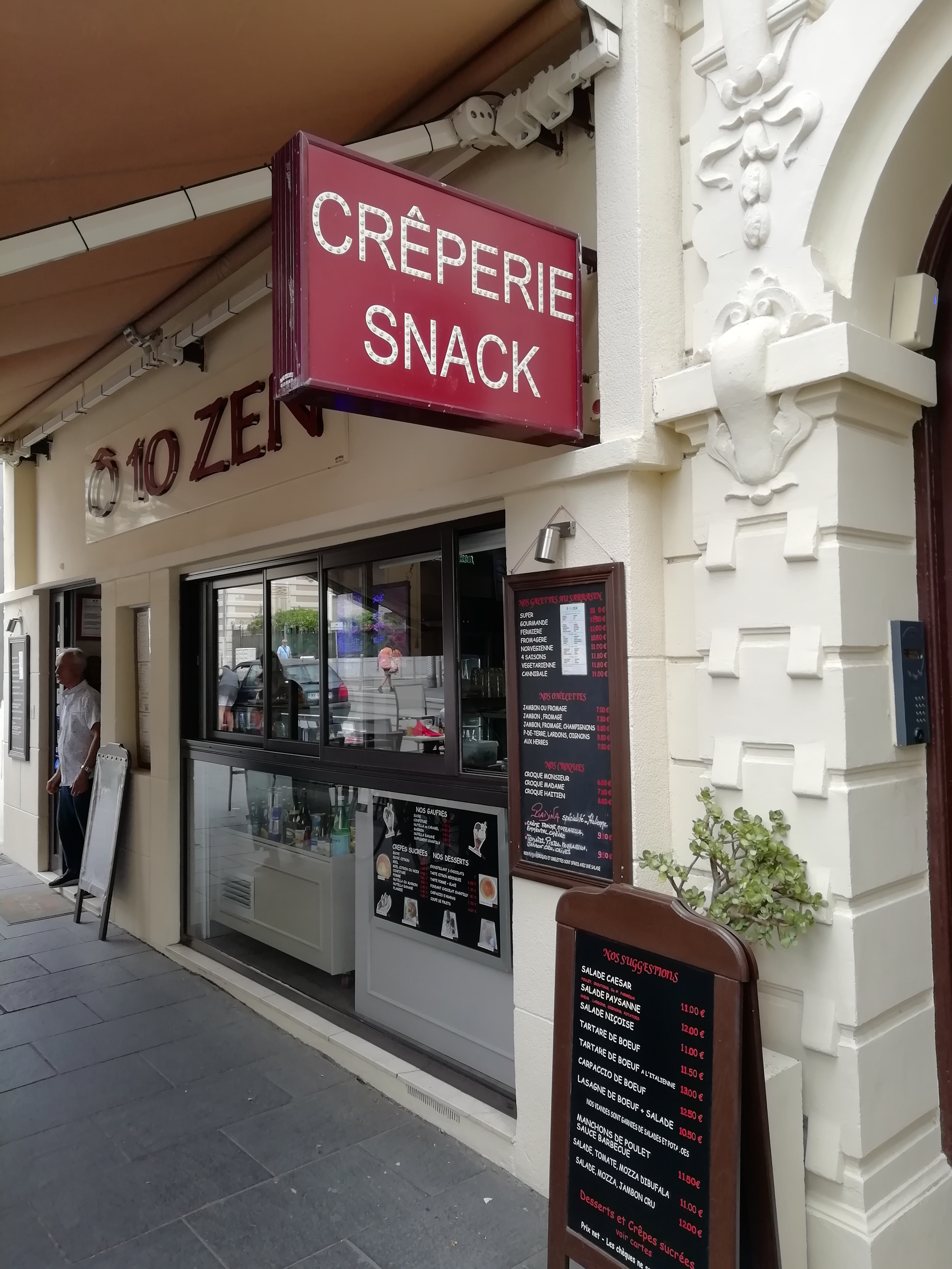 Snack-bar très agréable avec une terrasse. Le patron est très gentil. La carte est plutôt variée. Un très bon rapport qualité prix. Les salades sont bien présentées et bonnes. La salade de fruits maison. Endroit que je recommande. Les toilettes sont très propres. Près de chez moi j'y retournerai volontiers pour y manger une crêpe.