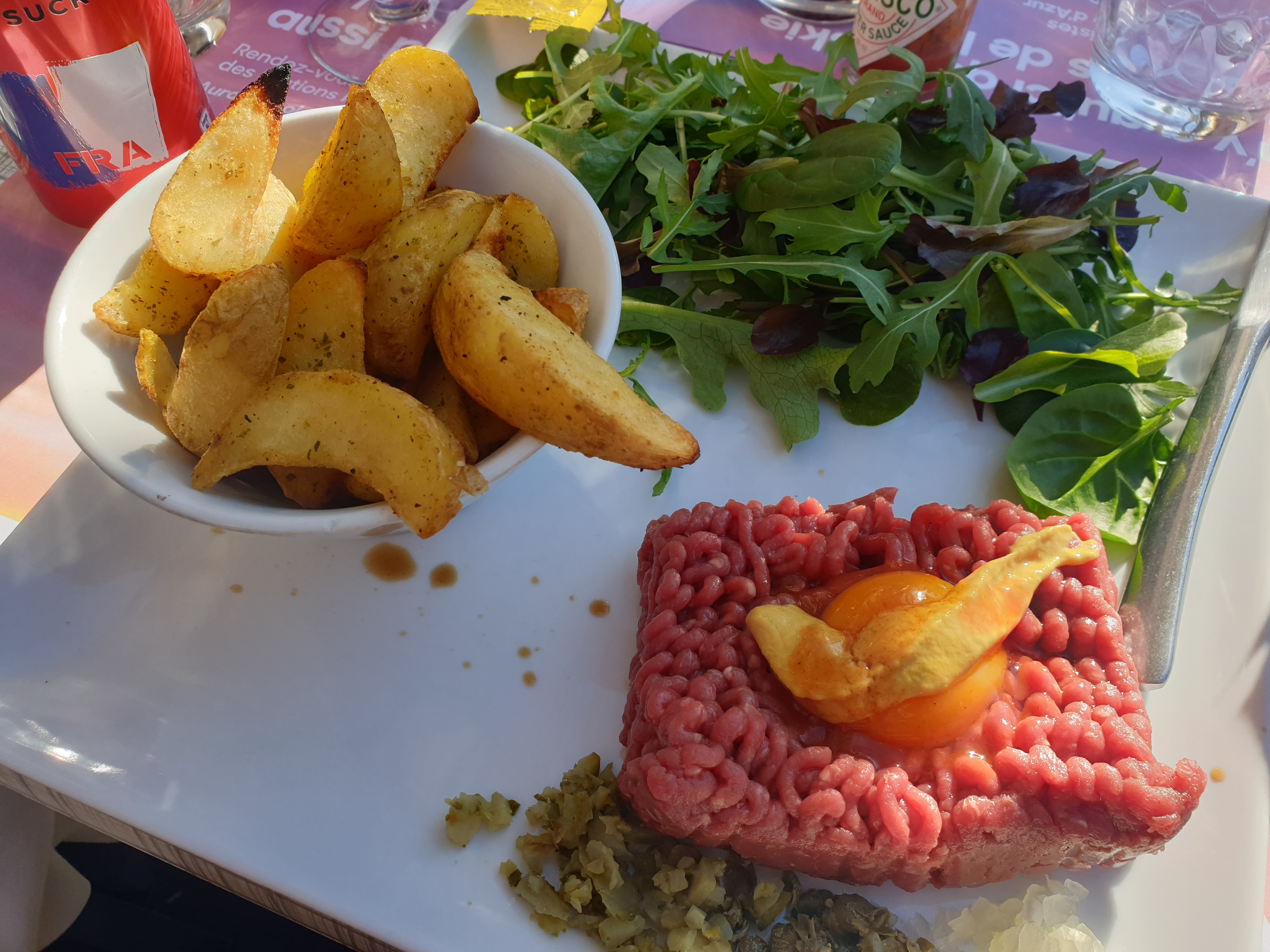 J'ai commandé une omelette aux pommes de terre, baveuse. Pommes de terre servies à part et omelette beaucoup trop cuite et sûrement au micro-ondes. Bien déçue, je ne recommande pas en tous les cas pour l'omelette