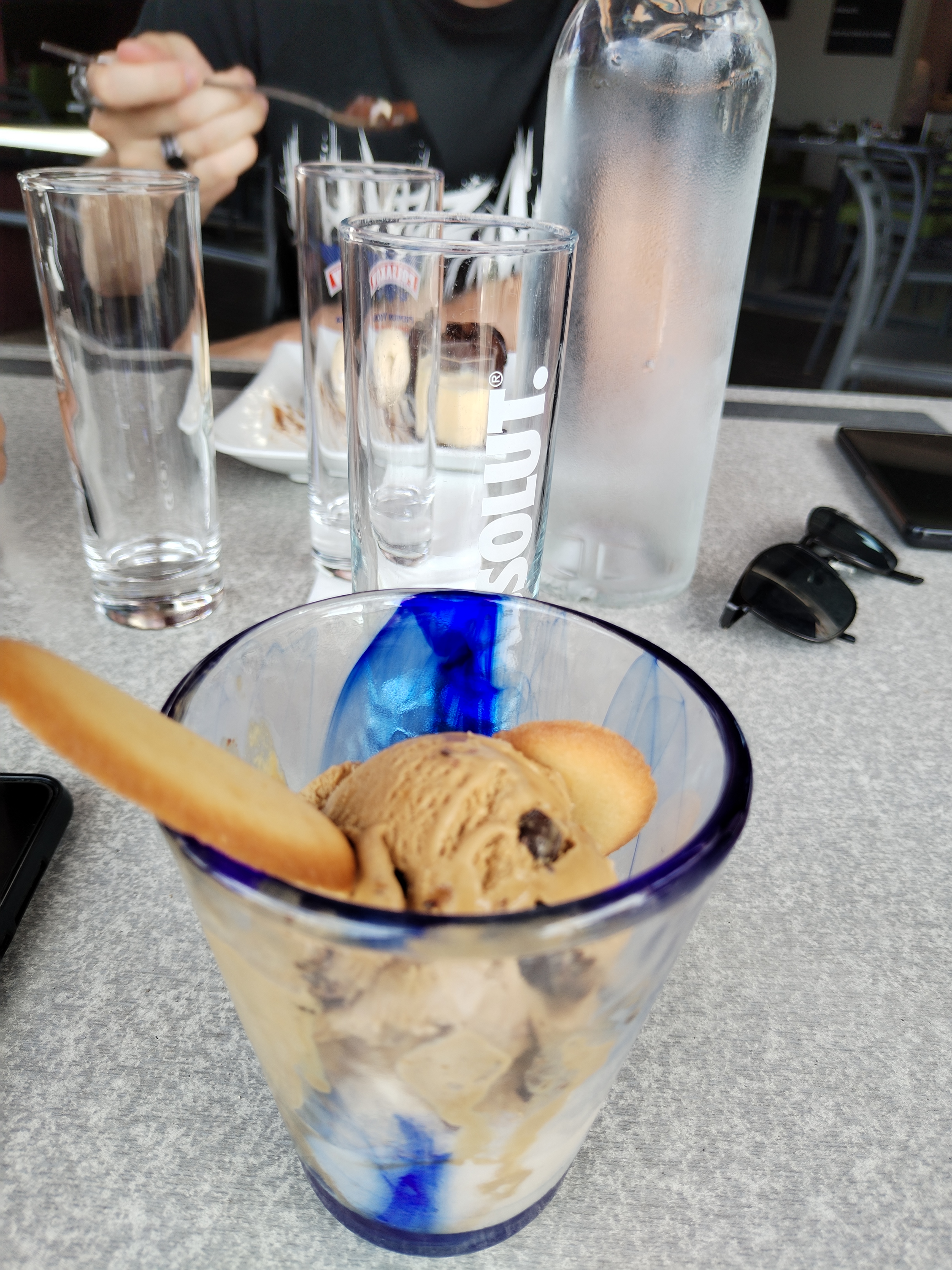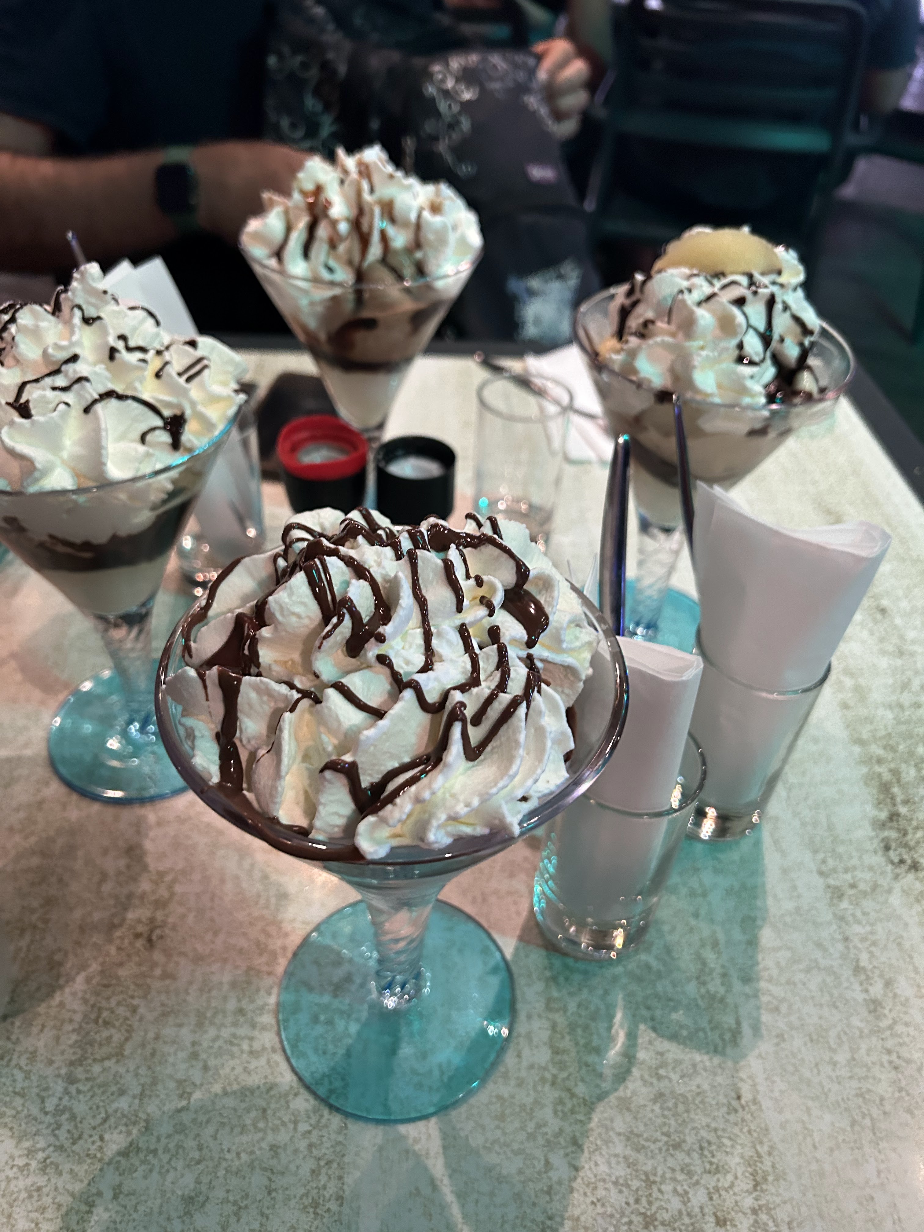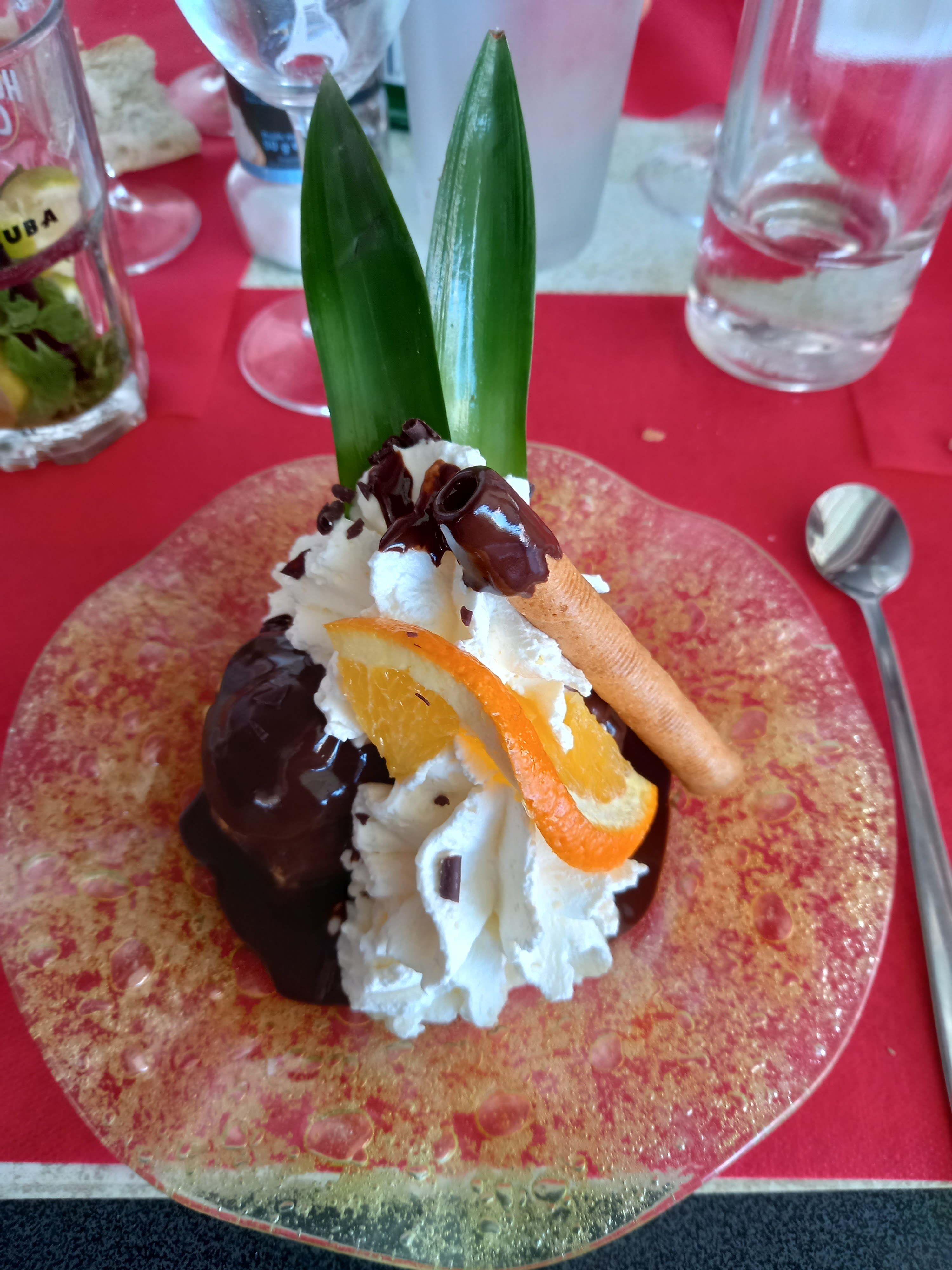 Un petit arrêt pour une glace Trop sucré ! Mais vraiment beaucoup beaucoup de sucre Chantilly chaude Bien dommage vu le lieu