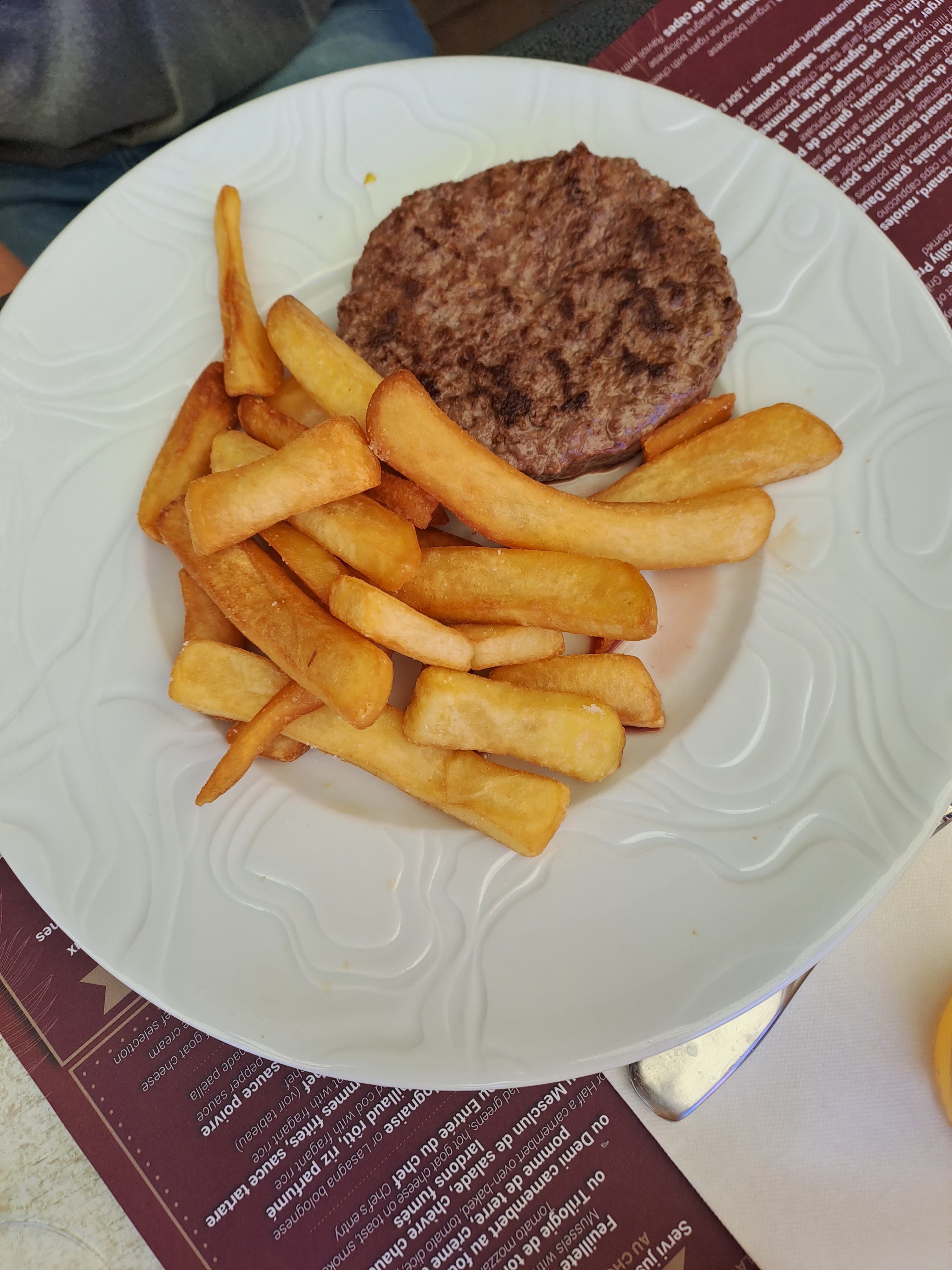 J'ai pris un menu, et je me suis régalée du début a la fin. Le caparccio avait du gout, la sèches bien cuite même si le pot aïoli avait commencé à crouter. En dessert une ile flottante également bonne. La serveuse a été très sympathique et rapide. Les enfants aussi ont aimé leurs repas mais surtout l'emplacement puisqu'ils pouvaient rapidement faire un tour de manège entre les services.