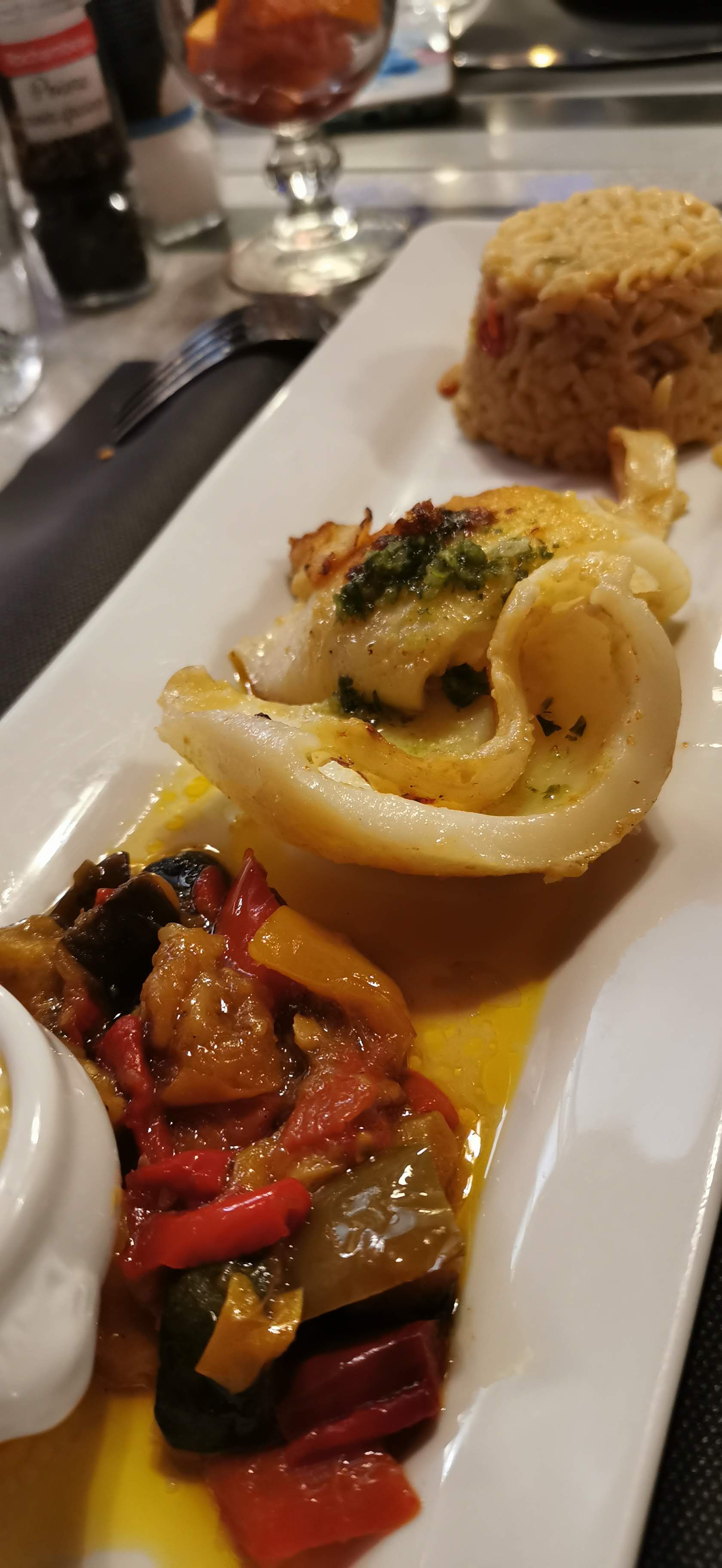Le repas était excellent, je recommande la salade de poulpe, la seiche et la soupe de poisson. Il manque juste un peu de convivialité dans l'accueil, d'attention au client pour que ce soit parfait ! Néanmoins, je recommande
