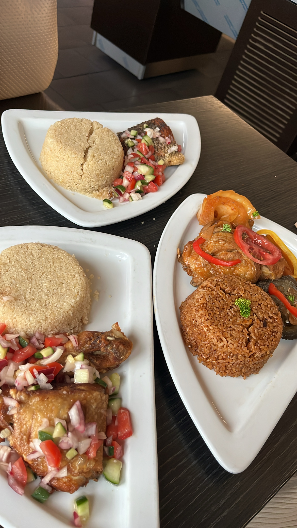 Déception totale déjà il y a les réseaux sociaux et la réalité. Le restaurant est pas jolie vitre cassé quasiment pas décoration africaine même sur les tables genre mettre des tissus africains.Ensuite la nourriture franchement pas top que de la friture, le mafé déception manque d'arachide pas de piment,les desserts congelé. Bref franchement déçu et chère pour rien au moins offrir un verre de bissap de gingembre