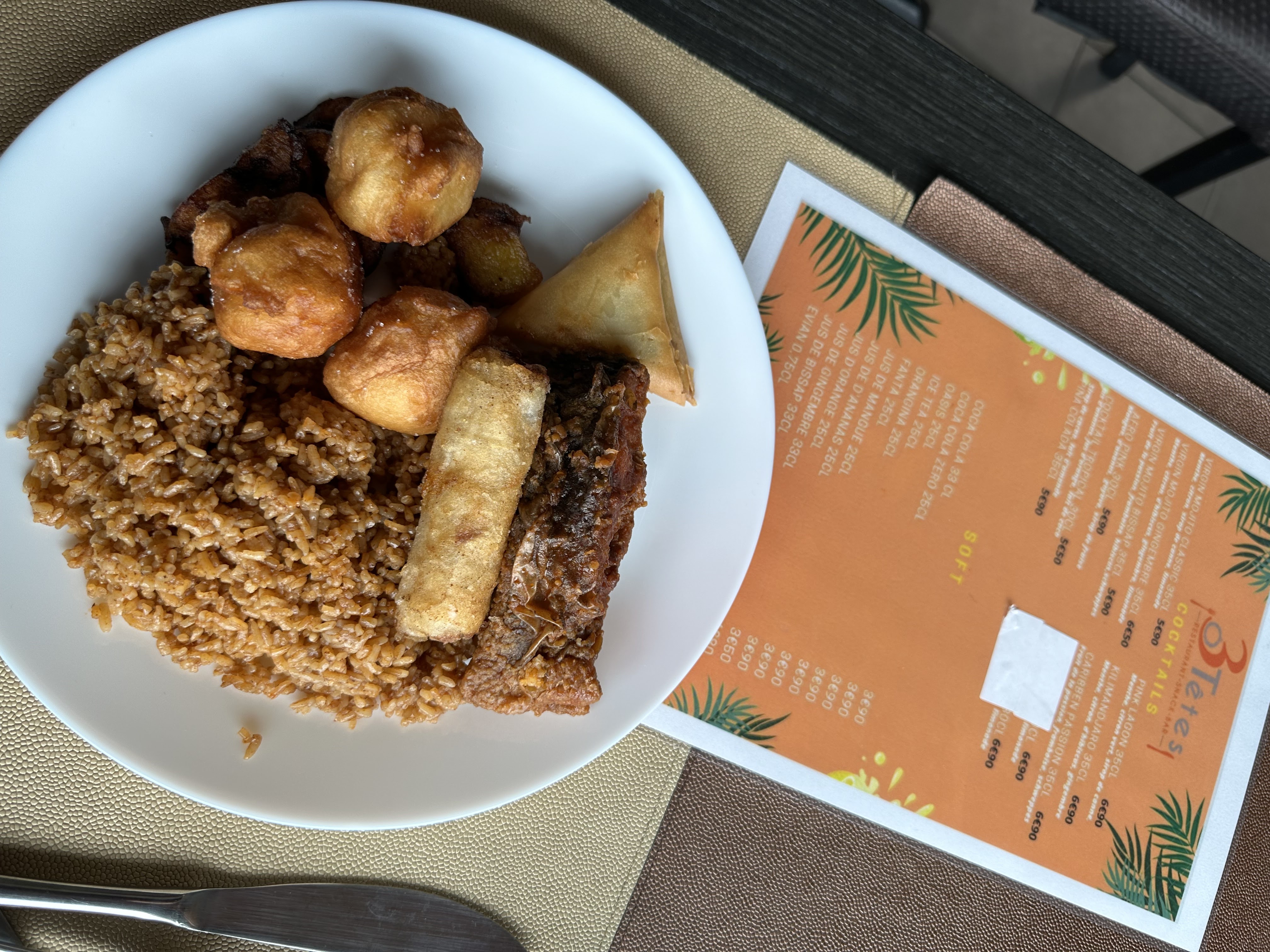 Le restaurant O 3 Têtes propose un buffet africain authentique avec un menu riche et diversifié, mettant en avant des spécialités de l’Afrique de l’Ouest qui éveilleront vos papilles. Du thiep poisson au maffe, du yassa poulet au saka-saka crevette, il y en a pour tous les goûts, on s'est régalés !