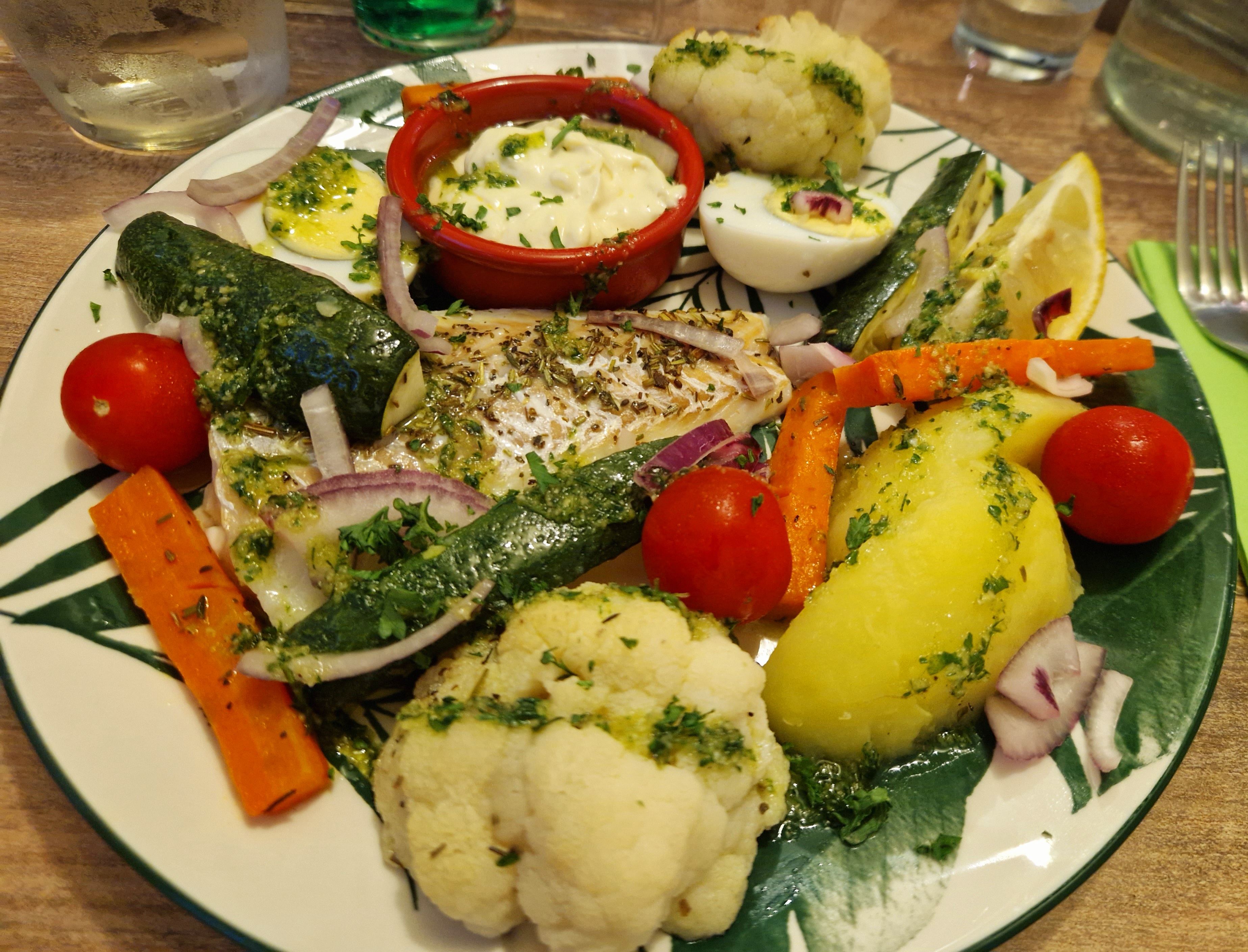 Petit repas ce soir entre amis , très sympa ! Jamais déçue! Moules marinières validées et pour moi un aïoli de poisson succulent ! Poisson cuit comme il faut et surtout des légumes vapeurs savoureux ! Juste des petites herbes et épices qui relèvent le goût, bravo ! Et bien sûr nous avons terminé par le café gourmand avec des desserts maison 🥰 je recommande !!!🩷👏