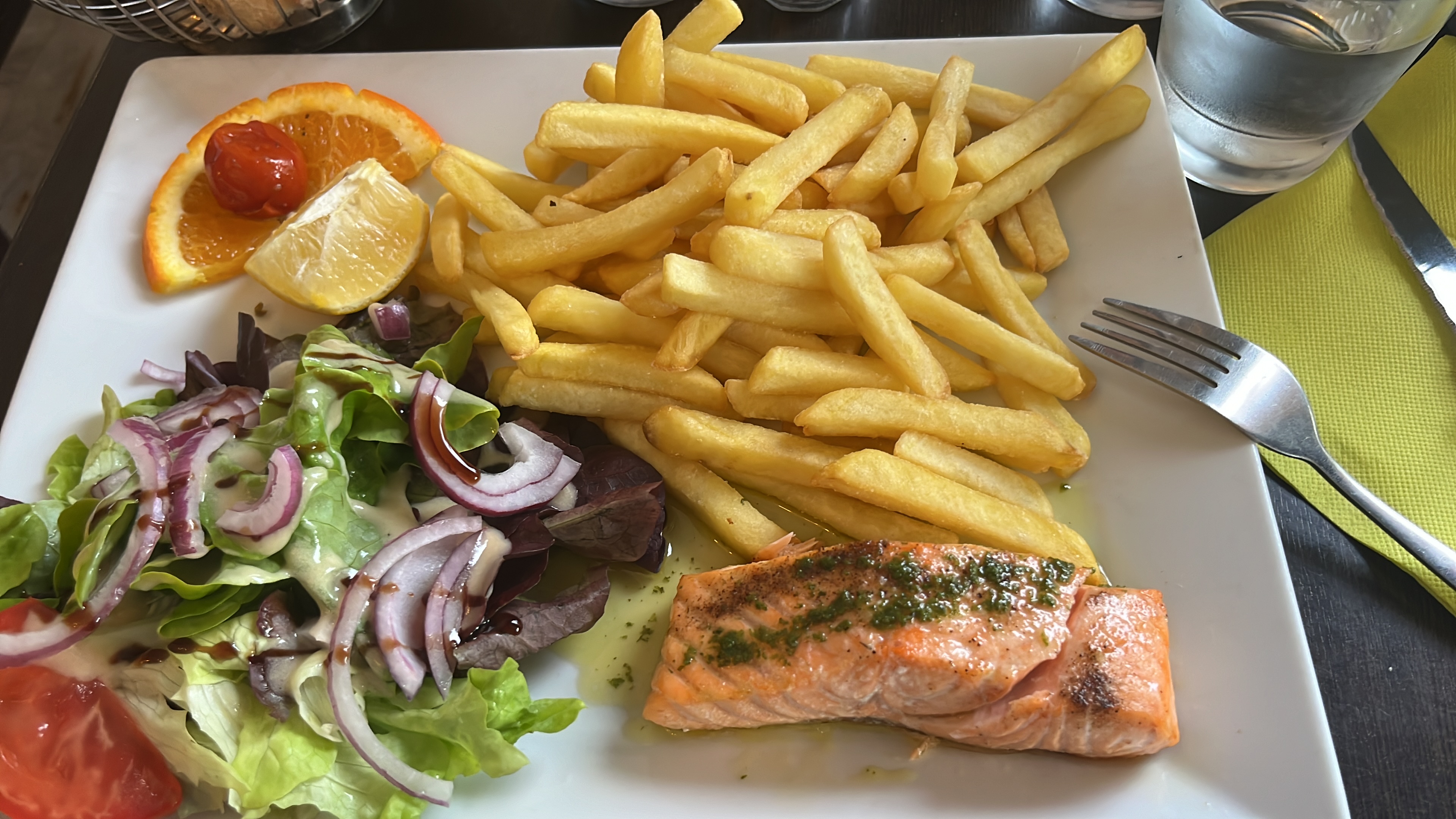 Le personnel très souriant et agréable. Le pavé de saumon juste excellent ! Je recommande très fortement cette adresse.